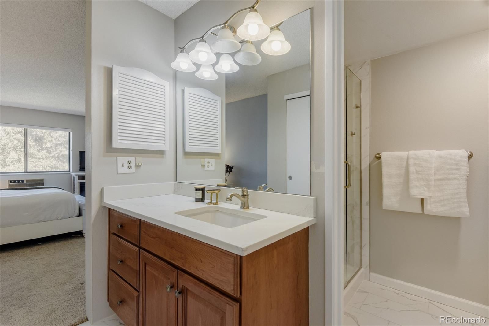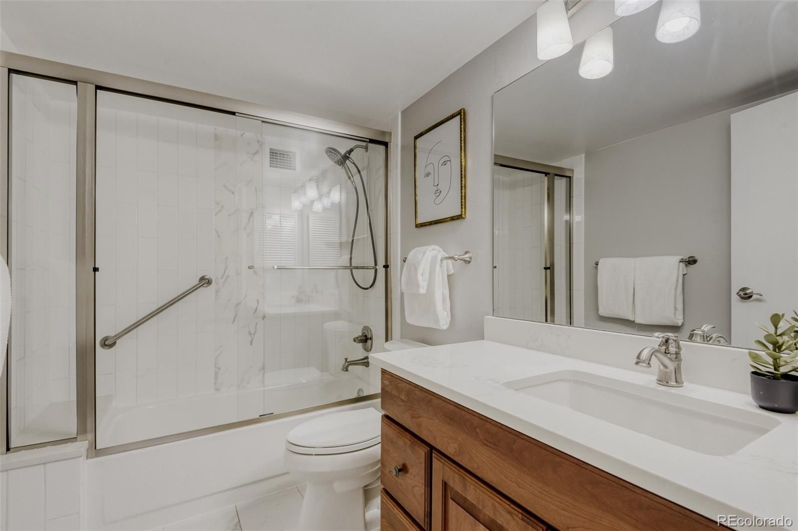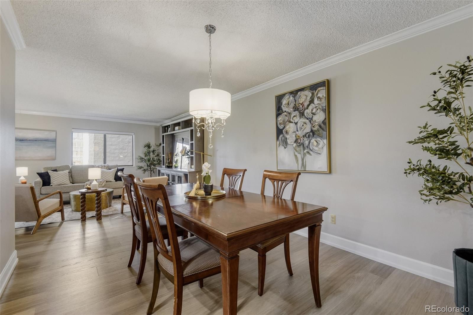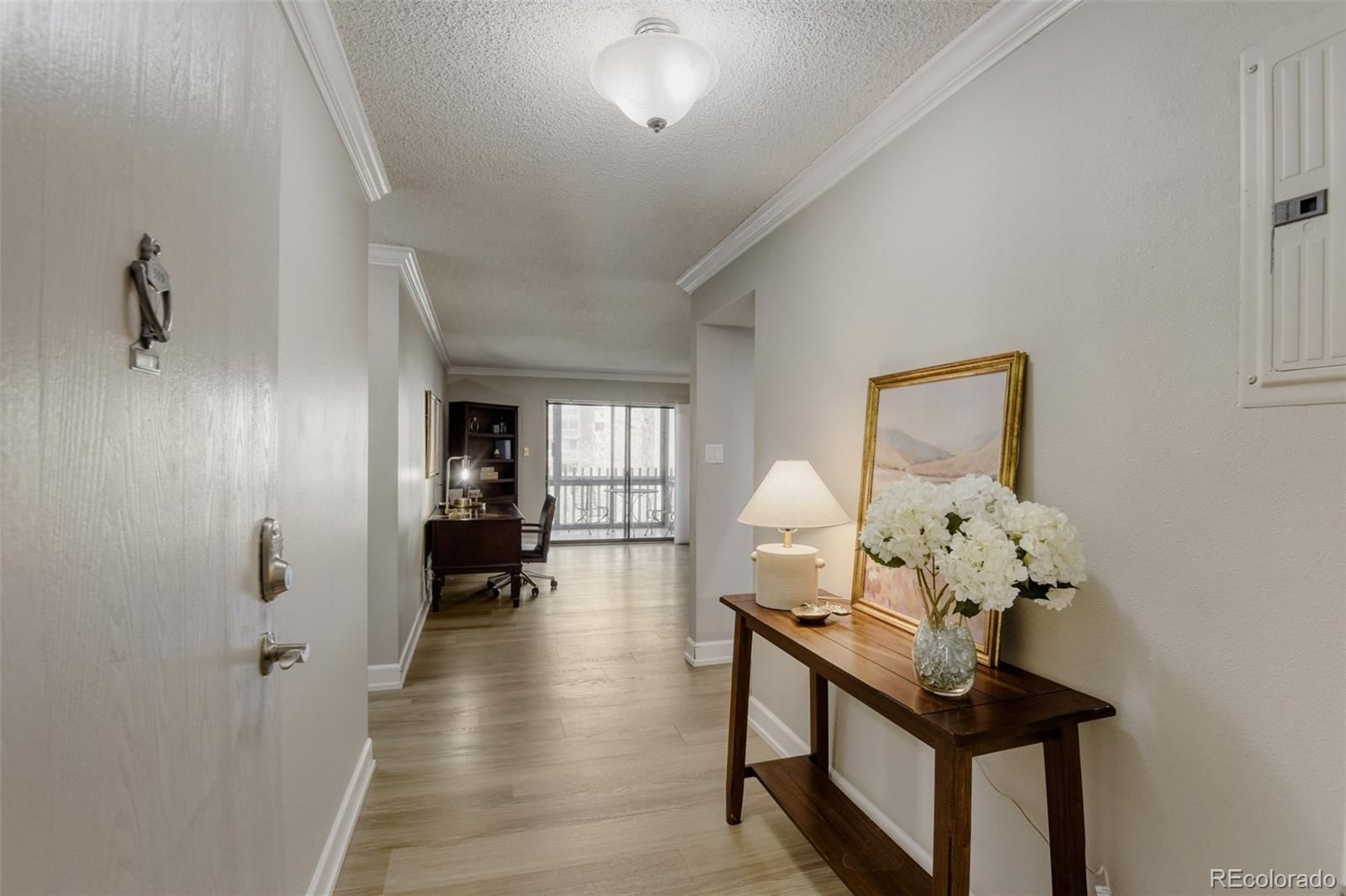 Welcome to elevated, low-maintenance living in the highly sought-after community of Heather Gardens. This beautifully remodeled 2-bedroom, 2-bathroom condo offers a perfect blend of style, comfort, and convenience—all set against serene golf course views. Step inside to discover a bright, open-concept floor plan designed for both everyday living and effortless entertaining. The kitchen has been thoughtfully opened up to maximize light and flow, featuring stylish cabinetry, stainless steel appliances, granite countertops, additional recessed lighting, and expanded built-in storage. Every detail has been elevated with crown molding, oversized baseboards, luxury vinyl plank flooring, and upgraded window coverings throughout. The spacious primary suite offers a peaceful retreat with generous closet space, while both the primary and guest bathrooms have been fully remodeled with high-end finishes that bring a touch of luxury to daily living. Just beyond the main living area, the enclosed lanai provides a perfect place to unwind and take in the beautifully maintained golf course views year-round. This unit also includes a reserved under-building parking space (#26) and a dedicated storage locker. Residents of Heather Gardens enjoy access to a recently updated, multi-million dollar clubhouse featuring an impressive array of amenities: indoor & outdoor pools, a full-service restaurant, fitness center, classes, billiards, woodworking shop, tennis and pickleball courts, and an executive 9-hole golf course. The community also has 24-hour security. Experience a vibrant, amenity-rich lifestyle in one of Colorado’s most beloved active adult communities—where value, community, and quality of life come together seamlessly. At closing, the buyer will be charged an Impound Fund Assessment equal to six times the current monthly HOA fee. Age and smoking restrictions apply. All HOA and CIC documents are available on the Heather Gardens website under the Resource tab.