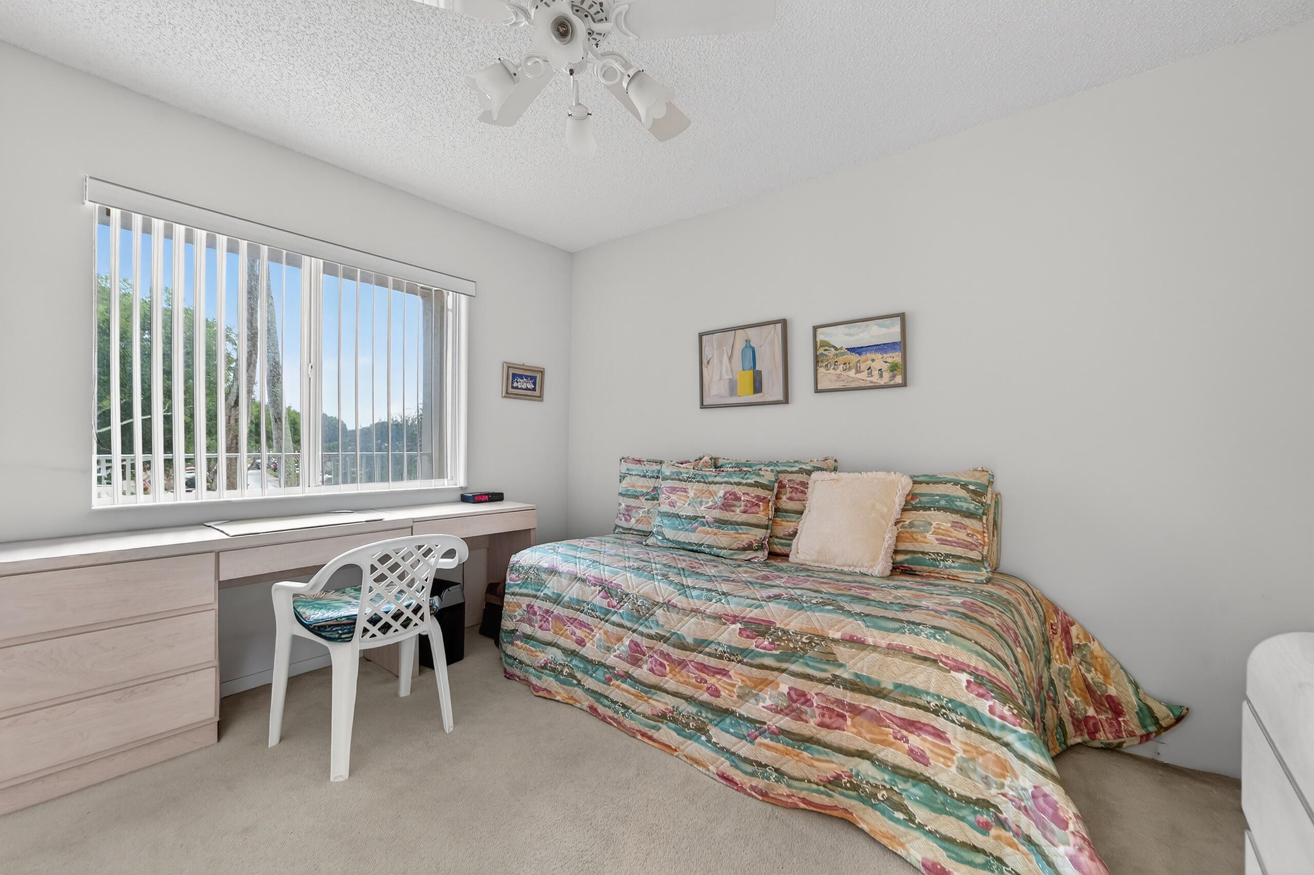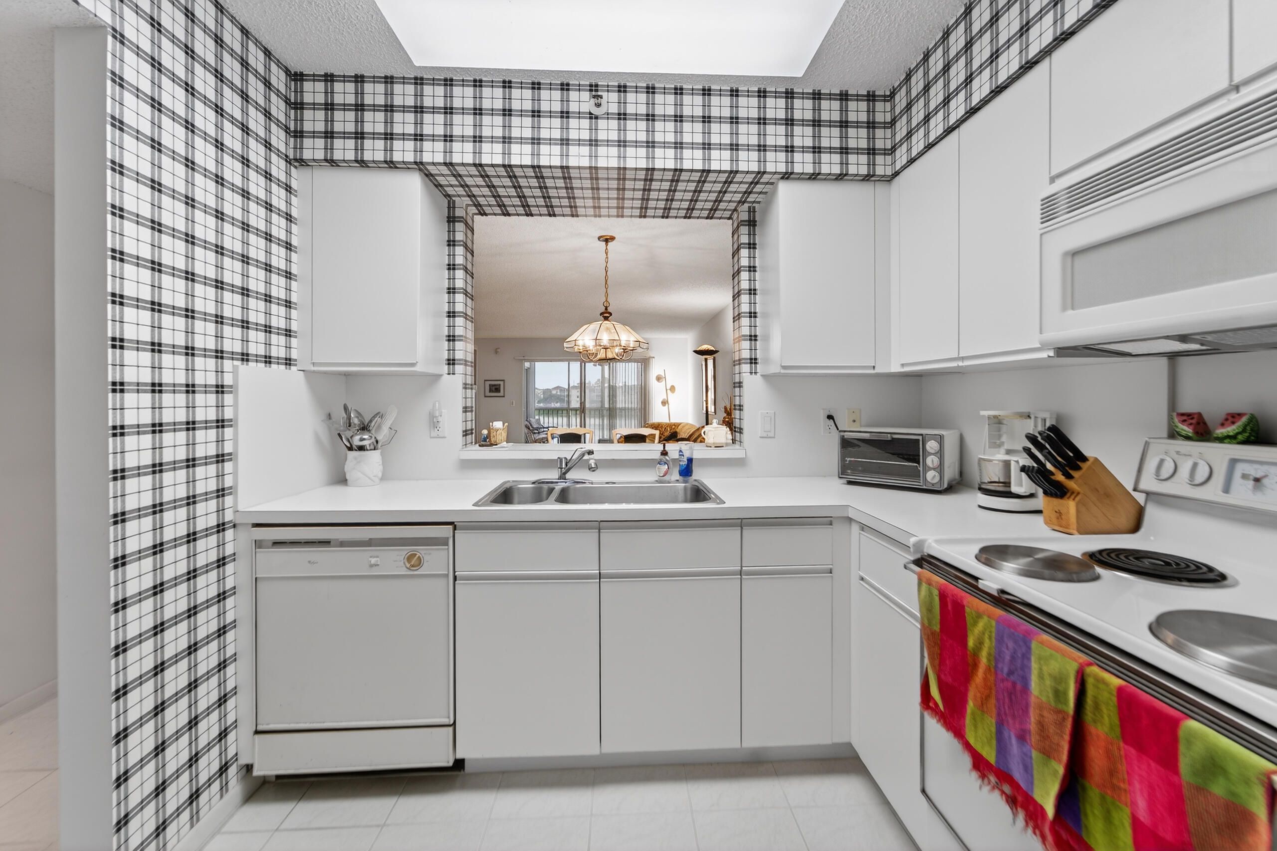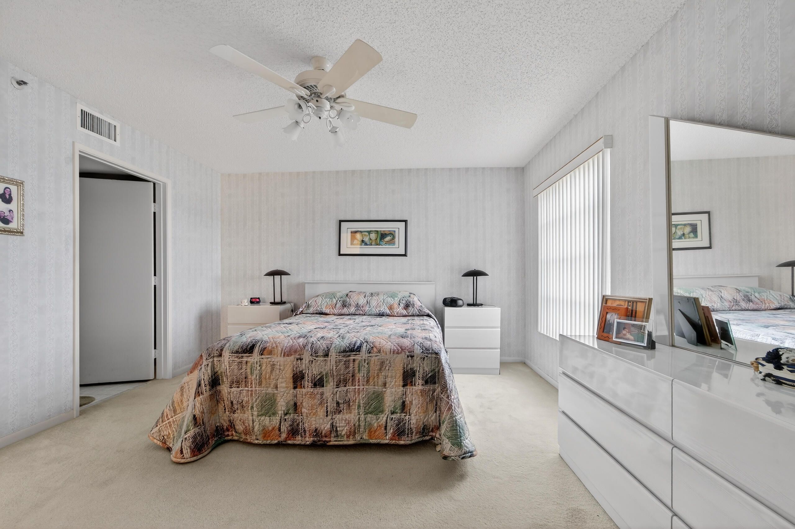 Beautifully maintained, light, bright 2/2 condo with den and panoramic view of the lake. Den is also perfect for guest room or office. All carpet inside means comfortable walking on all floors. Oversized walk-in closet and ensuite bath with walk-in shower in primary bedroom. Eat-in kitchen. Full sized washer and dryer inside. Huntington Pointe is a an active adult community that features a 53,000 square foot clubhouse. The 600 seat theater offers live entertainment and movies year 'round. Plus a fitness center, card rooms, billiard room, aerobics room, bocce courts, pickleball courts, Har-Tru tennis courts (coming in 2026), 4 outdoor pools, heated indoor pool, numerous clubs and organized activities, and a cafe that's open for breakfast and lunch every day