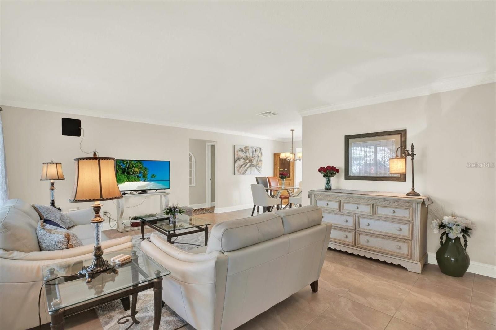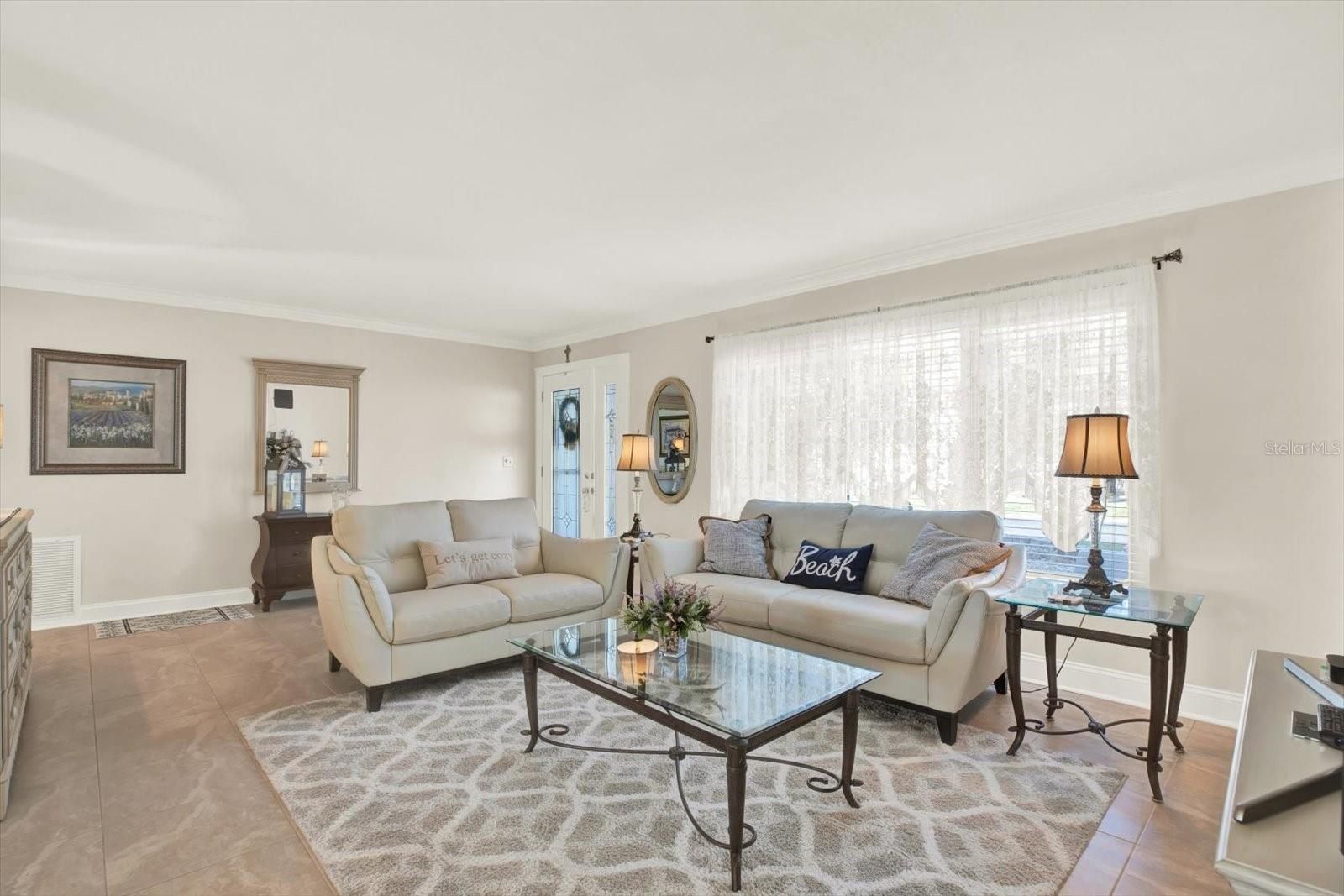BEAUTIFUL 2BR/2BA BLOCK HOME IN SEMINOLE’S HIGHLY DESIRABLE TAMARAC BY THE GULF 55+ COMMUNITY! This well-maintained Skipper Model is truly MOVE-IN READY and shines with pride of ownership. Easy-care ceramic tile flows through the main living areas and is complemented by elegant crown molding. The light and bright open floor plan offers comfortable living, dining, and a large family room—perfect for everyday living or entertaining. The remodeled kitchen is a standout in this home, featuring abundant wood cabinetry with pull-out drawers, generous counter space, and stainless-steel appliances. Both bedrooms are spacious, with the primary suite offering a WALK-IN CLOSET and private bath. Step outside to enjoy the patio with a retractable awning—ideal for relaxing or entertaining. Notable upgrades include HURRICANE IMPACT WINDOWS WITH UV FILM at the rear of the home, UPDATED BATHROOMS, and a 2019 HVAC system. Tamarac by the Gulf is a pet-friendly, age-restricted community just minutes from stunning Gulf beaches, shopping, dining, and in a NON-FLOOD ZONE. Residents enjoy fantastic amenities including a heated pool, clubhouse, library, shuffleboard, and an active calendar of community events. Perfect for full-time or seasonal living—schedule your private showing today!