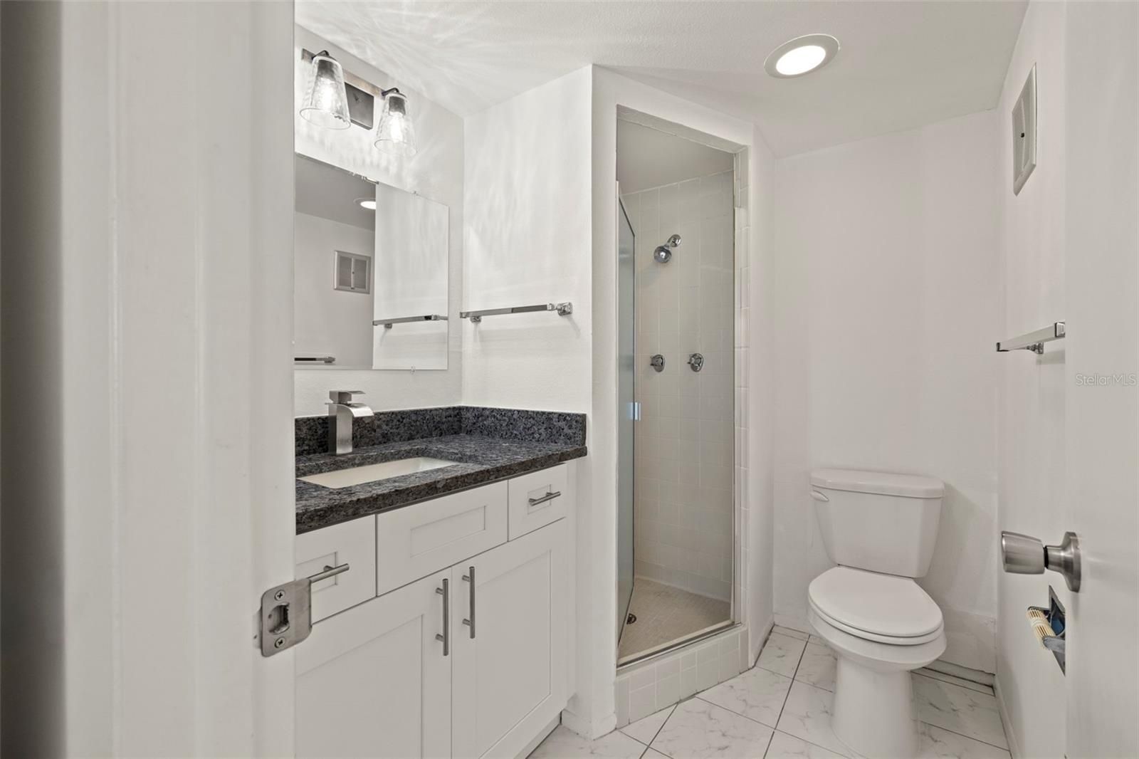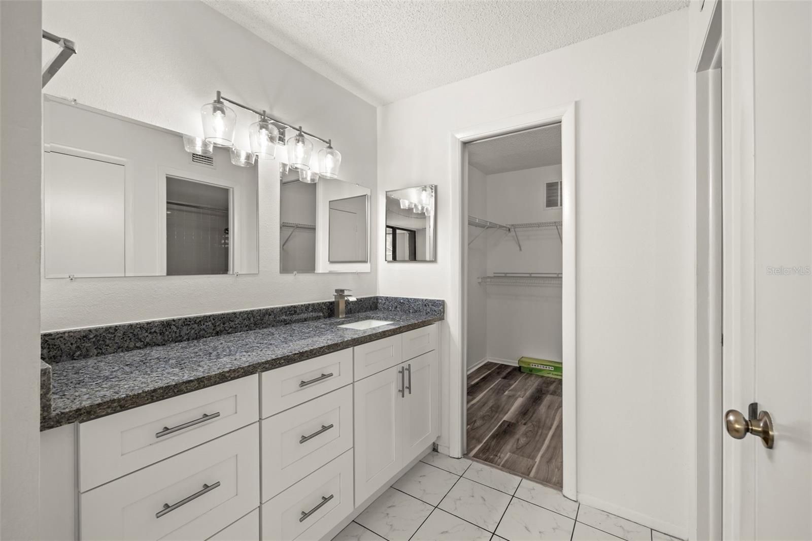 - Ceiling Fan(s), Living/Dining Room, Main Level Primary, Split Bedrooms, Stone Counters, Walk-In Closet(s), Window Treatments