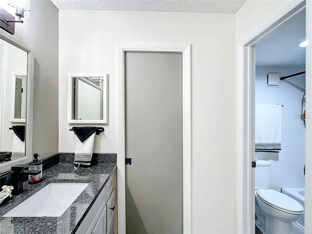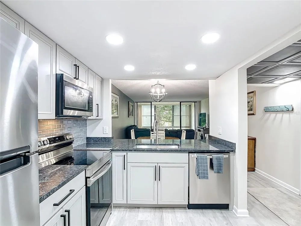 - Living/Dining Room, Stone Counters, Thermostat, Walk-In Closet(s)