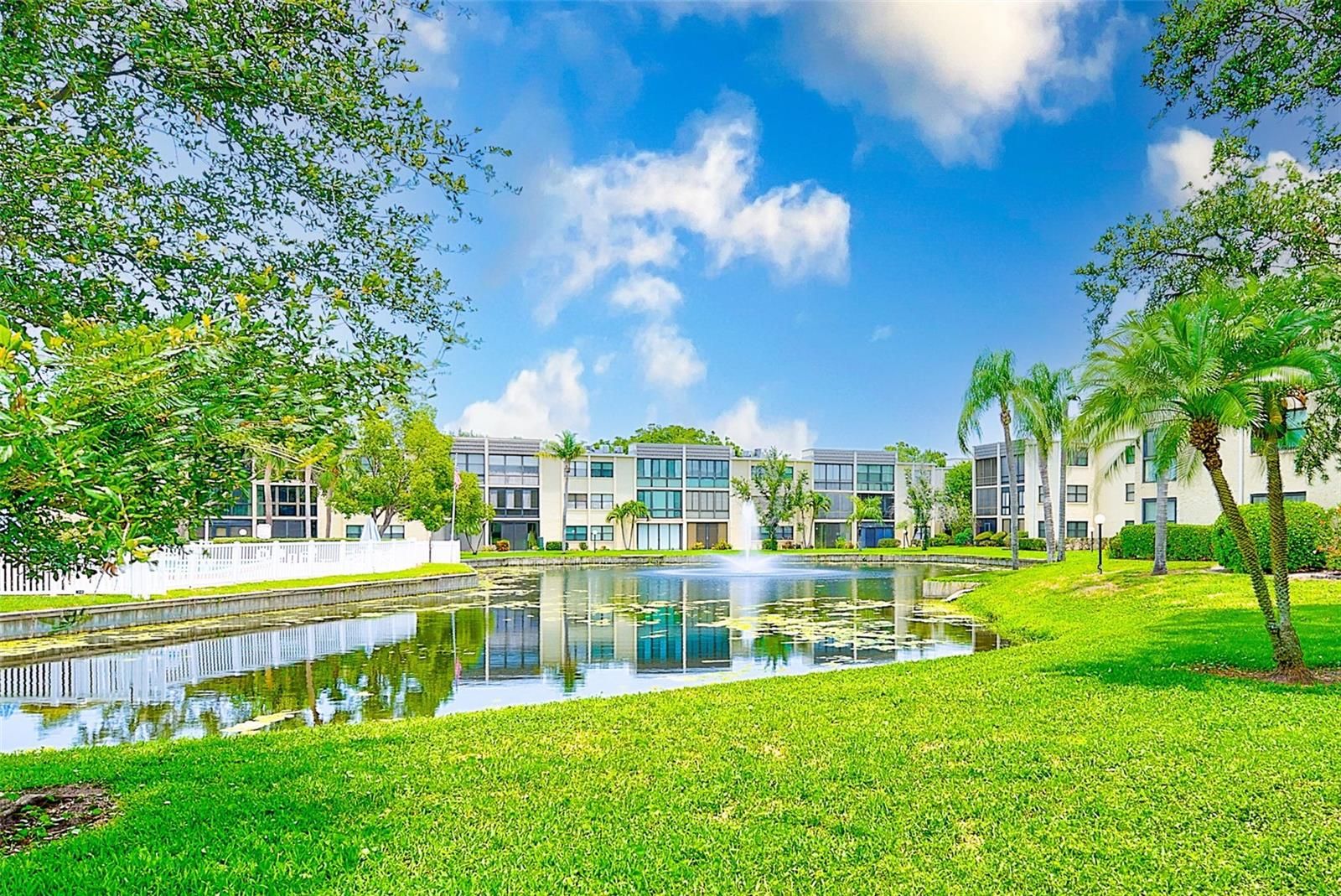 AMAZING LOCATION in the very popular and sought after 55+ community of Lakeview of Largo. This is a 2 bedroom/2 full bath FURNISHED CONDO, located on the FIRST FLOOR and it has great, serene water and fountain views. Kitchen and baths have been updated. Newer flooring throughout. The new carpet in the bedrooms was installed less than one year ago. Both bedrooms have been freshly painted in May of 2025. Resort style amenities include 3 pools of which one is heated, clubhouse, shuffleboard, grilling areas, and scenic walking paths. Primary bedroom has a large walk-in closet, an en suite bath which includes a separate vanity and sink area and a separate area for the bath which has a tub/shower combo. There is a wall of glass sliding doors that leads to your back, covered and enclosed patio. Relax and enjoy the beauty as you drink your morning coffee. The maintenance fees cover many items: Cable TV, Community Pool, Insurance, Internet, Maintenance Exterior, Maintenance Grounds, Manager, Pool Maintenance, Recreational Facilities, Sewer, Trash, and Water This location is ideal and it is only about one mile from the beaches. Not located in a flood zone. It is high and dry. Just a short drive to two major airports. Close distance to grocery stores, restaurants, banks, bus stops, and some even ride their bikes to the beach! Come and enjoy this active community!
