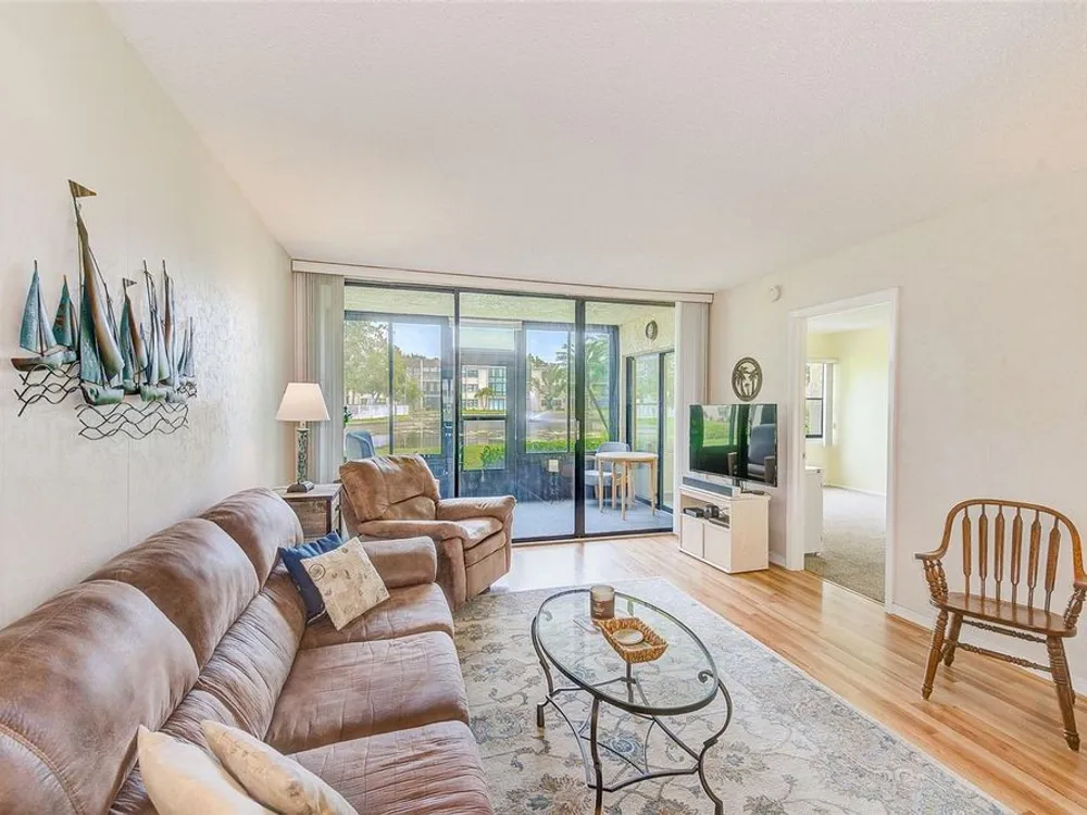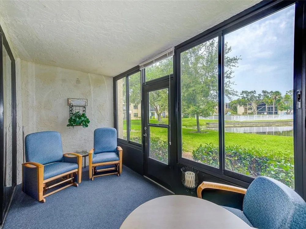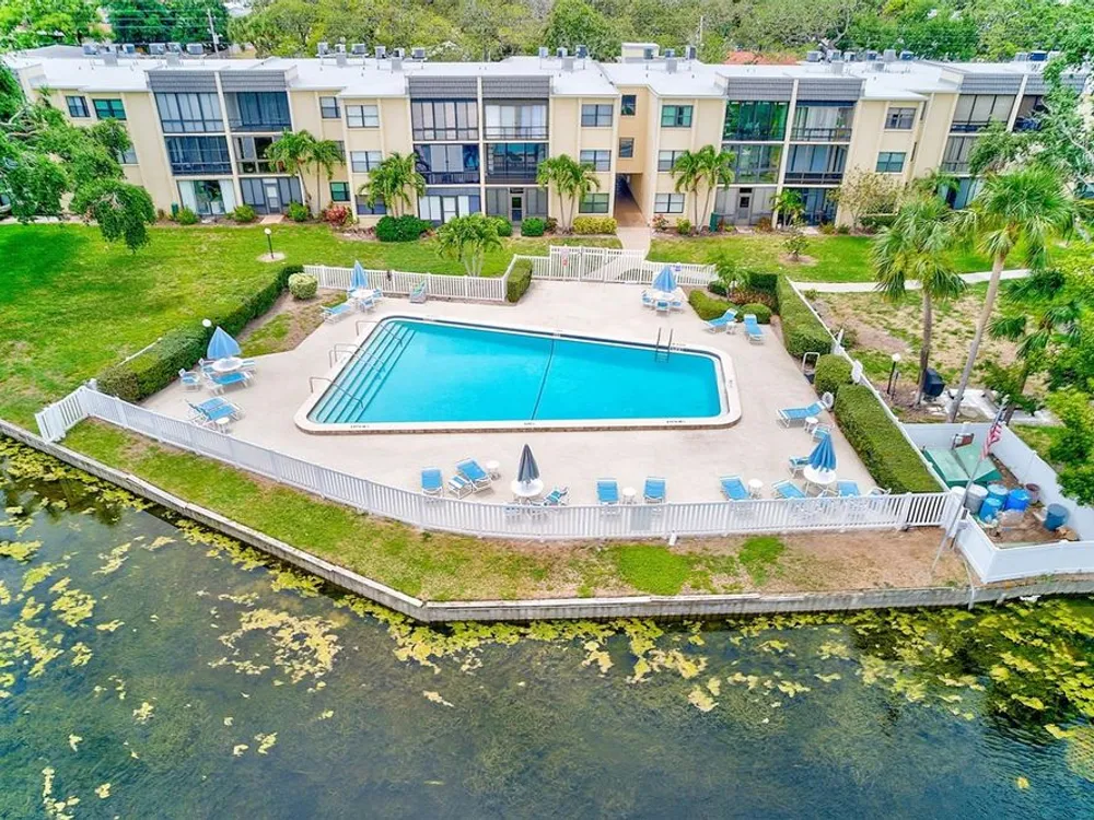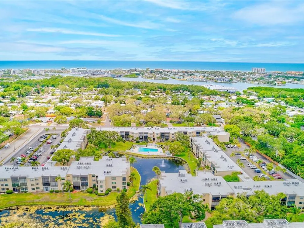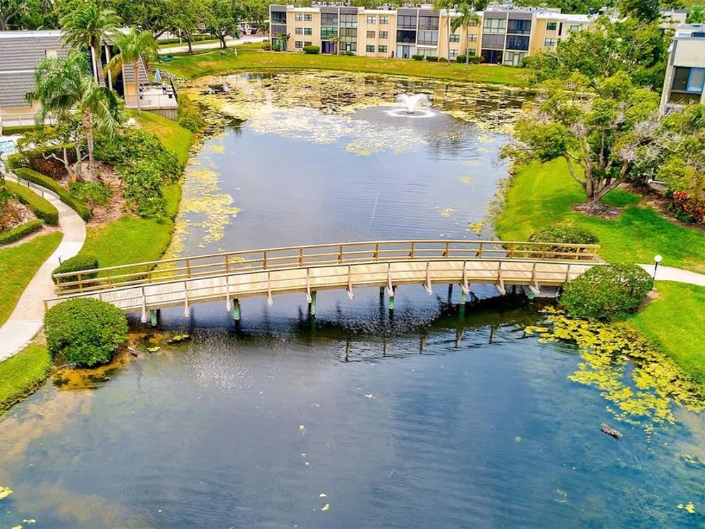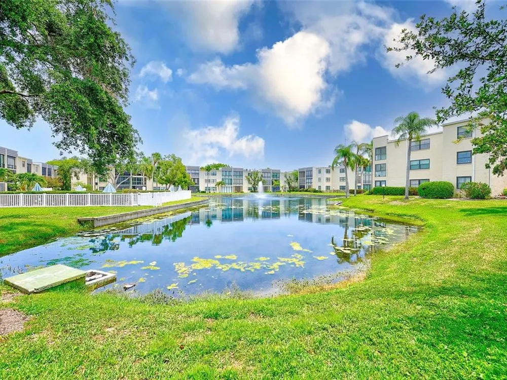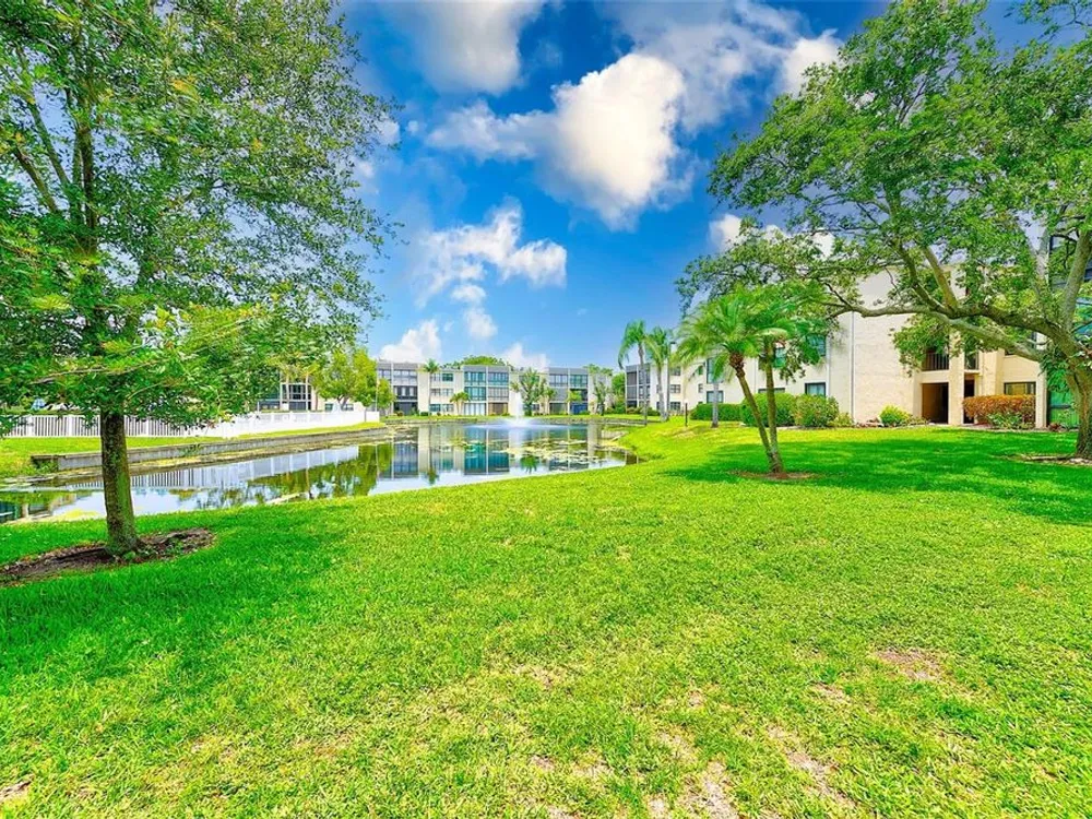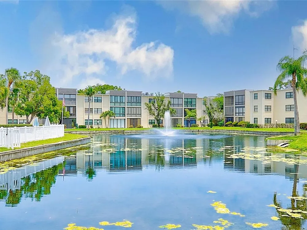 AMAZING LOCATION in the very popular and sought after 55+ community of Lakeview of Largo. This is a 2 bedroom/2 full bath FURNISHED CONDO, located on the FIRST FLOOR and it has great, serene water and fountain views. Kitchen and baths have been updated. Newer flooring throughout. The new carpet in the bedrooms was installed less than one year ago. Both bedrooms have been freshly painted in May of 2025. Resort style amenities include 3 pools of which one is heated, clubhouse, shuffleboard, grilling areas, and scenic walking paths. Primary bedroom has a large walk-in closet, an en suite bath which includes a separate vanity and sink area and a separate area for the bath which has a tub/shower combo. There is a wall of glass sliding doors that leads to your back, covered and enclosed patio. Relax and enjoy the beauty as you drink your morning coffee. This location is ideal and it is only about one mile from the beaches. Not located in a flood zone. It is high and dry. Just a short drive to two major airports. Close distance to grocery stores, restaurants, banks, bus stops, and some even ride their bikes to the beach! Come and enjoy this active community!