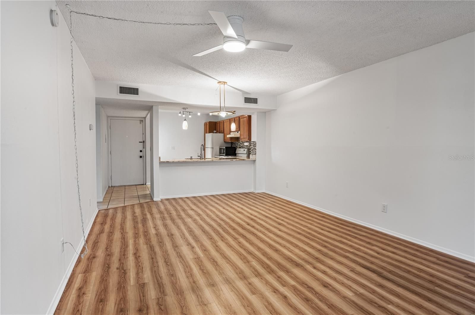 - Ceiling Fan(s), Eat-in Kitchen, Living/Dining Room, Open Floorplan, Main Level Primary, Stone Counters, Walk-In Closet(s), Window Treatments
