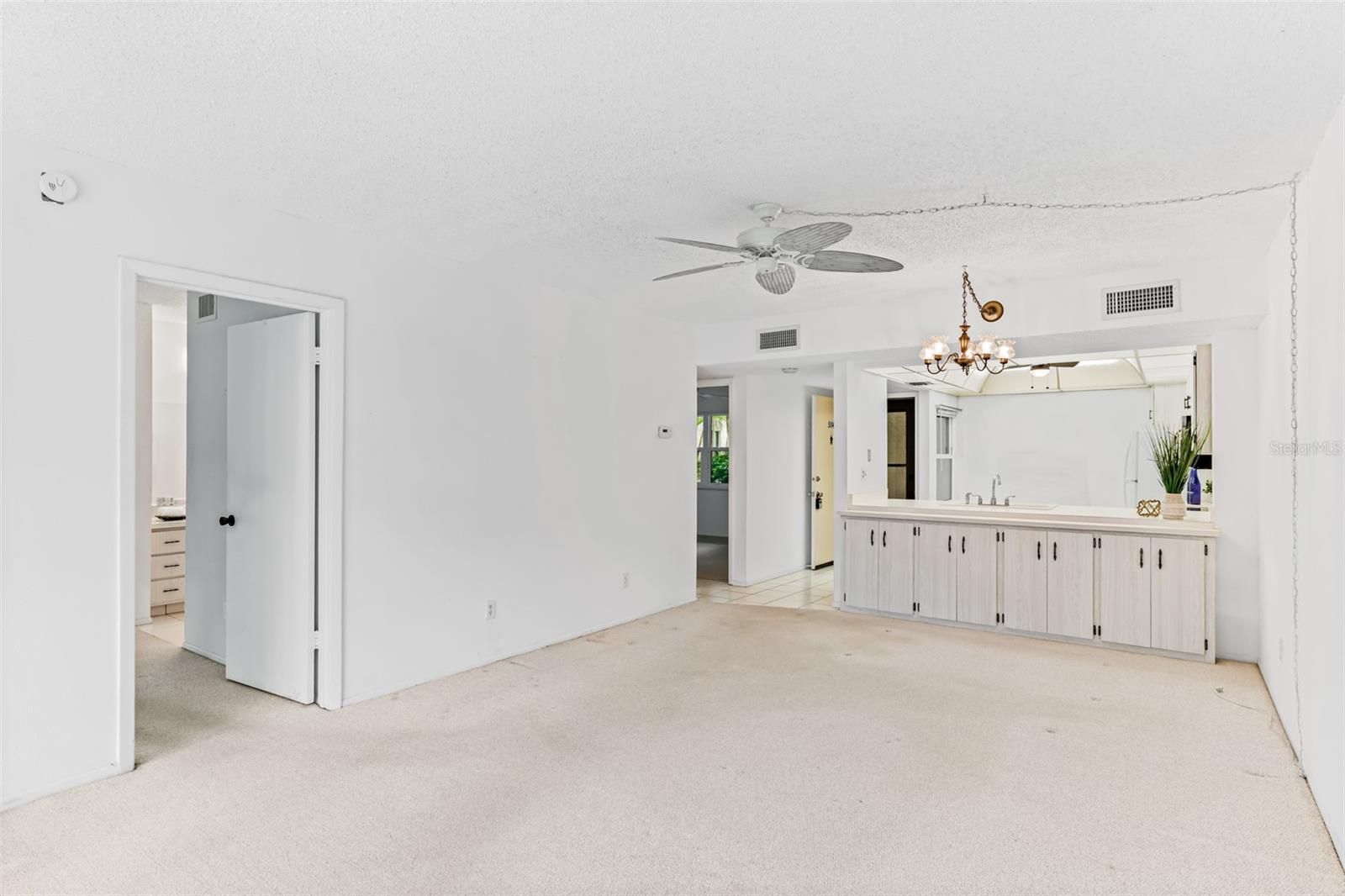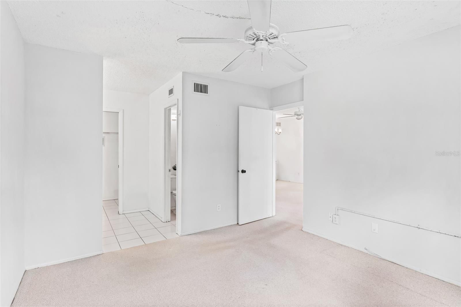- Ceiling Fan(s), Living/Dining Room, Main Level Primary, Split Bedrooms, Thermostat, Walk-In Closet(s)
