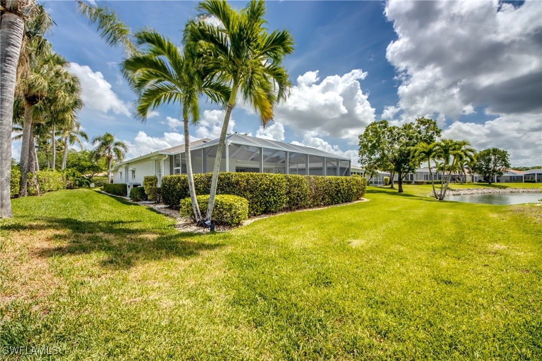 Come and check out the only available pool home located in Heritage Cove, an active 55+ gated community with a small town feel. This pool home is situated on a private corner lot with lake views out back and across the street. Nothing left to do in this beautifully maintained 3 bedroom and 2 bath home. So many updates to list but include: Freshly painted interior and exterior of home, Tile and grout restore and sealed, updated fixtures(2025) The Pool cage(2023), pool resurface(2023), pool equipment (pump/heater)(2020) and lanai deck painting(2025) have been completed. The A/C was replaced in 2022, roof in 2020. Tiled main living areas and luxury vinyl tile (LVT) in all bedrooms. Crown molding and Plantation shutters throughout. Electric screen on the two-car garage. Newer stainless appliances. Electric hurricane shutters on lanai and front door. Low HOA fees and No CDD. HOA fees include Cable, Internet, and amenities. This home received no flood damage from hurricanes. Ideally situated just off McGregor close to fine dining, shopping and a short drive to the beaches of Sanibel and Fort Myers beach.