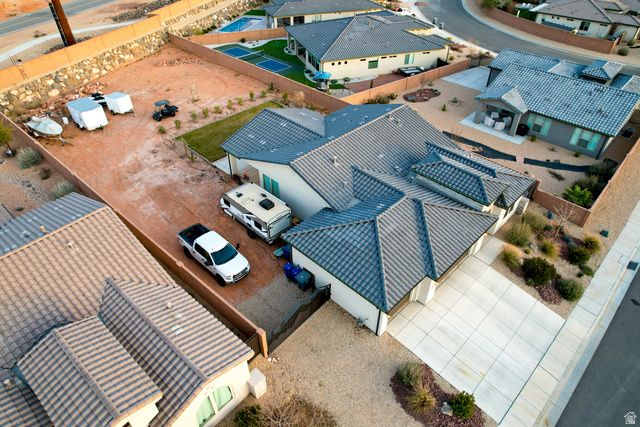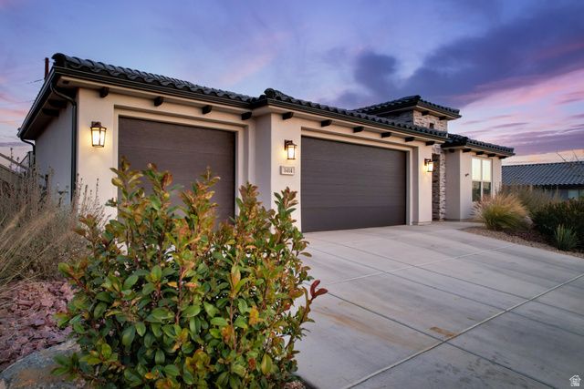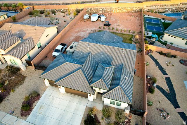 Located in the Estates section of Brio, this 2022-built Onyx floor plan sits on a rare .38-acre lot with no neighbors behind, offering privacy and space that is hard to find in the community. The single-level home features 3 bedrooms, 2.5 baths, and a 3-car garage, with an open layout designed for comfortable everyday living. Interior highlights include a gourmet kitchen with granite countertops, double wall ovens, upgraded cabinetry with soft-close drawers, premium laminate flooring, plantation shutters, and tiled shower surrounds with frameless glass. The backyard is fully enclosed with block wall fencing and includes an extended concrete patio and grass area, plus a large unfinished section that offers excellent potential for RV parking, storage, additional landscaping, or future improvements. Located within Brio, residents enjoy resort-style amenities including indoor and outdoor pools, fitness center, pickleball courts, tennis courts, clubhouse, and event space-all surrounded by Southern Utah's red rock scenery and outdoor lifestyle.