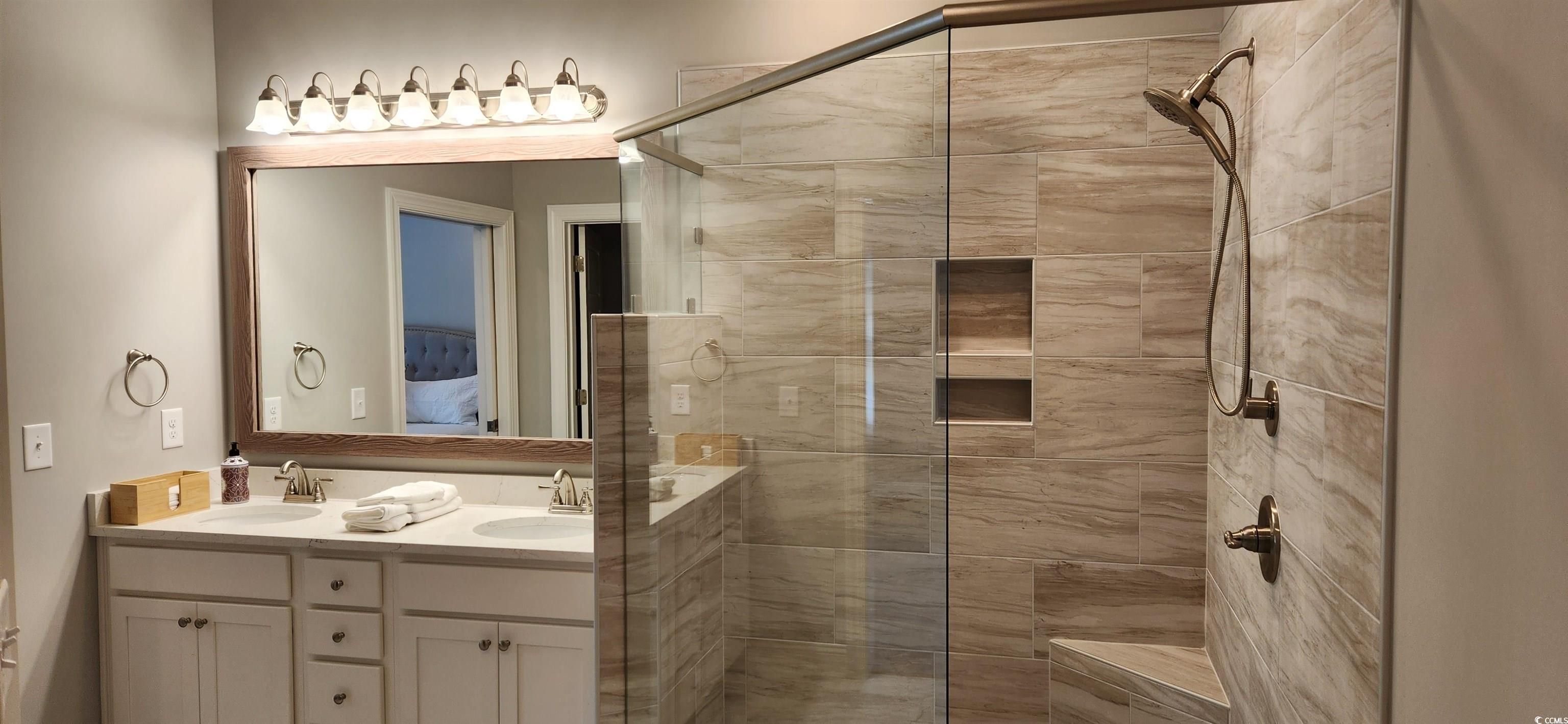 - Dual Sinks, LinenCloset, Main Level Primary, Split Bedrooms, Separate Shower, Vanity, Walk-In Closet(s), Breakfast Bar, Bedroom on Main Level, Entrance Foyer, Stainless Steel Appliances, Solid Surface Counters