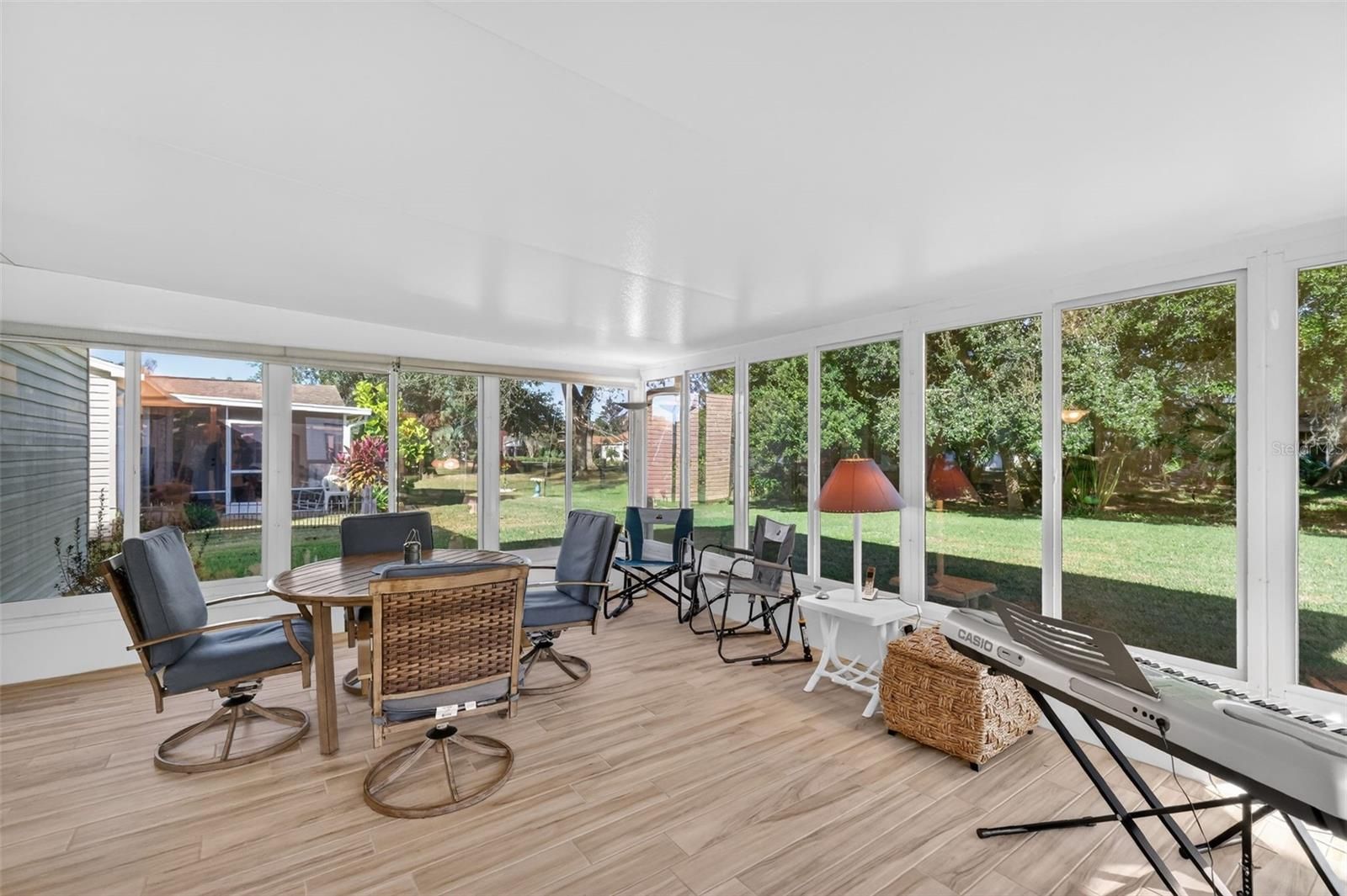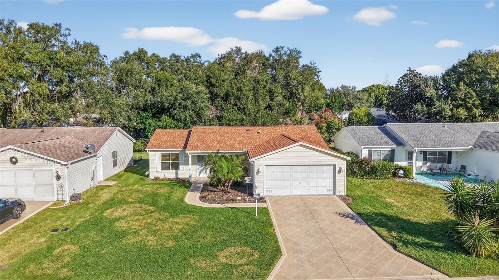 OVERLOOK PRIVATE, WOODED, VIEWS in this FANTASTIC, TURNKEY 2/2 Galveston (Amarillo) with EXPANSIVE GLASS-ENCLOSED LANAI with MINI-SPLIT - CONVENIENTLY LOCATED near BOTH Spanish Springs Town Square and Lake Sumter Landing in the highly sought after Village of Rio Ponderosa! BOND PAID! NEW ROOF (2024) HVAC (2016) DECORATIVE PAINTED drive and walkways, tropical landscape, and a quaint FRONT PORCH welcome you in to this wonderful home! Step inside to discover the SPACIOUS OPEN CONCEPT FLOOR PLAN of the living, dining and kitchen areas. GORGEOUS, LIGHT WOOD, LAMINATE floors grace the living and dining areas while DUAL living room windows boasting PLANTATION SHUTTERS add a touch of ELEGANCE. The AMAZING kitchen showcases wood-grain cabinetry, STAINLESS appliances (2019), SOLAR TUBE, and a generously sized ISLAND with COUNTER-HEIGHT seating and ADDITIONAL cabinets for ABUNDANT STORAGE. From the dining room, step through sliding glass doors into the EXPANSIVE, GLASS-ENCLOSED LANAI with MINI-SPLIT. This INCREDIBLE room adds an additional 300SF of living space and features LIGHT-WOOD PLANK TILE floors, a plethora of windows for an ABUNDANCE of natural light, side PRIVACY shades, and GORGEOUS, PRIVATE, WOODED VIEWS! There’s also an adjacent patio for grilling or enjoying the beautiful Florida weather! Back inside, the primary bedroom offers LAMINATE floors and a LARGE WALK-IN closet. It’s EN-SUITE bathroom boasts RICH, WOOD TONED, PLANK TILE flooring, wood-grain cabinetry with NEUTRAL countertop, MAKE-UP vanity, WALK-IN shower, and a LINEN closet. Designed for privacy, the SPLIT FLOOR PLAN creates a SEPARATE GUEST WING with an additional bedroom and bath across the home. Bedroom two features DOUBLE windows with PLANTATION SHUTTERS and a WALK-IN closet. The second bathroom is thoughtfully appointed with a wood-grain vanity, DECORATIVE TILE flooring, tub and shower combination, and a hallway LINEN closet. A centrally located INTERIOR LAUNDRY ROOM with shelving and NEW washer & dryer (2023) leads you to the two-car garage offering EPOXIED floors, attic access with stairs, and plenty of room for parking and storage! DON’T MISS YOUR OPPORTUNITY TO MAKE THIS INCREDIBLE, TURNKEY HOME YOUR OWN! The Village of Rio Ranchero is IDEALLY LOCATED near three large Regional Recreation Centers: Laurel Manor, Savannah Center, and La Hacienda; several Country Clubs and Championship Golf Courses: Tierra Del Sol, Hacienda Hills, Orange Blossom Hills; and multiple pools, golf, and pickle ball! ONLY MINUTES to County Road 466 with with an abundance of shopping, restaurants, banks, medical and more! PLEASE WATCH OUR WALKTHROUGH VIDEO of this FANTASTIC TURNKEY HOME in an AMAZING LOCATION and CALL TODAY to schedule your Private Showing or Virtual Tour!