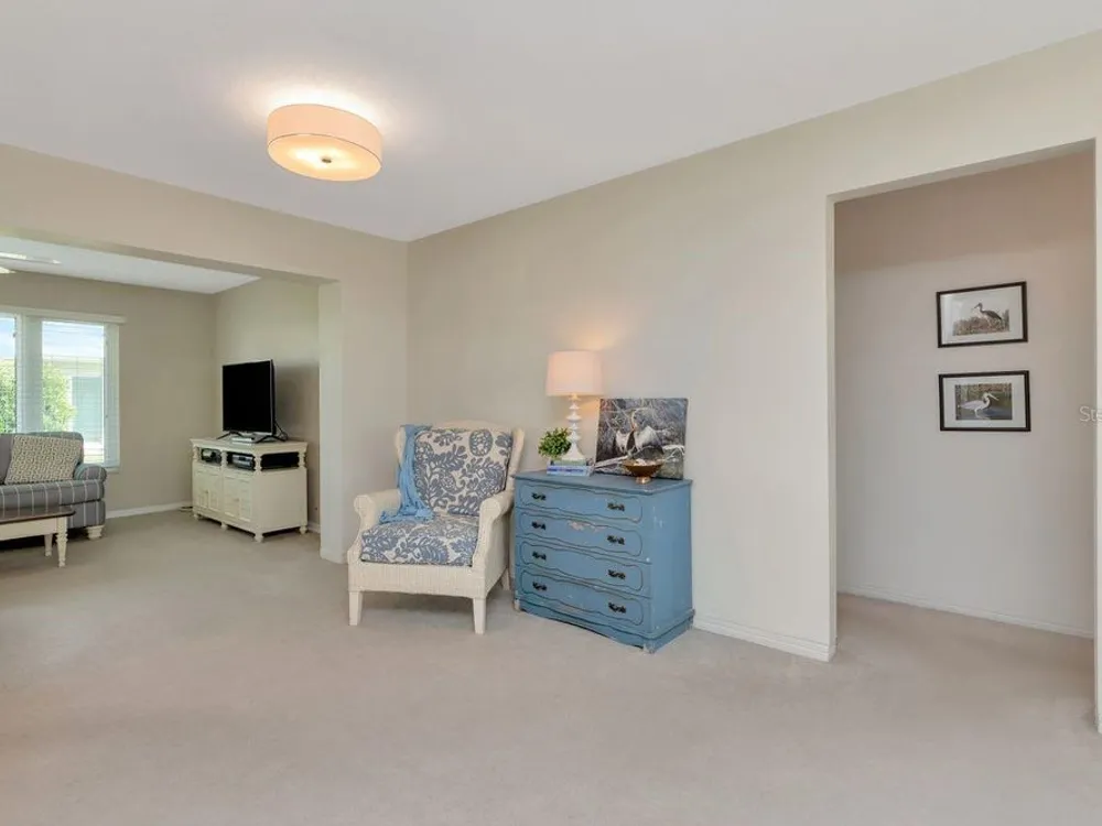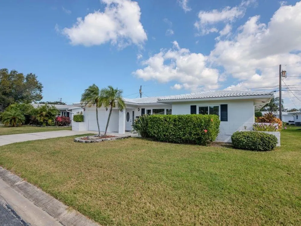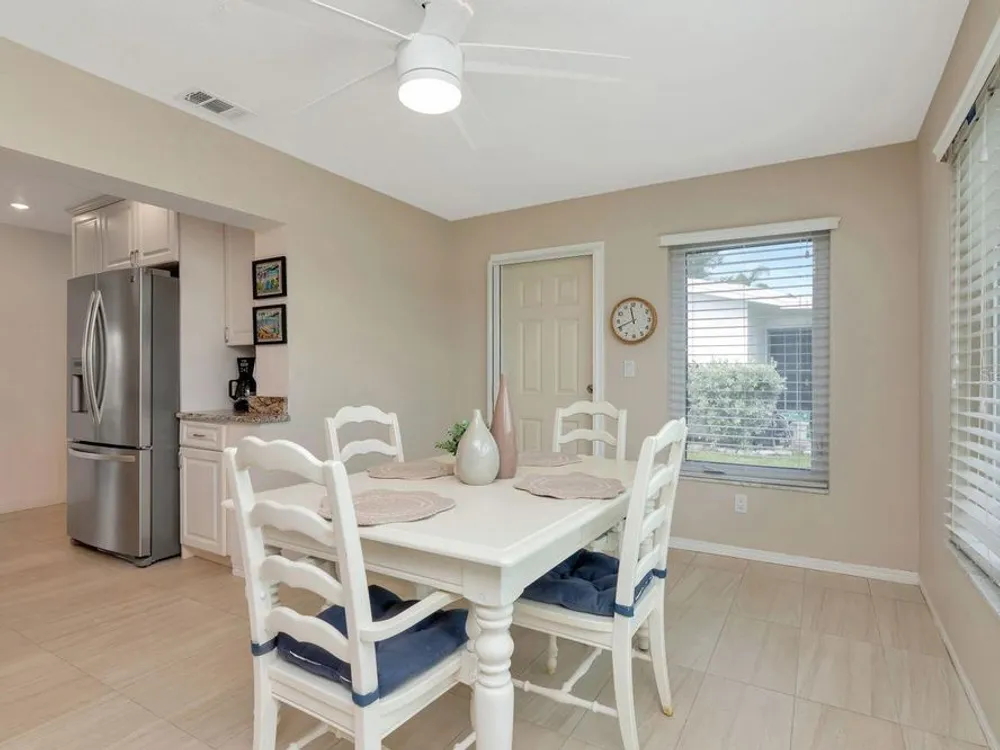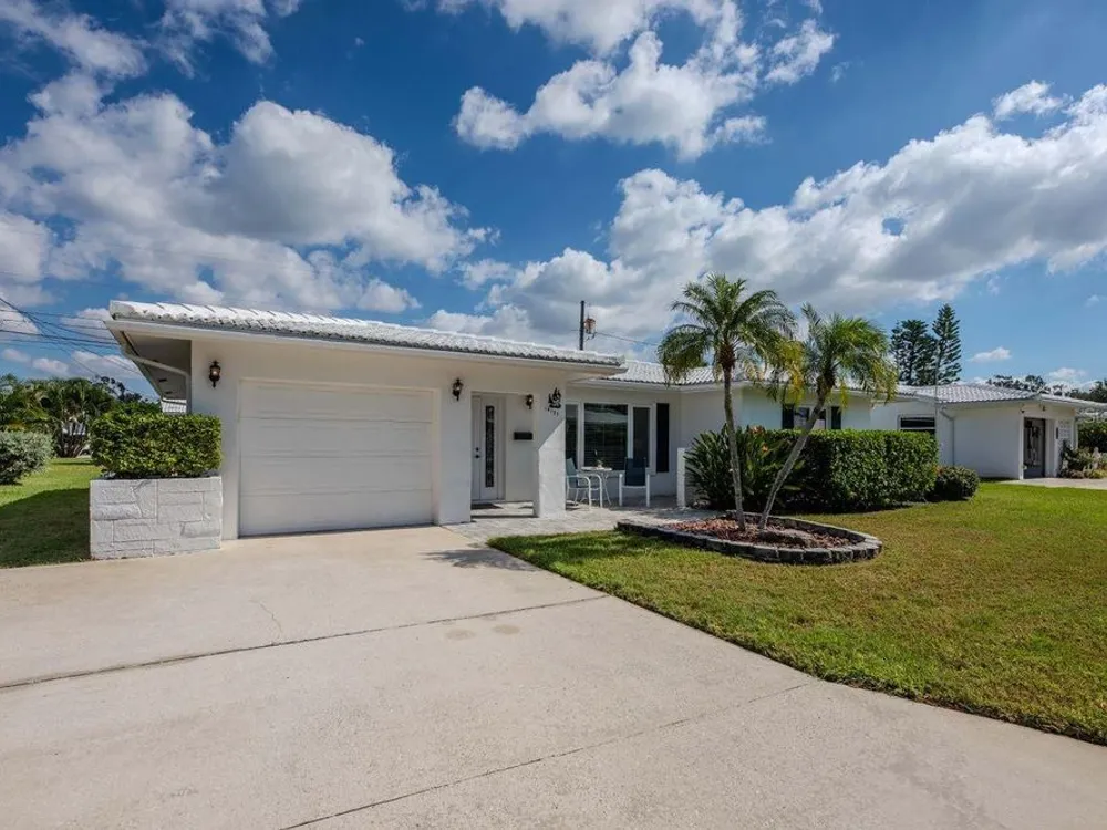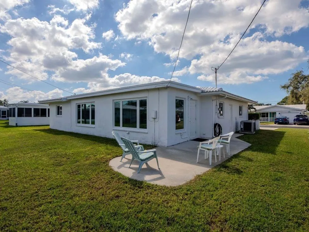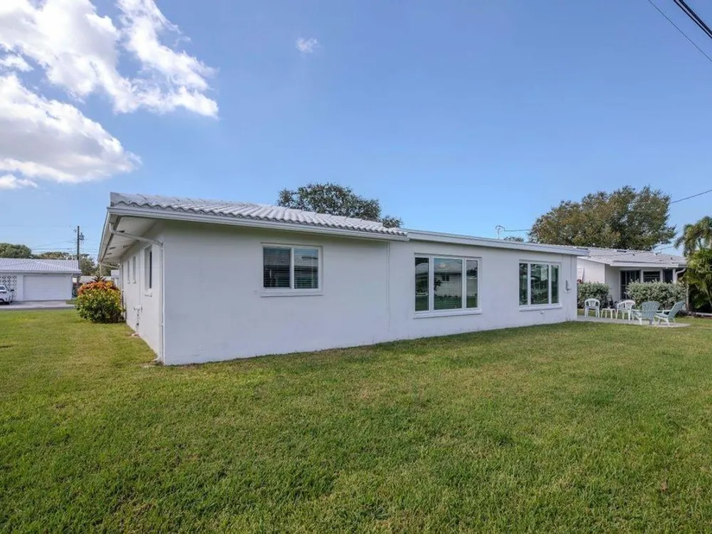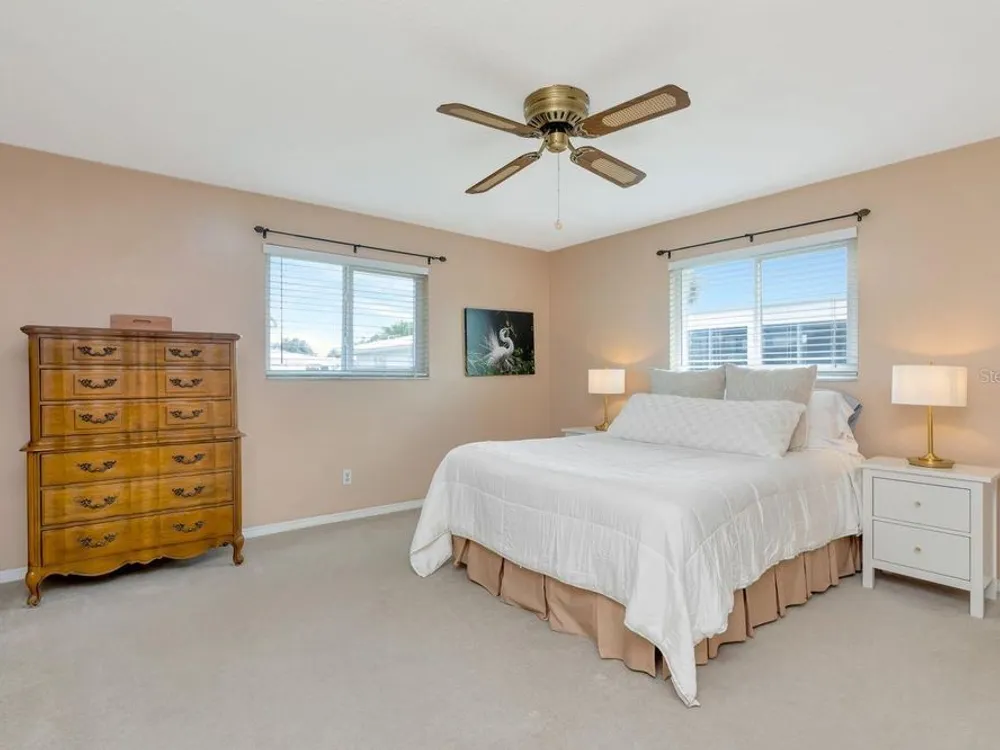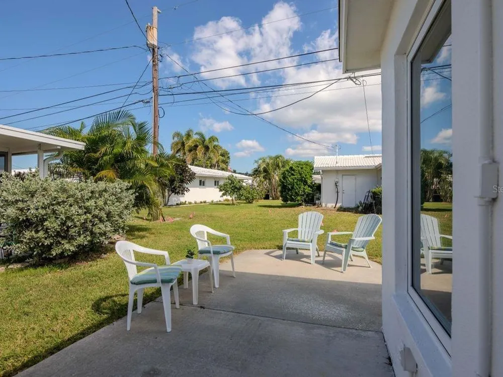 Located in the desirable 55+ community of Tamarac on the Gulf, this spacious two-bedroom, two-bath “Skipper” model home is filled with natural light and offers multiple gathering areas inside and out. The large living room features a beautiful picture window overlooking the front porch, while the adjoining dining area—perfect for use as a study—blends sunlight from both the front living room and the rear sunroom for a warm, inviting feel. The updated kitchen showcases newer cabinetry with soft-close doors and pull-out drawers, slab granite countertops, stainless steel appliances, tile flooring, recessed lighting, and an opening to the sunroom with additional dining and family space. The oversized primary suite includes a walk-in closet and an upgraded bath with a shower bench. The vintage-style hallway bath provides convenient access to the living areas and guest bedroom. Additional upgrades include IMPACT vinyl windows and doors, a widened driveway for extra parking, and a paver front porch. Community amenities feature a pool, shuffleboard courts, and a clubhouse with scheduled activities. The low $240 monthly HOA fee covers lawn mowing, pool maintenance, exterior painting every nine years, roof pressure cleaning, private road upkeep, clubhouse maintenance, trash, sewer, and water. Conveniently located near shopping, restaurants, and the beach—this is Florida living at its best!