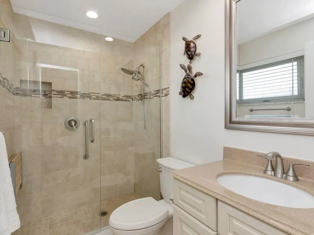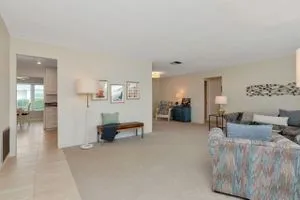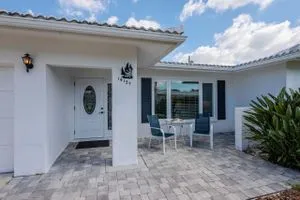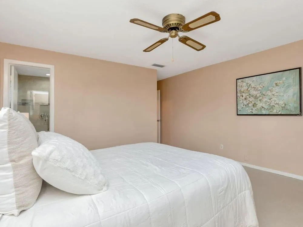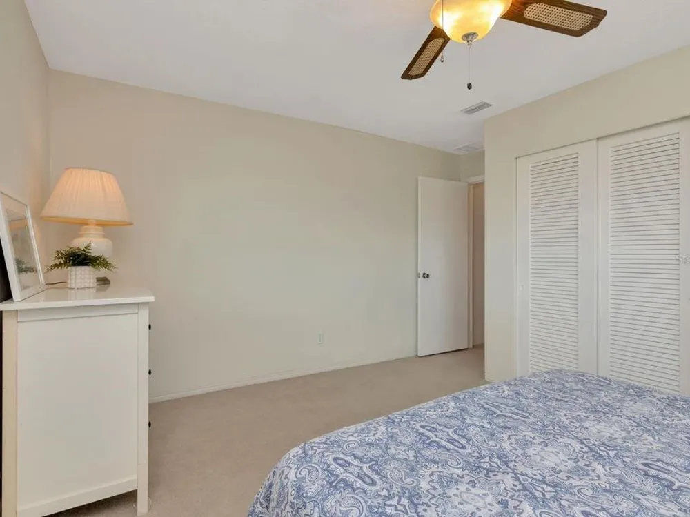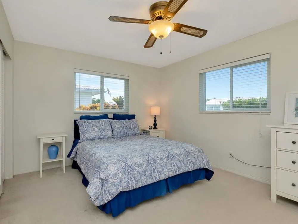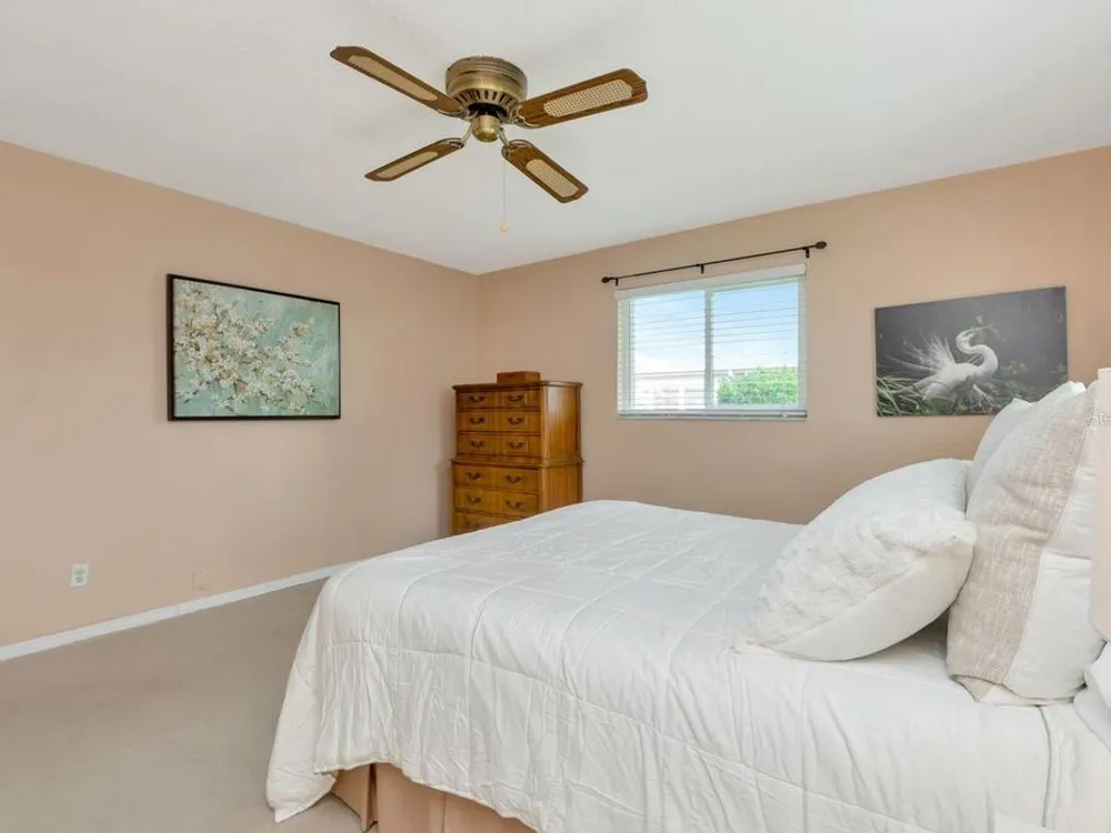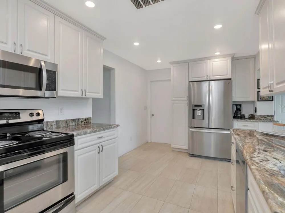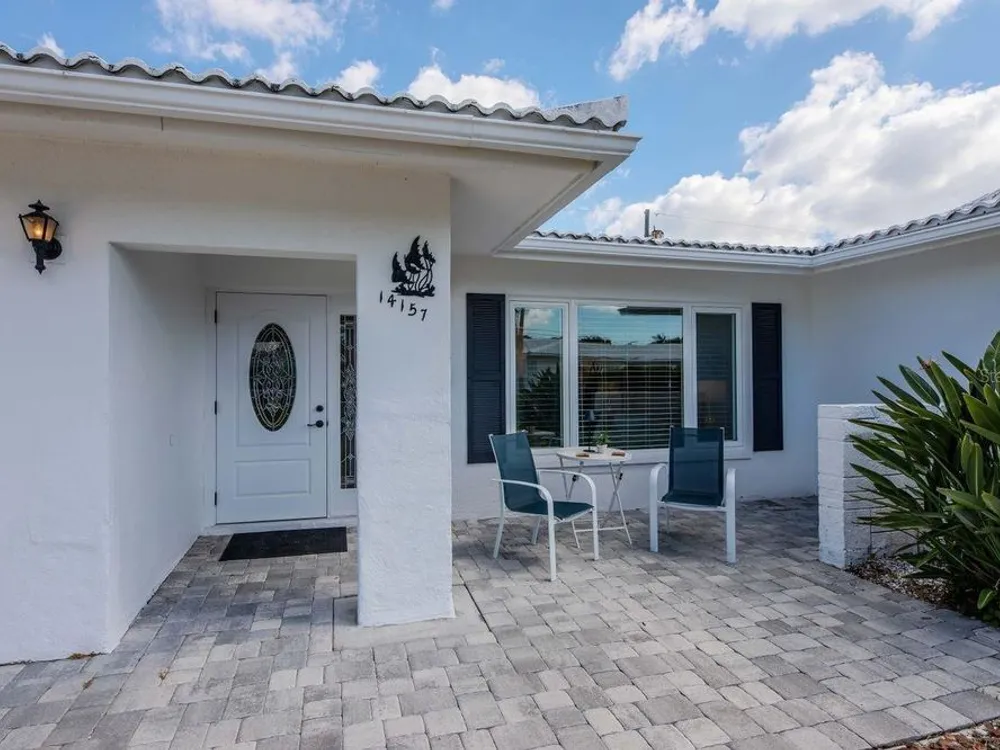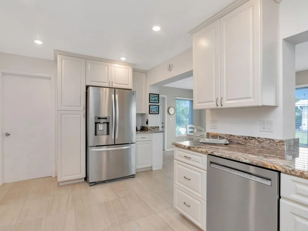 Located in the desirable 55+ community of Tamarac on the Gulf, this spacious two-bedroom, two-bath “Skipper” model home is filled with natural light and offers multiple gathering areas inside and out. The large living room features a beautiful picture window overlooking the front porch, while the adjoining dining area—perfect for use as a study—blends sunlight from both the front living room and the rear sunroom for a warm, inviting feel. The updated kitchen showcases newer cabinetry with soft-close doors and pull-out drawers, slab granite countertops, stainless steel appliances, tile flooring, recessed lighting, and an opening to the sunroom with additional dining and family space. The oversized primary suite includes a walk-in closet and an upgraded bath with a shower bench. The vintage-style hallway bath provides convenient access to the living areas and guest bedroom. Additional upgrades include IMPACT vinyl windows and doors, a widened driveway for extra parking, and a paver front porch. Community amenities feature a pool, shuffleboard courts, and a clubhouse with scheduled activities. The low $240 monthly HOA fee covers lawn mowing, pool maintenance, exterior painting every nine years, roof pressure cleaning, private road upkeep, clubhouse maintenance, trash, sewer, and water. Conveniently located near shopping, restaurants, and the beach—this is Florida living at its best!