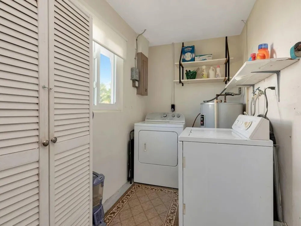 - Dishwasher, Disposal, Dryer, Electric Water Heater, Exhaust Fan, Microwave, Range, Refrigerator, Washer