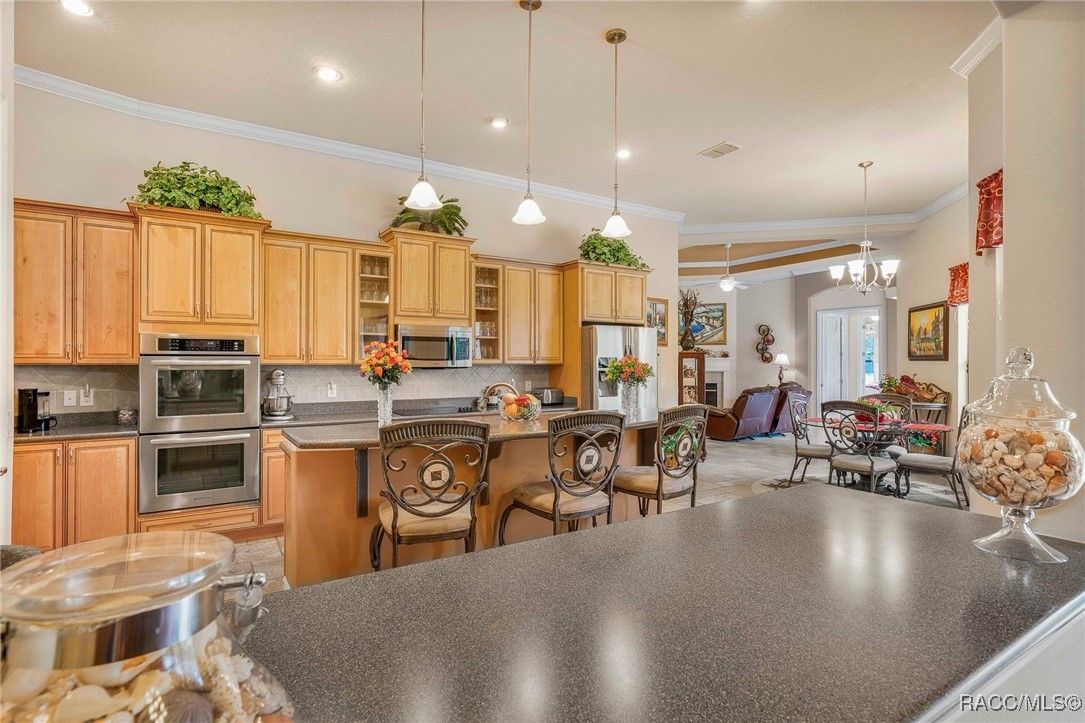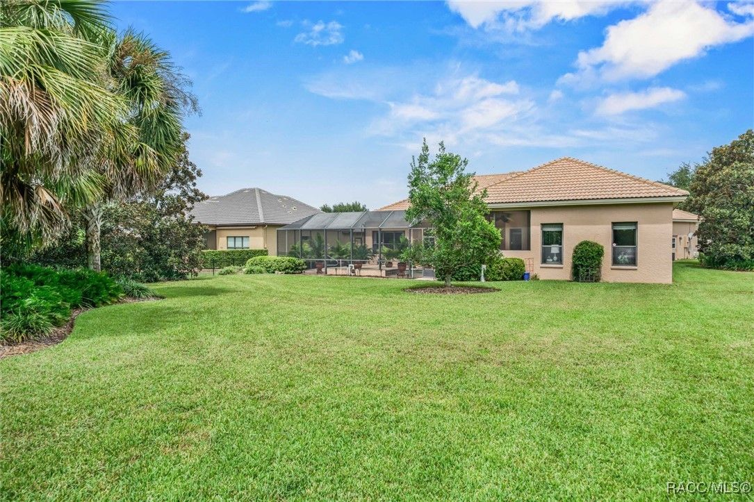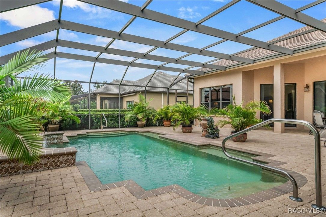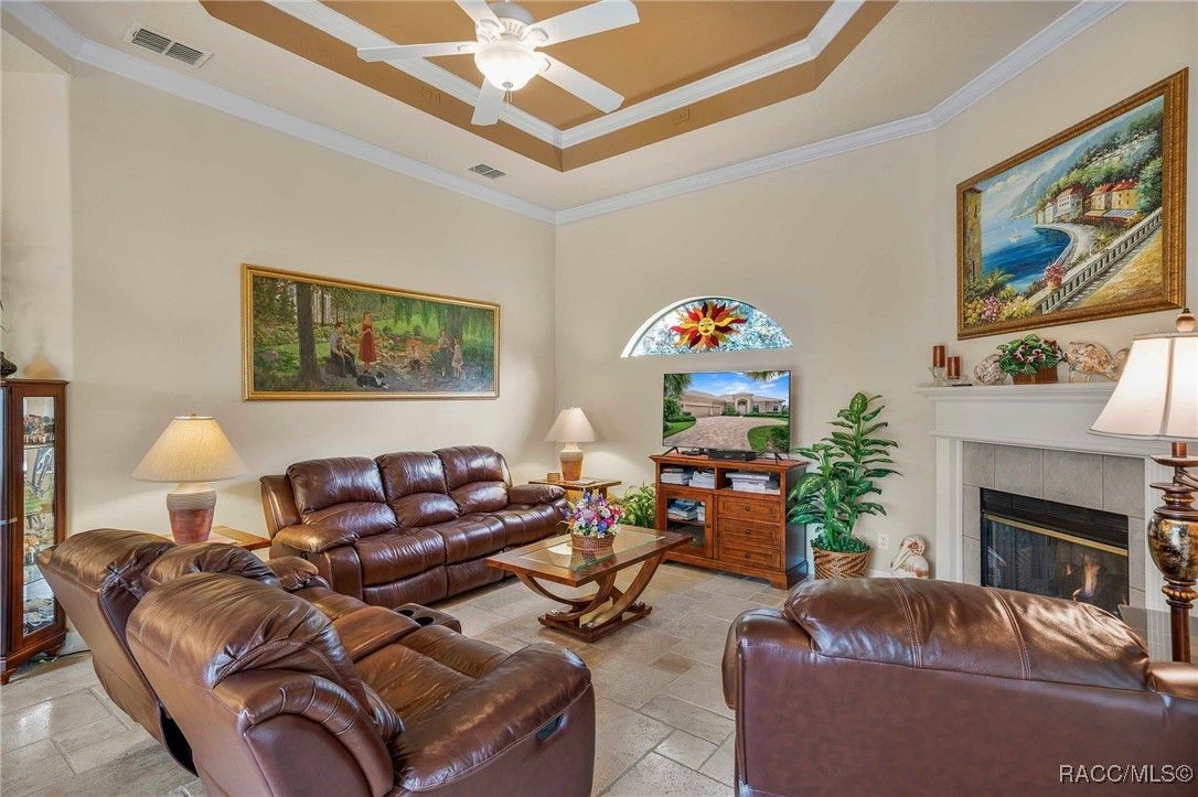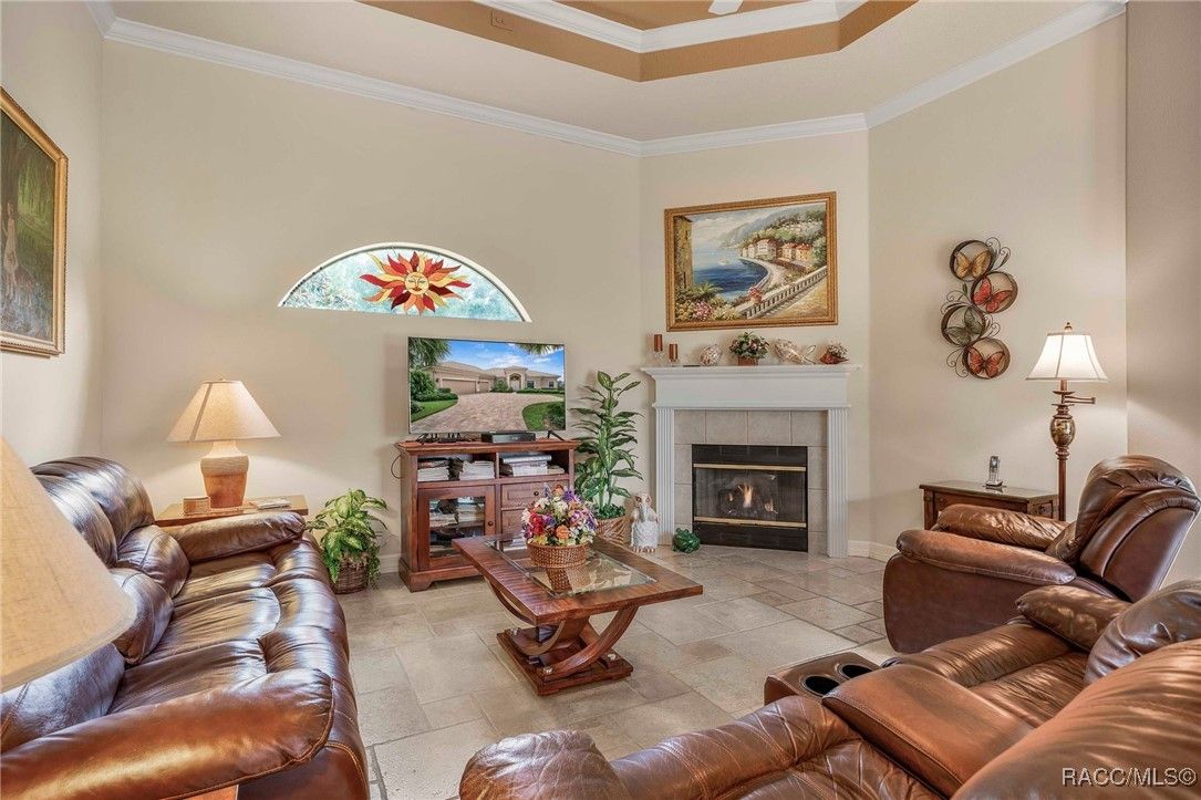 Welcome to resort-style living in Terra Vista, one of the nation's premier lifestyle communities! This impressive 5-bedroom, plus 2 den/flex room, 3,465 sq. ft. home sits on a beautifully landscaped half-acre lot and offers exceptional indoor and outdoor living. Step inside to find elegant details including crown molding, tray ceilings, imported travertine flooring, and a spacious floor plan with living, dining, family, office, and a chef's kitchen featuring glazed maple cabinets, stainless steel appliances, bar seating, breakfast nook, and double self-cleaning ovens. The primary suite boasts dual walk-in closets and a luxurious bath. Outdoor living shines with a 1,734 sq. ft. screened lanai designed for entertaining, with paver flooring, outdoor kitchen connections, and a stunning 24x14 gas-heated, self-cleaning pool with waterfall and benches. Additional highlights include a 2.5-car epoxy-finished garage with a large paver driveway, natural gas utilities (tankless water heater, dryer, grill, pool heater, fireplace), central vacuum, intercom, security system, and abundant storage throughout. Terra Vista residents enjoy world-class amenities, including golf, fitness centers, dining, and social clubs-all just minutes from shopping, medical, and outdoor adventures in "Mother Nature's Playground." Convenient to Tampa airport (1hr), Orlando airport (1.5 hrs), and the Gulf. Experience luxury, convenience, and small-town charm all in one.