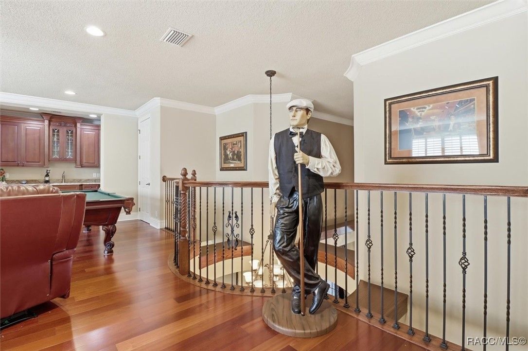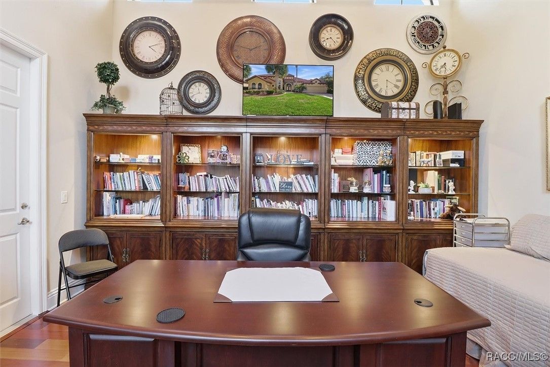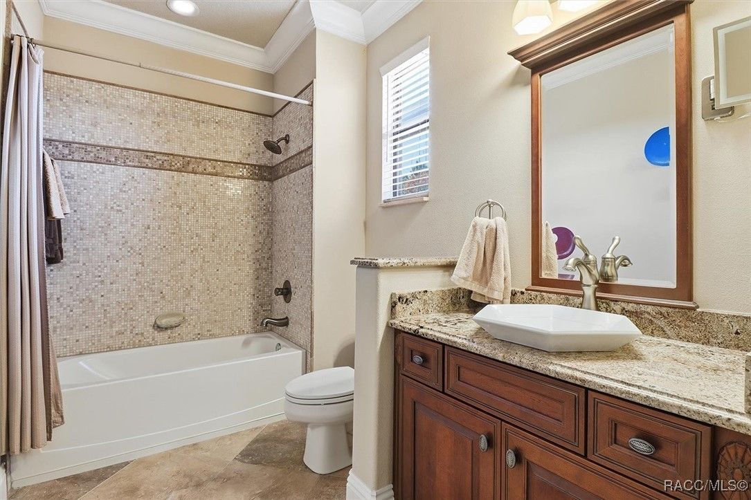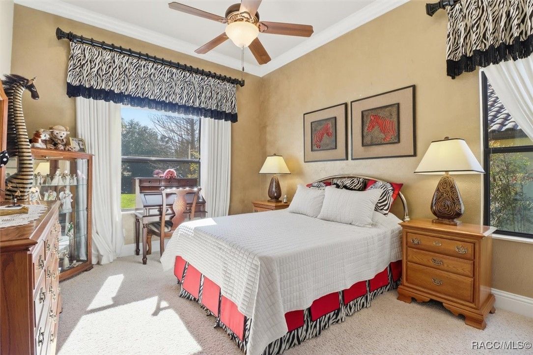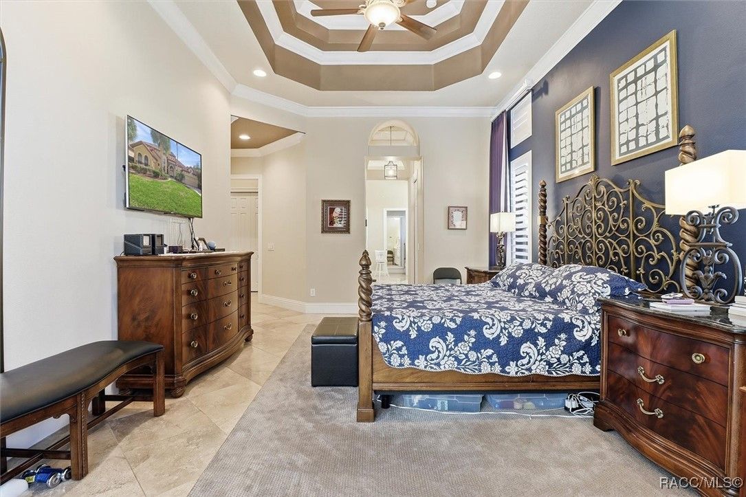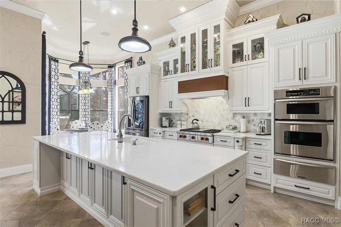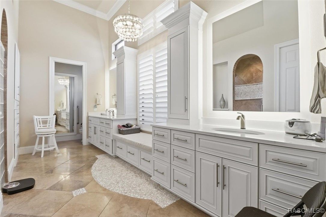 Show-stopping residence located in Terra Vista within the highly sought-after Bellamy Ridge community. This original model home is the definition of elegance and space. Offering over 4,000 square feet of living space, this expansive home features 4 bedrooms and 3.5 bathrooms, designed to impress at every turn. The heart of the home showcases a sleek eat-in kitchen with quartz countertops, gas stove, double ovens, and abundant cabinetry, all overlooking the main living area with a cozy fireplace, perfect for entertaining or everyday comfort. A separate formal dining area adds flexibility for hosting special gatherings. The primary suite is truly impressive, featuring tray ceilings and a private sitting area flooded with natural light. The luxurious primary bathroom offers double sinks, a walk-in shower, generous storage, and the added convenience of a private washer and dryer that convey with the home. Downstairs includes three additional rooms, one currently used as an office, offering versatility for guests, hobbies, or work-from home needs. Upstairs, you’ll find an impressive 845-square-foot loft complete with a full bathroom and kitchenette, ideal for a guest suite, in-law quarters, home theater, game room, private gym, or extra living space. Step outside to your personal retreat: a stunning covered lanai with travertine pavers, custom outdoor kitchen perfect for BBQs and family gatherings, and a resort-style pool and spa designed for pure relaxation. Community amenities include indoor and outdoor pools, tennis courts, golf and a golf simulator, library, billiards room, on-site restaurants, and a full-service spa. Additional highlights include a two-car garage plus an attached golf cart garage, completing this exceptional home that blends luxury, comfort, and functionality. Call today for a private showing, where elegance welcomes you home at every corner.