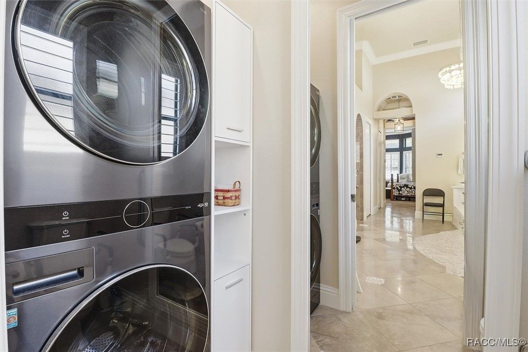 - Dryer, Washer/Dryer Stacked, Dishwasher, Disposal, Gas Oven, Gas Range, Refrigerator, Range Hood, Washer