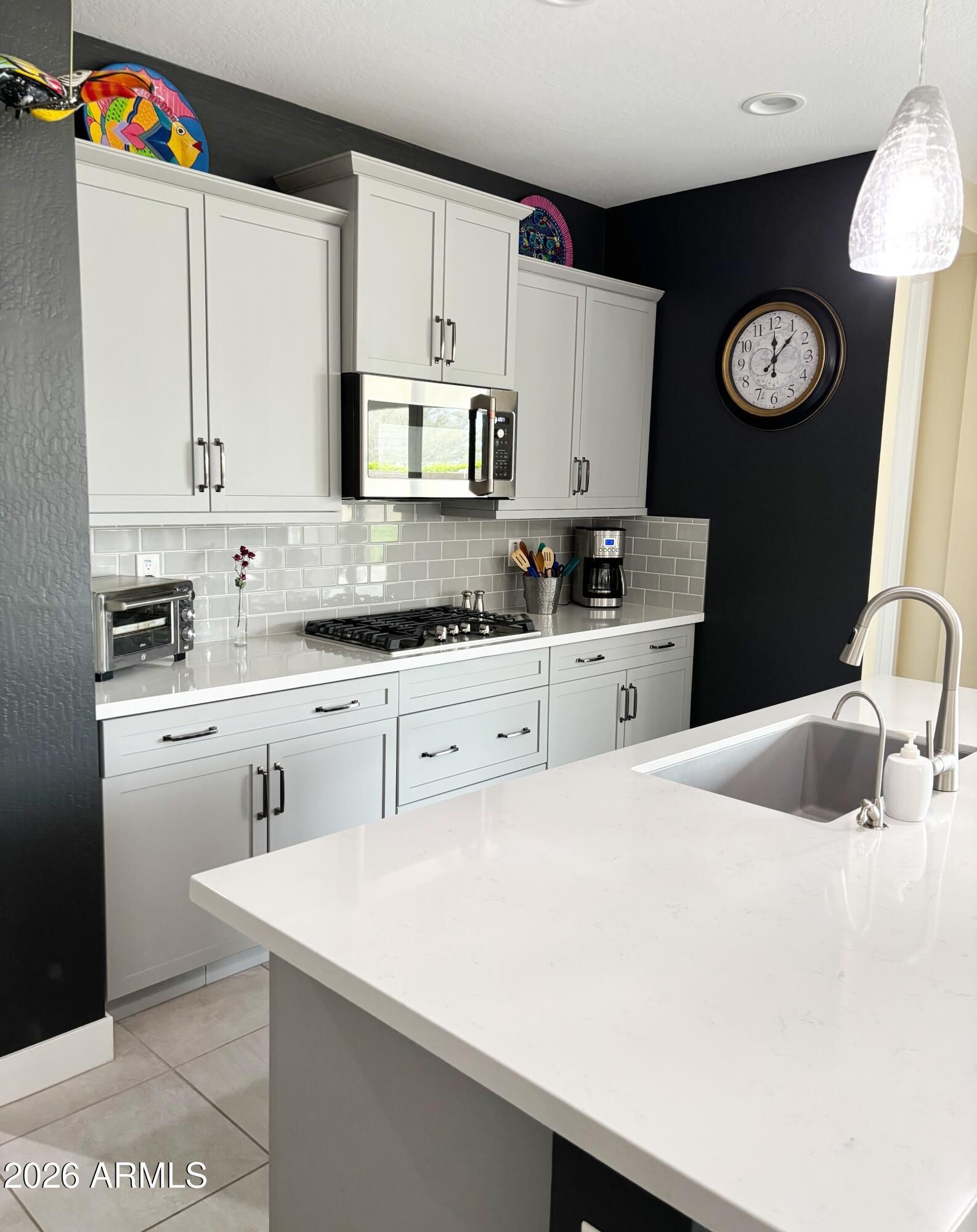 - Water Softener Owned, Refrigerator, Built-in Microwave, Dishwasher, Disposal, Gas Range