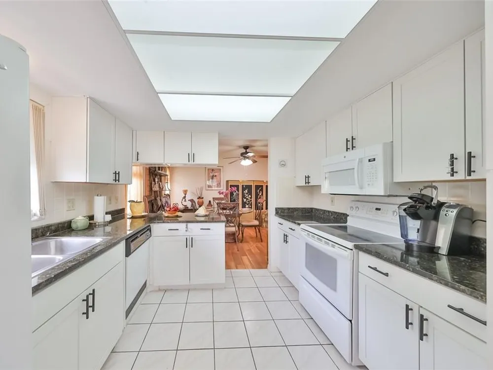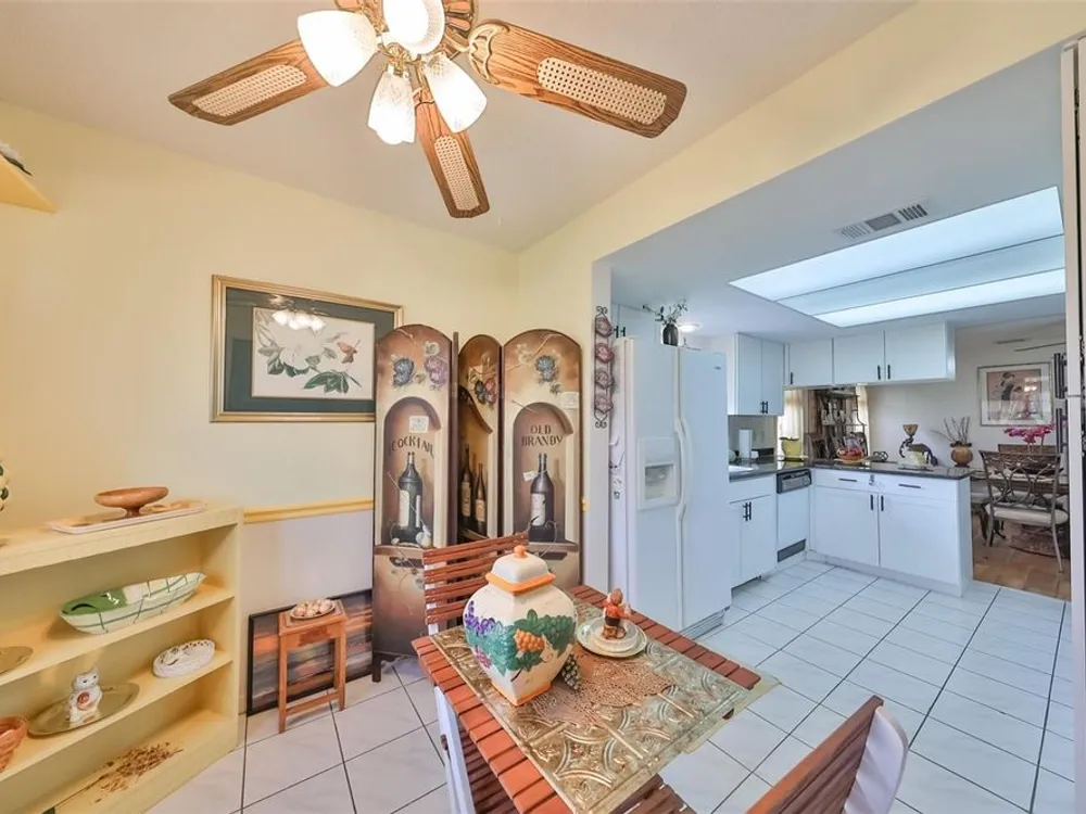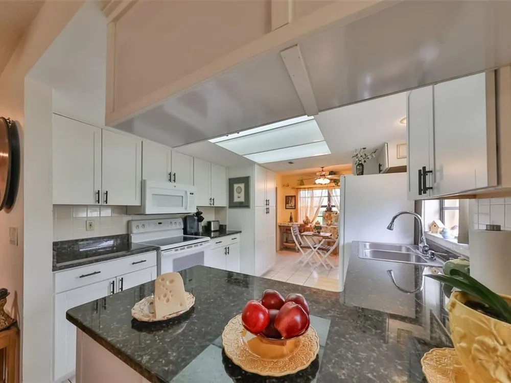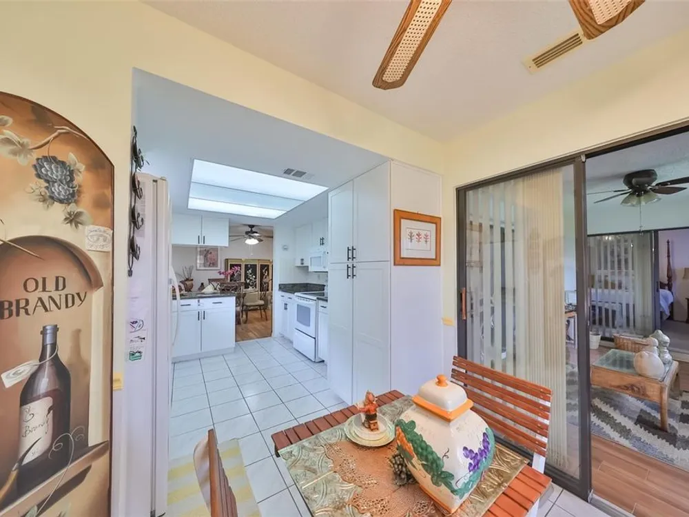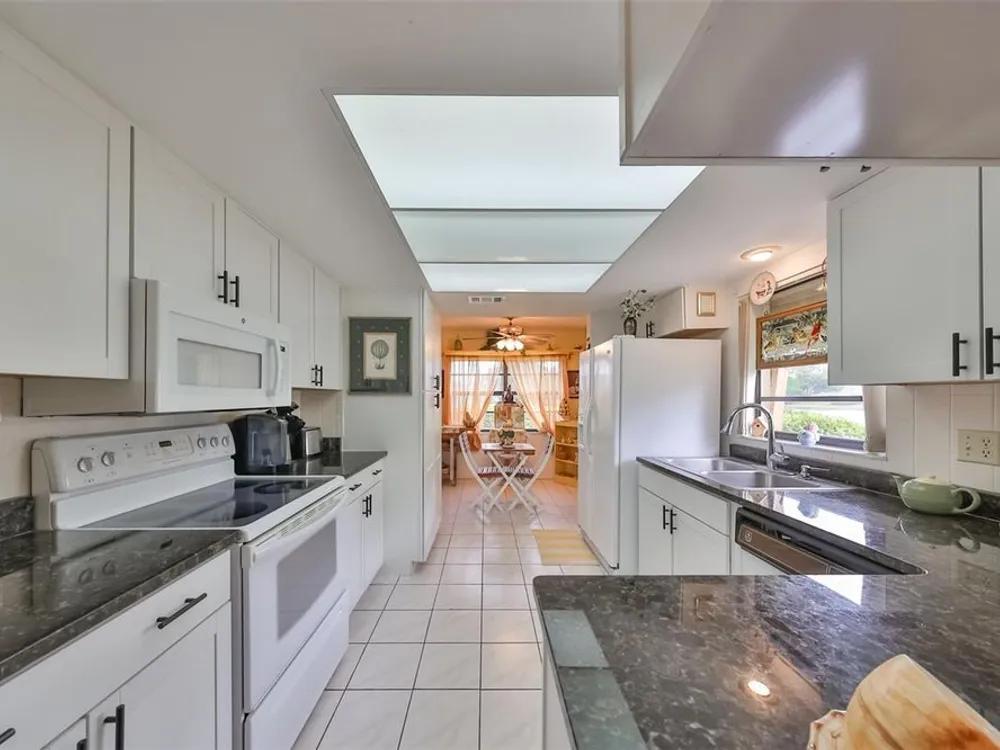 SAFE & SECURE thru 2 major hurricanes thanks to the easy to operate roll down hurricane shutters. Safety & Security are so important plus this lovely spacious home also offers 2 bedrooms, 2 baths a 2 car garage and many updated features. Located in the heart of Kings Point 55+ community! When you step into this gorgeous home your eyes immediately focus on the easy care, wood look plank tile floors through-out the living areas. The gourmet kitchen has new white painted wood cabinets and black granite counter tops for a striking contrast. Enjoy the peaceful pond view as you enjoy coffee in the dinette or from the lovely fully enclosed Florida room. The owner's suite is huge (14x15) and has a 5x8 walk in closet. The bath features a walk in shower for comfort and safety. The split bedroom plan provides plenty of privacy when the guests arrive. This well insulated home provides you with energy savings and low cost utility bills, partly due to the high efficiency HVAC system installed in 2018. Safe and secure you will be in gated Kings Point, where golf carts, golf, tennis, pickle ball, pool aerobics, multiple club houses and you name the hobby keeps you on the go as much as you desire. Enjoy shows, musicals, social clubs, day trips, and much more. A very spacious garage provides room for your car and your golf cart plus plenty of extra storage room. Schedule your private showing. The owner is anxious to be with her family in the mid-west, allowing you to enjoy the holidays in your new Florida dream home. Call today to schedule your private tour.