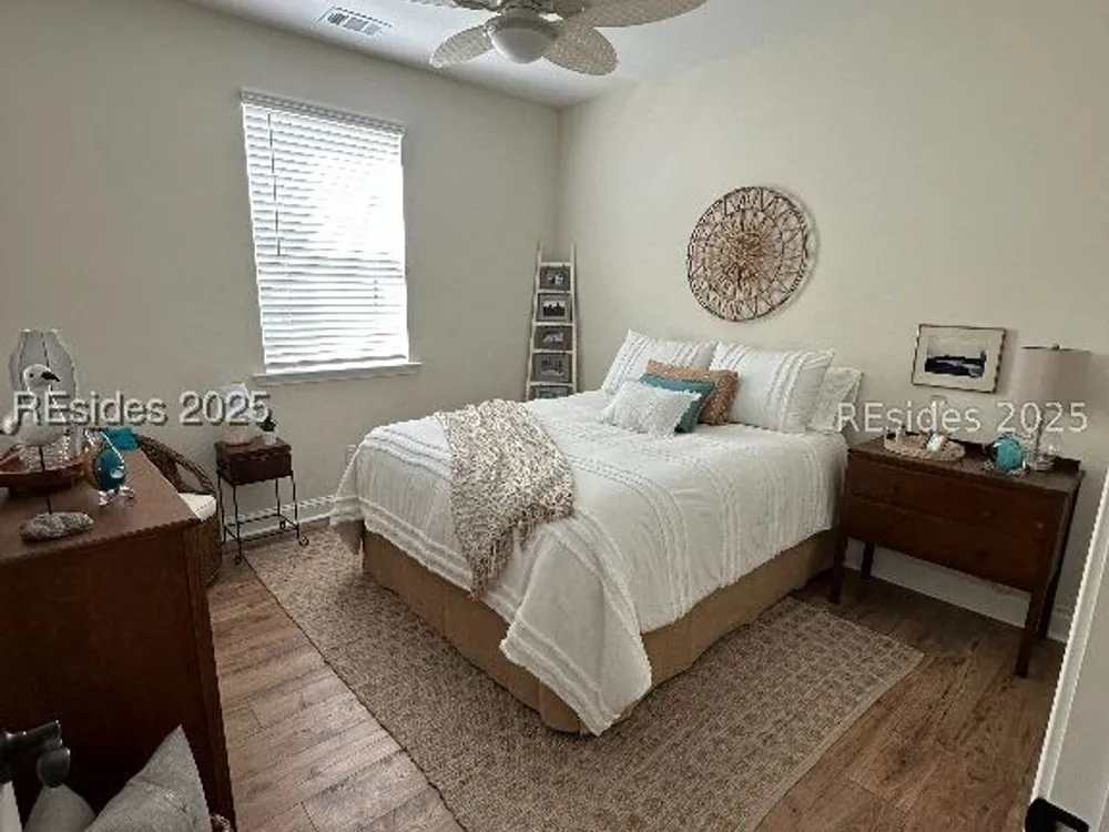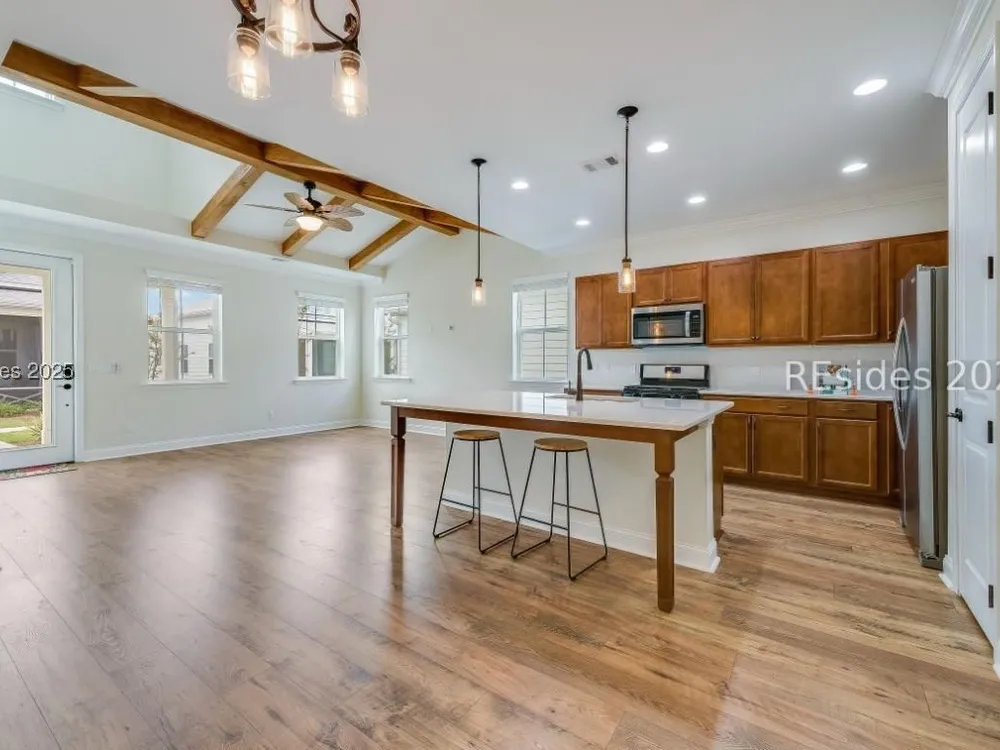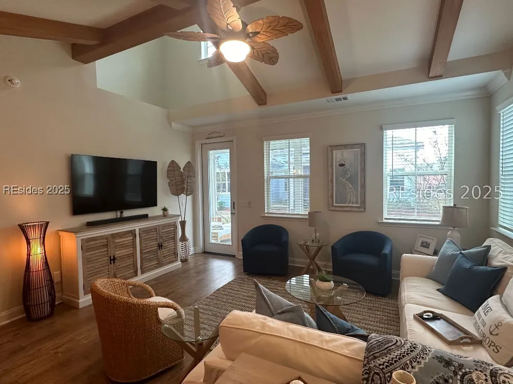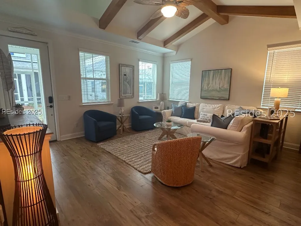 MOTIVATED SELLER! Dreaming of resort-style living in Latitude Margaritaville Hilton Head? This cozy Bamboo model cottage is move-in ready and priced to sell. No construction waits - instant island vibes in this Lowcountry haven. Sip cocktails and enjoy the breeze on the inviting screened front porch with lagoon view. This 2-bed, 2-bath gem boasts an open floor plan with warm wooden kitchen cabinets, rustic ceiling beams, and durable LVP flooring. Enjoy the large center island with white quartz counters, subway tile backsplash, water filtration system, and SS appliances. Neutral paint, 8-foot doors, and high ceilings flood the space with light. Convenience abounds: Keyless entry, 2-car garage with utility sink, and reserved parking. Dive into Margaritaville perks - pools, entertainment, fitness, live music - all steps away. This is a Must See!