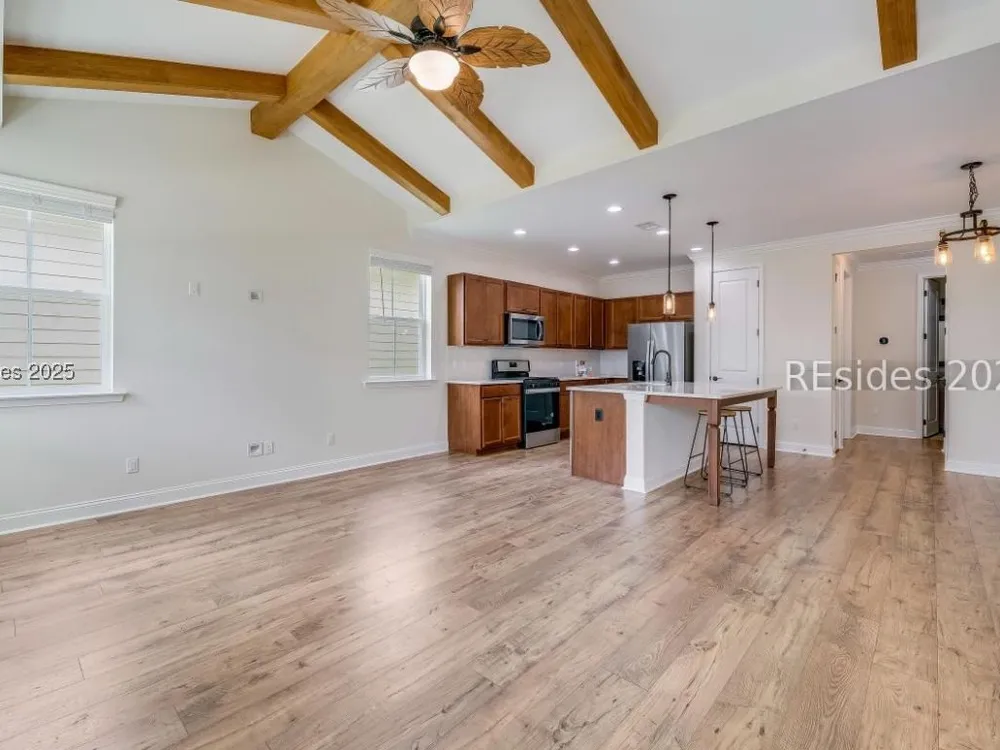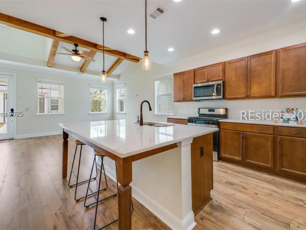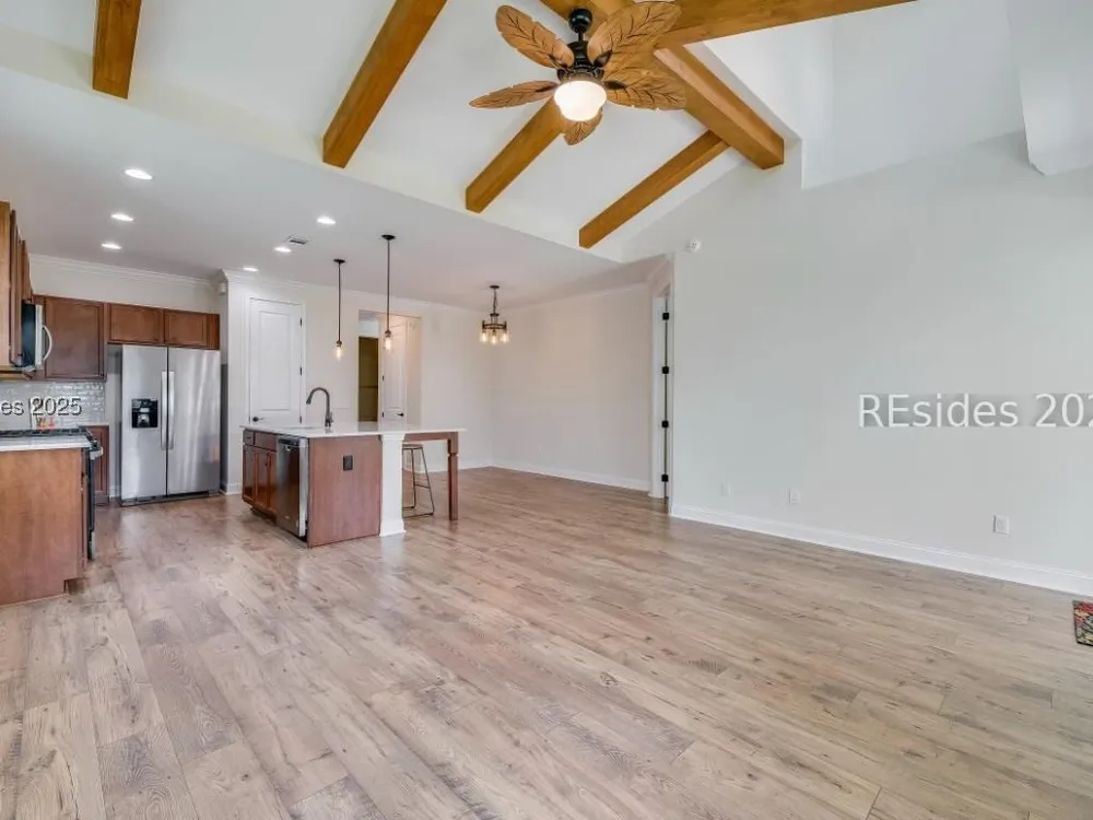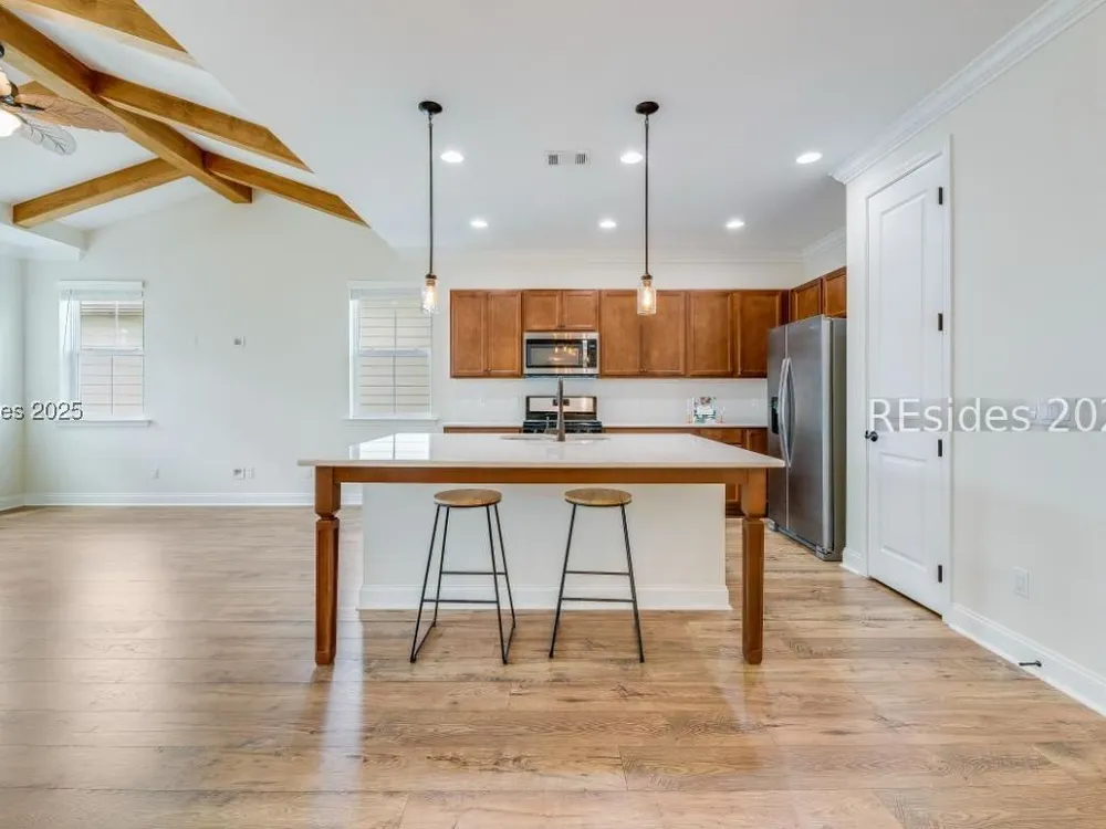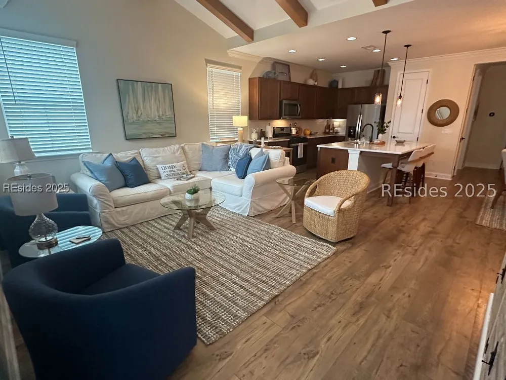 MOTIVATED SELLER! Dreaming of resort-style living in Latitude Margaritaville Hilton Head? This cozy Bamboo model cottage is move-in ready and priced to sell. No construction waits - instant island vibes in this Lowcountry haven. Sip cocktails and enjoy the breeze on the inviting screened front porch with lagoon view. This 2-bed, 2-bath gem boasts an open floor plan with warm wooden kitchen cabinets, rustic ceiling beams, and durable LVP flooring. Enjoy the large center island with white quartz counters, subway tile backsplash, water filtration system, and SS appliances. Neutral paint, 8-foot doors, and high ceilings flood the space with light. Convenience abounds: Keyless entry, 2-car garage with utility sink, and reserved parking. Dive into Margaritaville perks - pools, entertainment, fitness, live music - all steps away. This is a Must See!