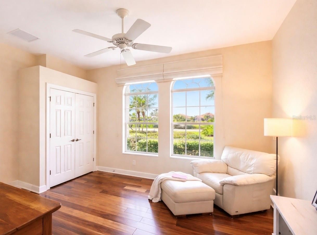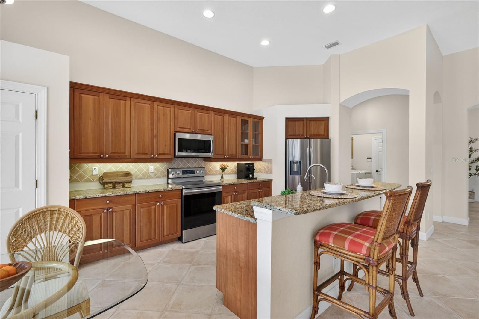 - Ceiling Fan(s), Eat-in Kitchen, High Ceilings, Open Floorplan, Main Level Primary, Solid-Wood Cabinets, Stone Counters, Tray Ceiling(s), Walk-In Closet(s), Window Treatments
