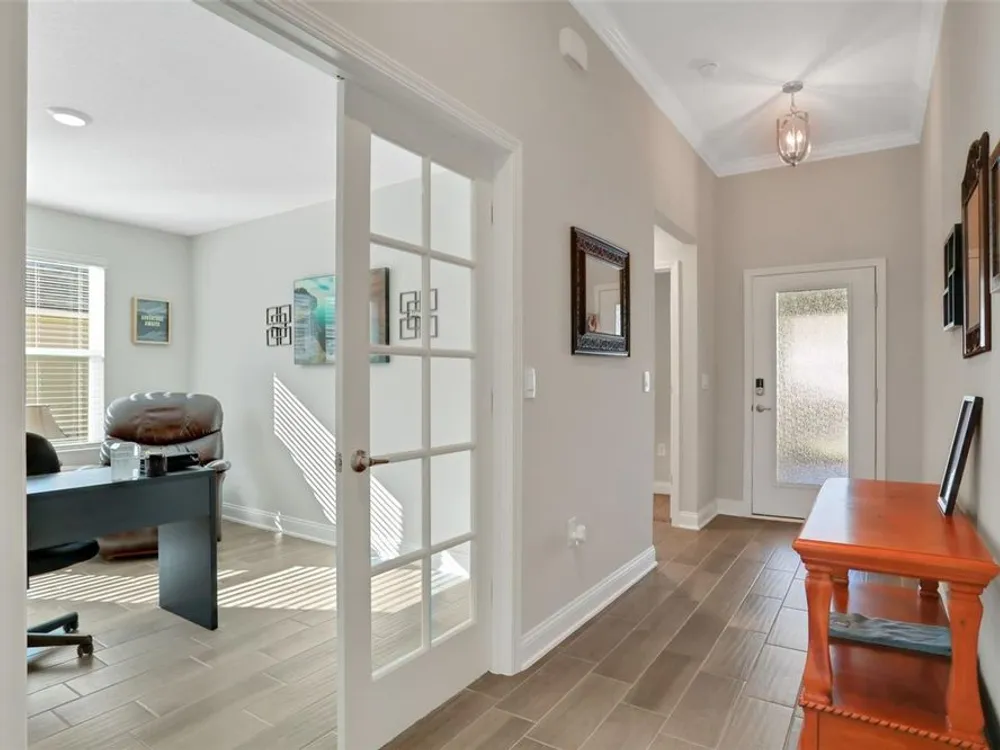 Welcome to Parkland Preserve, one of St. Augustine's most desirable 55+ active adult communities! This 2-bedroom, 2-bath +Office/Study/Flex residence offers the perfect blend of comfort, elegance, and low-maintenance living. Step inside to an open-concept living area, where natural light fills the space, and the high ceilings add an airy, spacious feel. The gourmet kitchen features quartz countertops, stainless steel appliances, and a large island, ideal for entertaining. The expansive primary suite offers a peaceful retreat with an ensuite bath, featuring dual vanities and a walk-in shower. An additional bedroom provides ample space for guests and one additional, beautifully appointed, bathroom ensures convenience. Also, enjoy the privacy of a French-door-enclosed Office/Study! Outside, enjoy Florida's sunny weather in your private screened-in lanai, backed to the lake - perfect for morning coffee or evening relaxation! The community offers resort-style amenities including a Clubhouse, Pool, and Fitness Center. Parkland Preserve offers fantastic amenities, including a walk-in pool with a handicap lift, a state-of-the-art fitness center, pickleball and bocce ball courts, and a dog park. The amenity center hosts planned activities, community events, a library, & a covered pavilion for social gatherings.
