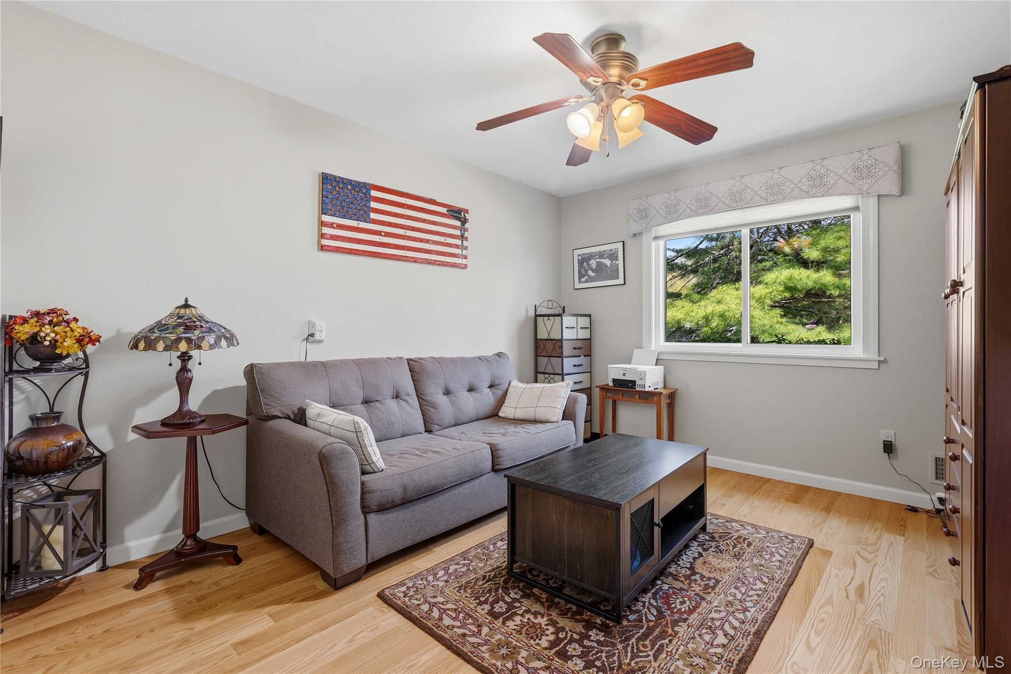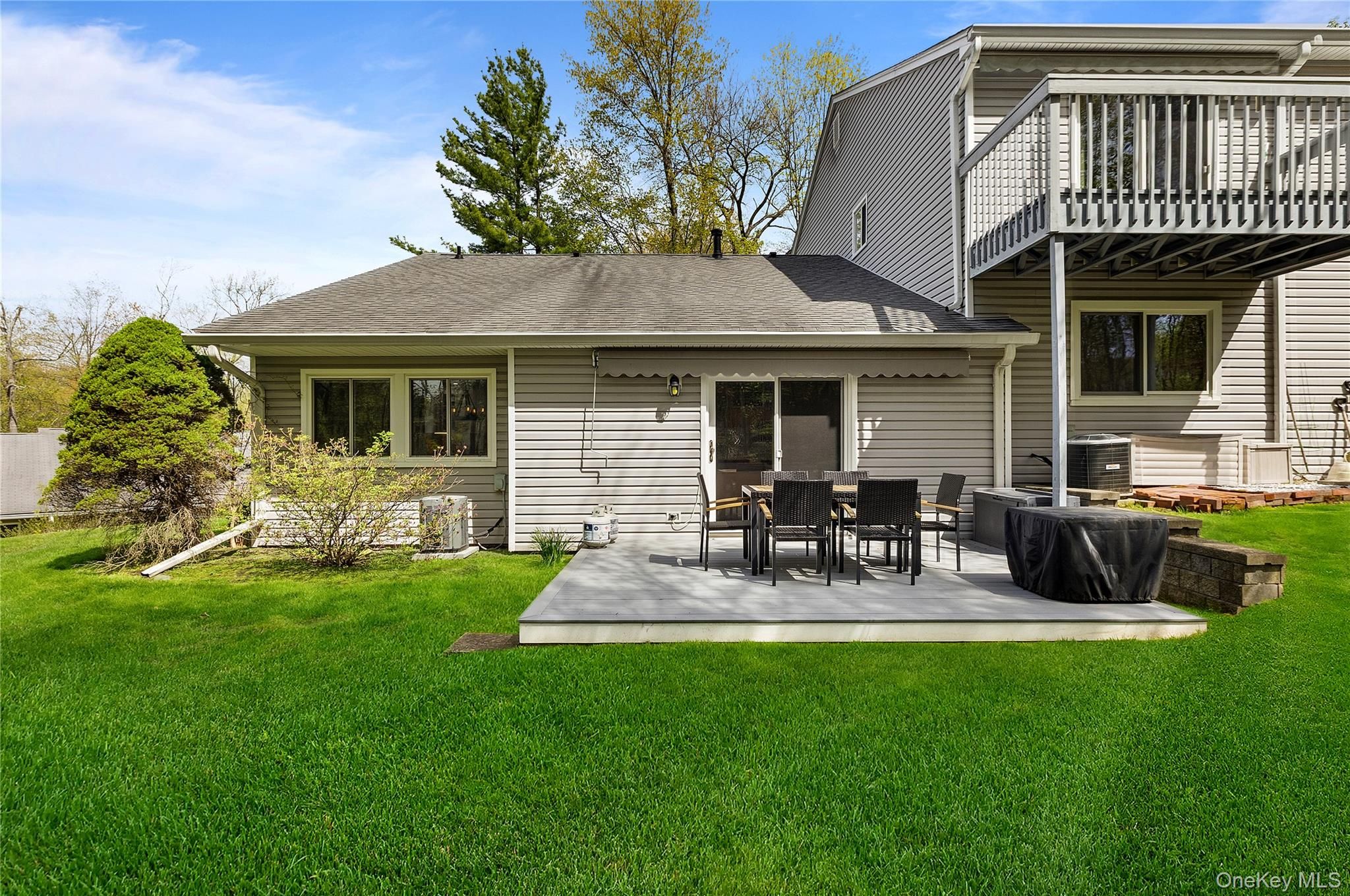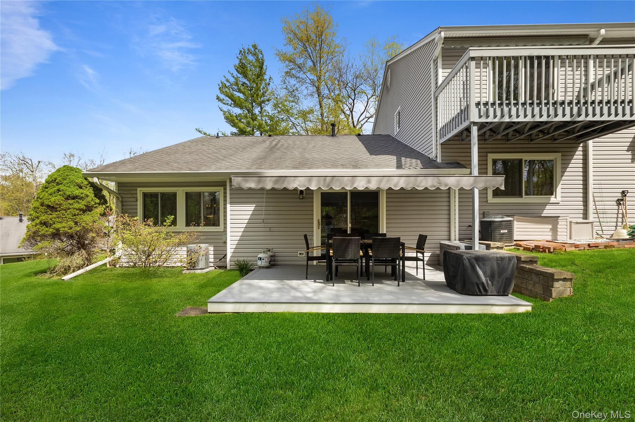 This polished Bradford model in the premier 55+ community of Jefferson Village is the one you’ve been waiting for! A beautiful entry foyer flows seamlessly into a bright, open-concept main living area featuring stunning hardwood flooring, recessed lighting and elegant crown molding that adds a sophisticated, finished look. The gourmet kitchen is a true centerpiece, boasting custom cabinetry, sleek quartz countertops, a stylish grey porcelain apron sink, plus under mount microwave. The added oversized island provides ample workspace and the perfect natural gathering spot for guests. Retreat to the primary ensuite featuring a private bath with heated towel warmers, reach in closet, while guests can enjoy the convenience of a second bathroom with a modern glass-enclosed shower. For ultimate convenience, there is a dedicated laundry center with a full-size washer and dryer. Heat and water are included in your monthly common charges. Step outside onto your private composite deck—gentle on the feet and perfect for relaxing under the motorized electric awning, accessible at the push of a button. This unit also includes a one-car garage (shared with only one other neighbor). Experience carefree, luxury living at its finest! Let's talk the Village Lifestyle with pickleball, gardening, tennis, pool, bocce, and walking trail. Not enough? Clubhouse is utilized for dart teams, daily exercise programs, fitness center, pool tables, card games and don't miss the sign up for planned travel trips and daily excursions in the Hudson Valley and beyond! Close to the Taconic Parkway, Jefferson Valley Mall, restaurants, The Village offers it all!