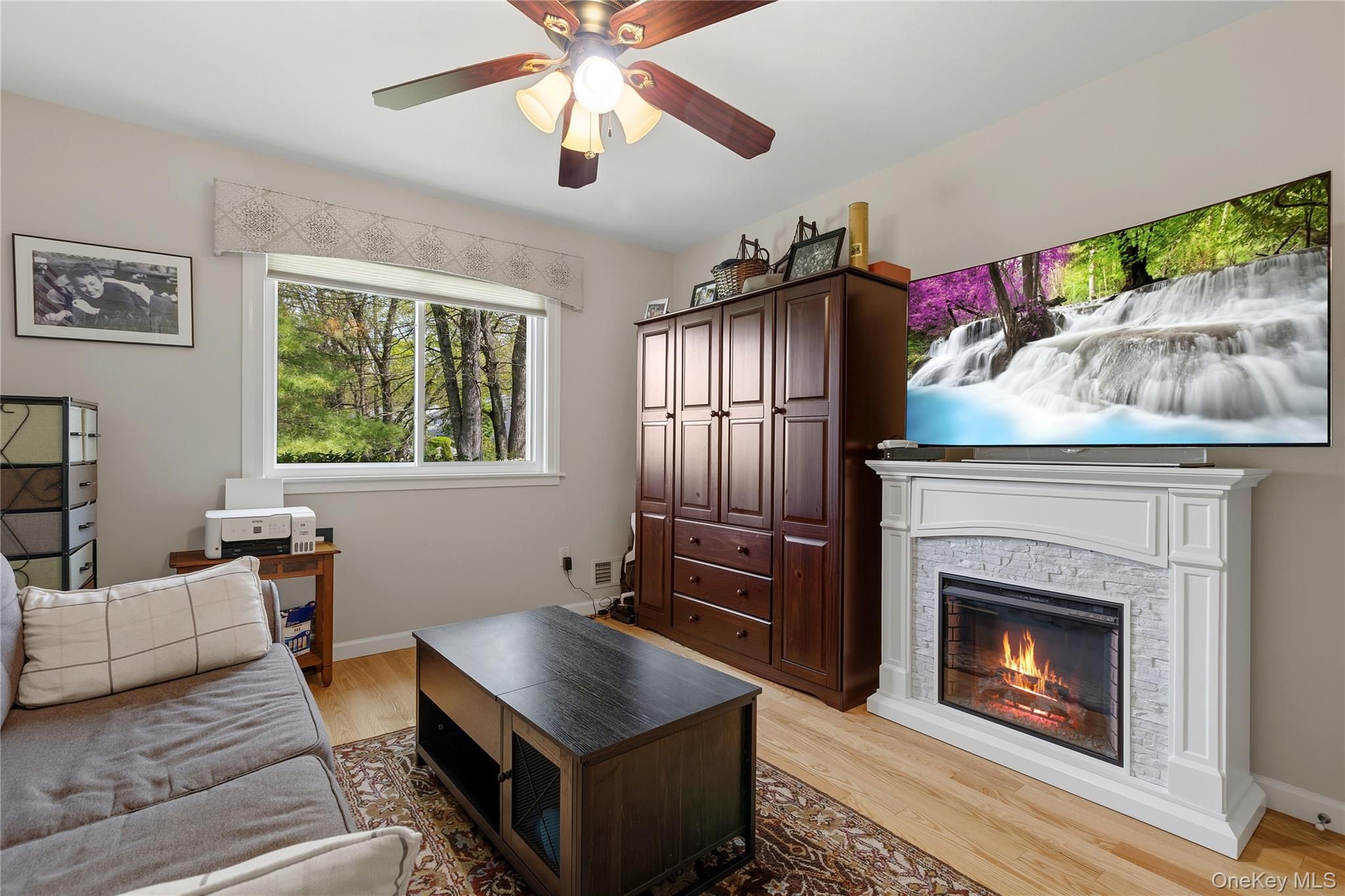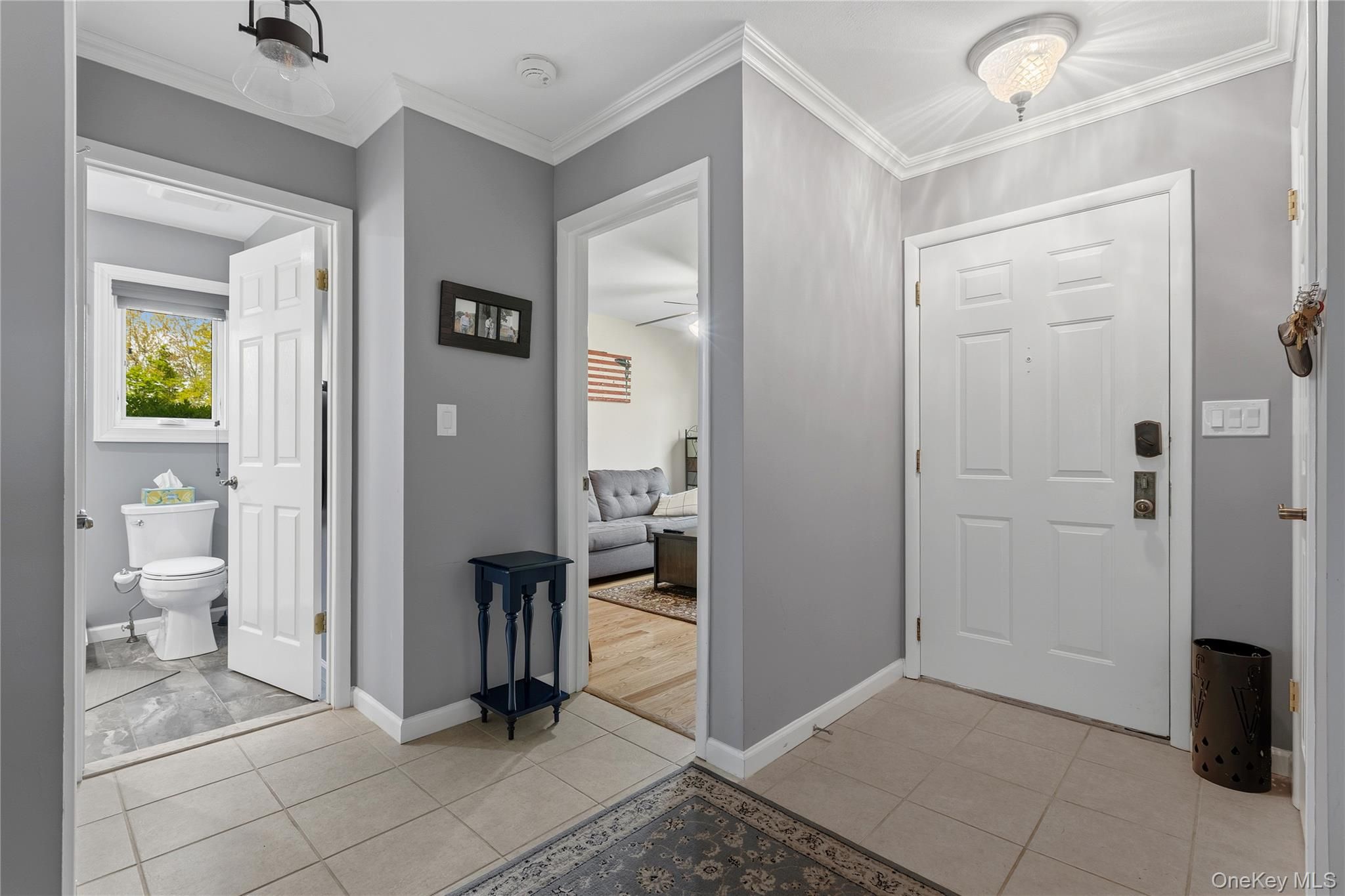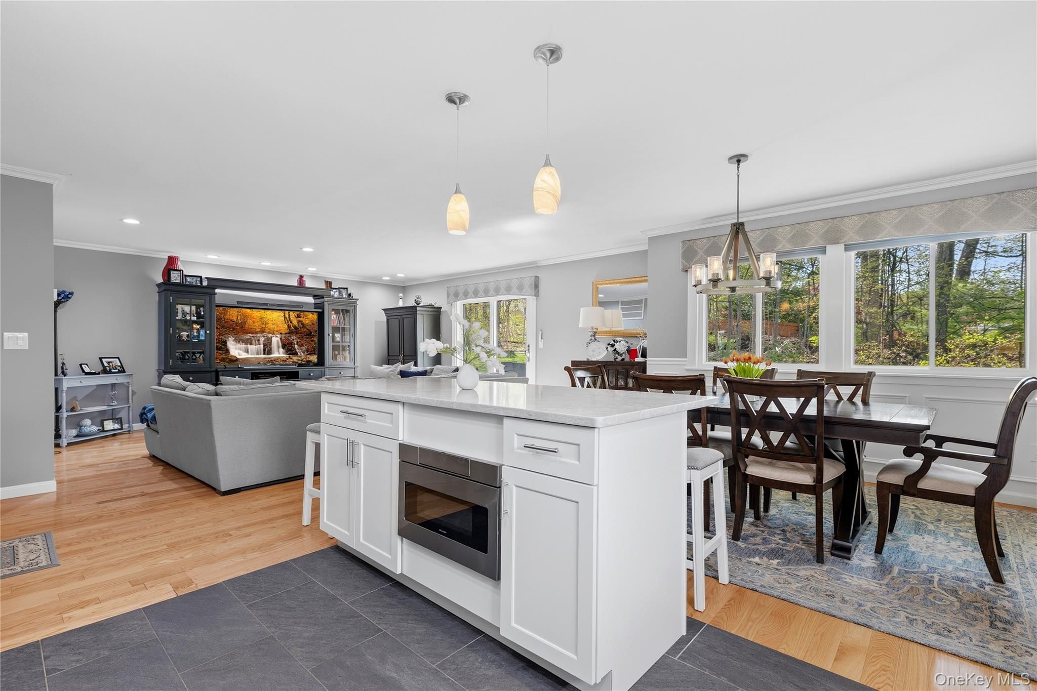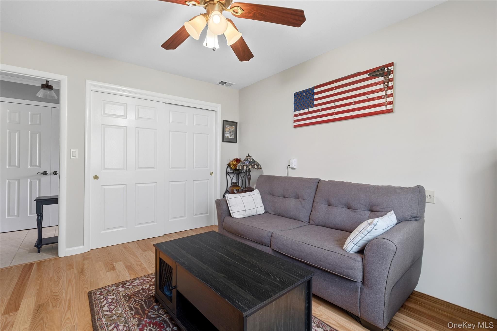 This polished Bradford model in the premier 55+ community of Jefferson Village is the one you’ve been waiting for! A beautiful entry foyer flows seamlessly into a bright, open-concept main living area featuring stunning hardwood flooring, recessed lighting and elegant crown molding that adds a sophisticated, finished look. The gourmet kitchen is a true centerpiece, boasting custom cabinetry, sleek quartz countertops, a stylish grey porcelain apron sink, plus under mount microwave. The added oversized island provides ample workspace and the perfect natural gathering spot for guests. Retreat to the primary ensuite featuring a private bath with heated towel warmers, reach in closet, while guests can enjoy the convenience of a second bathroom with a modern glass-enclosed shower. For ultimate convenience, there is a dedicated laundry center with a full-size washer and dryer. Heat and water are included in your monthly common charges. Step outside onto your private composite deck—gentle on the feet and perfect for relaxing under the motorized electric awning, accessible at the push of a button. This unit also includes a one-car garage (shared with only one other neighbor). Experience carefree, luxury living at its finest! Let's talk the Village Lifestyle with pickleball, gardening, tennis, pool, bocce, and walking trail. Not enough? Clubhouse is utilized for dart teams, daily exercise programs, fitness center, pool tables, card games and don't miss the sign up for planned travel trips and daily excursions in the Hudson Valley and beyond! Close to the Taconic Parkway, Jefferson Valley Mall, restaurants, The Village offers it all!