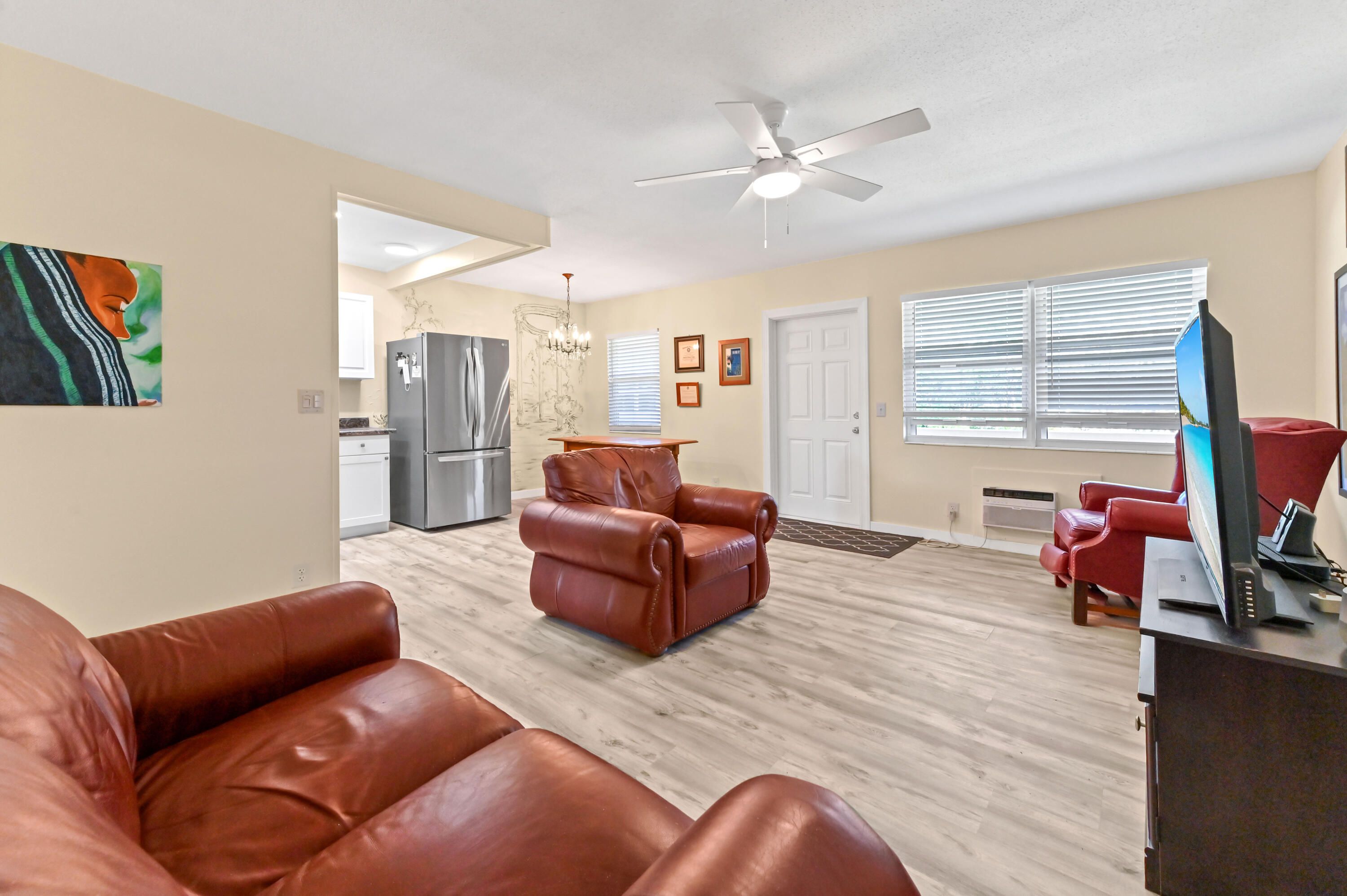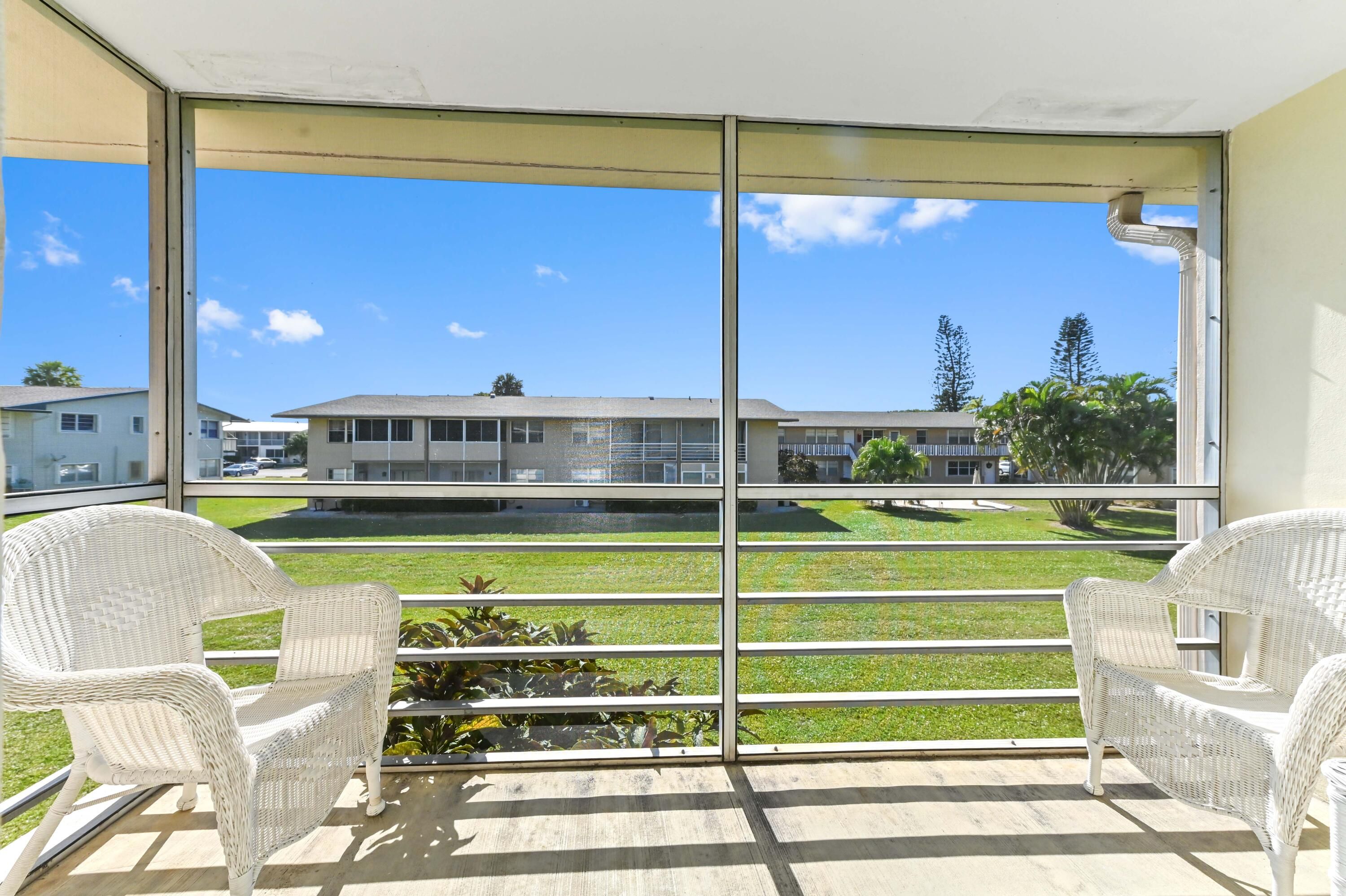 ROOF ASSESSMENT PAID IN FULL ($8,000 Value)! RENTABLE FROM DAY 1! This 2-bedroom, 1.5-bath condo located in the vibrant gated 55+ community of Century Village offers exceptional value. The seller-paid assessment covers the building's brand-new 2024 roof, saving you years of additional payments. Move in with total confidence knowing that major structural and system upgrades are already complete: fortified with an impact-resistant entry door and five new impact windows (2023), a brand-new 2026 water heater, and an updated 2023 electrical panel to support added A/C amps. Facing east to capture the morning sun, this 819-square-foot residence features efficient, customized comfort with three total A/C units, including a quiet, energy-efficient mini-split (A/C-Heat Pump) installed in 2023. The interior boasts modern wood-look laminate flooring in the living and dining areas, cool easy-to-maintain tile in the bedrooms, and a kitchen equipped with crisp white cabinetry and a stainless steel microwave. Step onto the screened-in balcony to enjoy fresh air and peaceful garden views, or utilize the convenient community laundry on the first floor for just $1 per load. Ideally situated minutes from shopping, dining, and Florida beaches! Just 5 miles to Palm Beach International Airport. This investor-friendly home is rentable from day one. Residents enjoy a secure environment with guard patrol and access to a clubhouse with WiFi, pools, and a 1,221-seat theater for live entertainment. The total monthly fees are $676 (comprised of a $495 HOA fee and $181 amenities fee), offering a comprehensive lifestyle package without surprise costs.