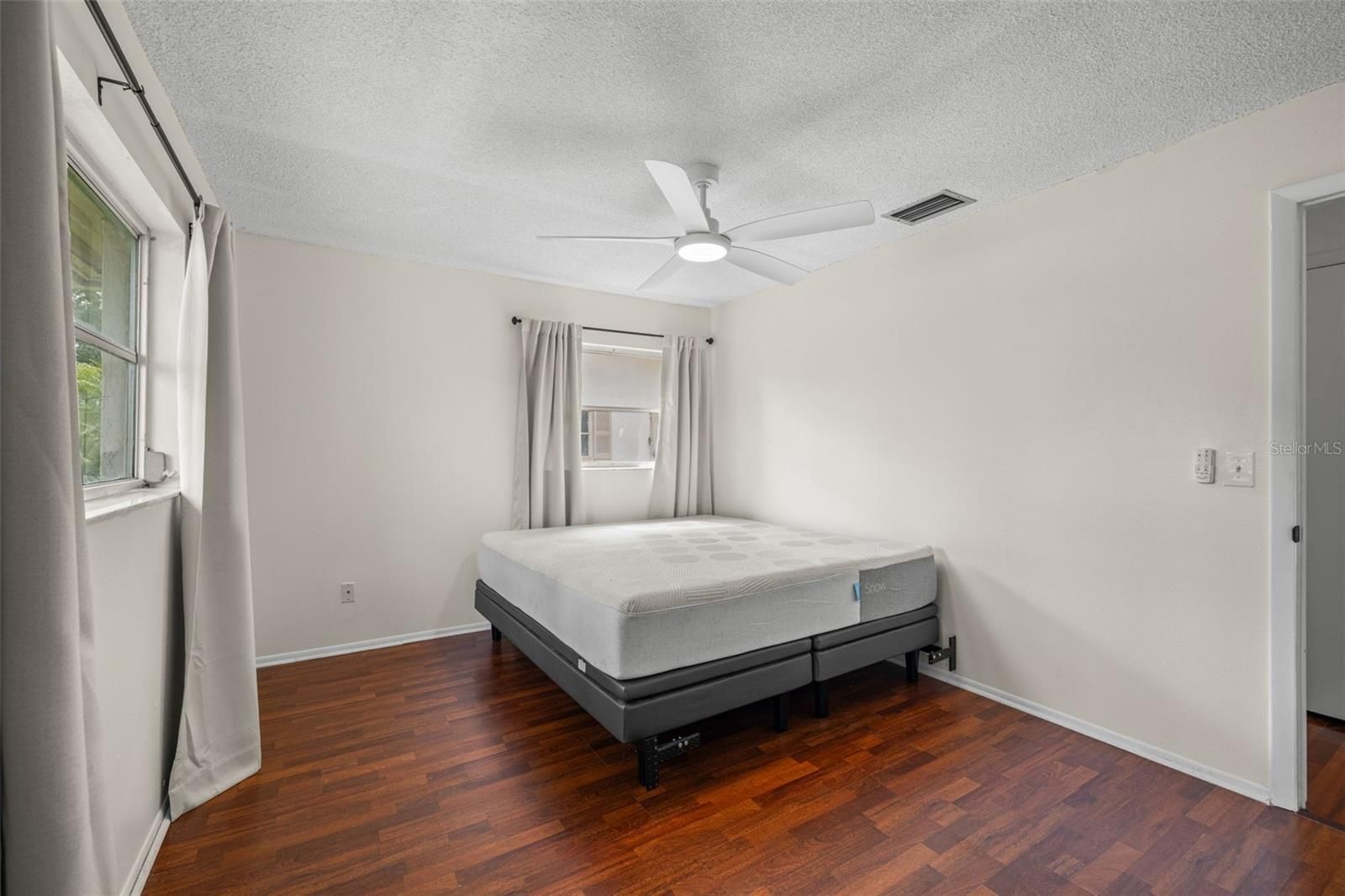 - Ceiling Fan(s), Eat-in Kitchen, High Ceilings, Living/Dining Room, Open Floorplan, Main Level Primary, Thermostat, Window Treatments