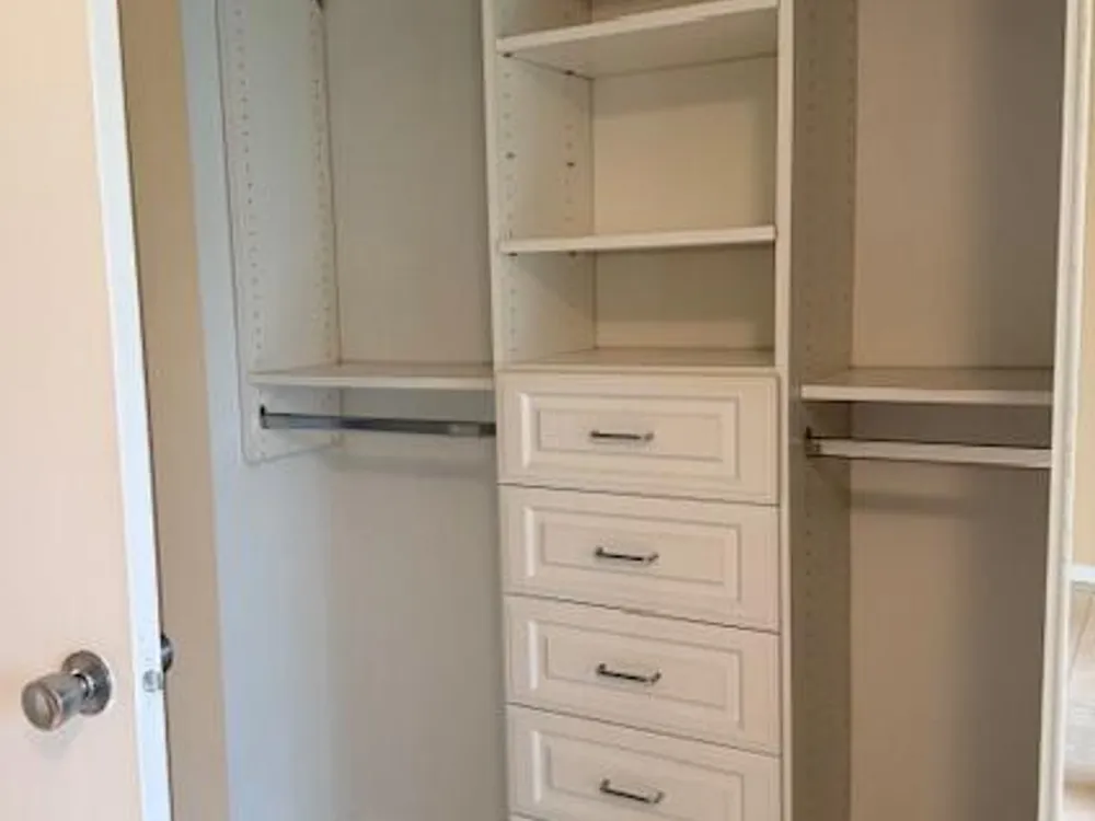 - Built-in Shelving, Closet Cabinetry, Entry Level Living Area, Pantry, Blinds, Drapes, Primary Downstairs, Storm Shutters