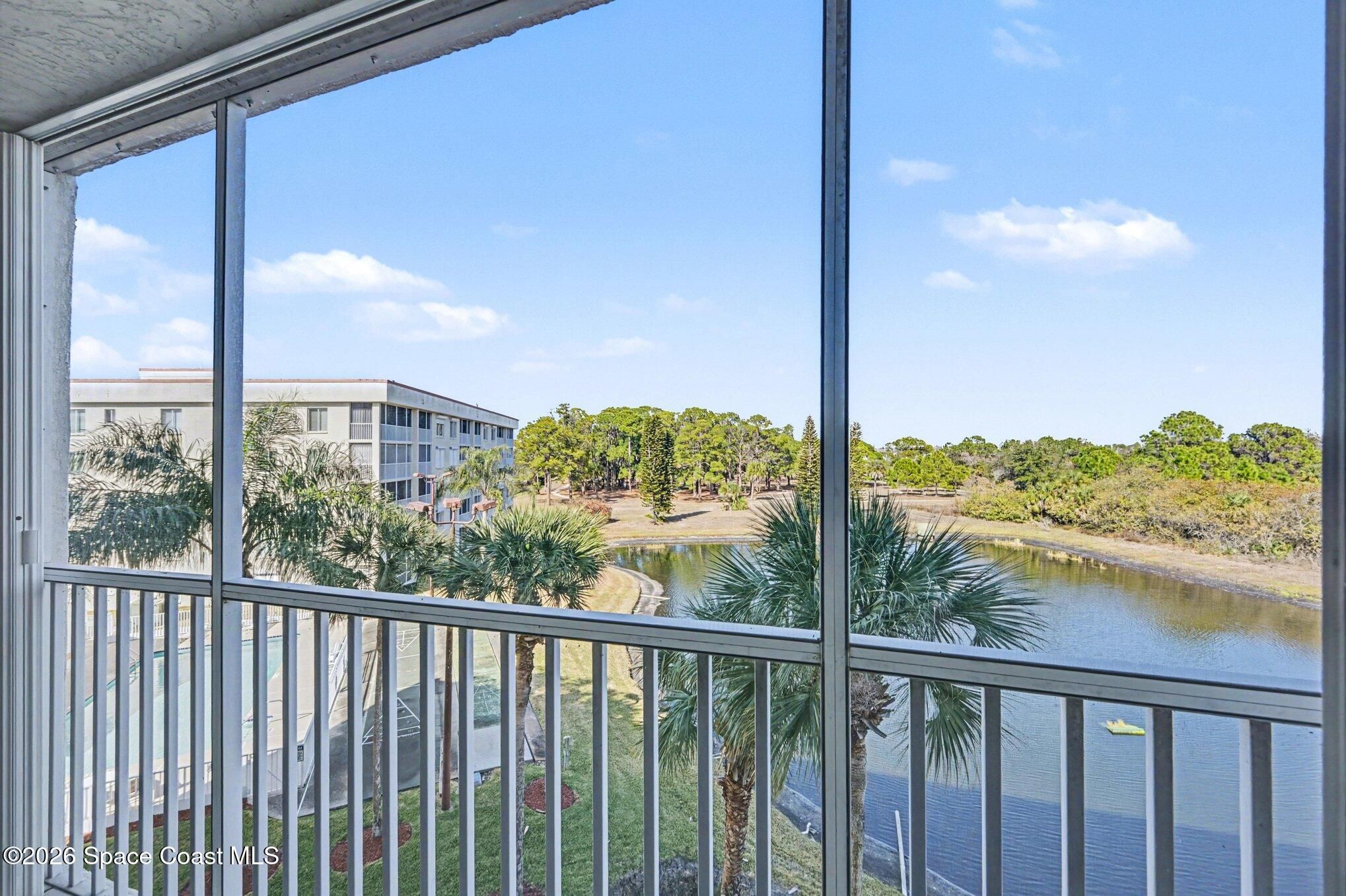 BRAND NEW LISTING! Enjoy peaceful waterfront views from this beautifully maintained 4th-floor 55+ condo, perfectly positioned within a serene, park-like community. This inviting residence features 2 bedrooms, 2 full baths and a 1-car garage, offering both comfort and everyday convenience. Wake up to tranquil water views and embrace a relaxed coastal lifestyle just minutes from Port Canaveral, vibrant Viera, the Space Coast Beaches and easy access to Orlando. Whether you're dining, shopping, cruising, or catching a rocket launch, everything is within reach. The HOA provides exceptional value, including water, internet/WiFi and exterior building insurance, giving you added peace of mind. Milestone inspections are complete and the elevators have been updated—making this a smart and secure choice. Residents enjoy a welcoming clubhouse with a kitchen, library, and exercise room—ideal for social gatherings and maintaining an active lifestyle. This is waterfront living made easy!