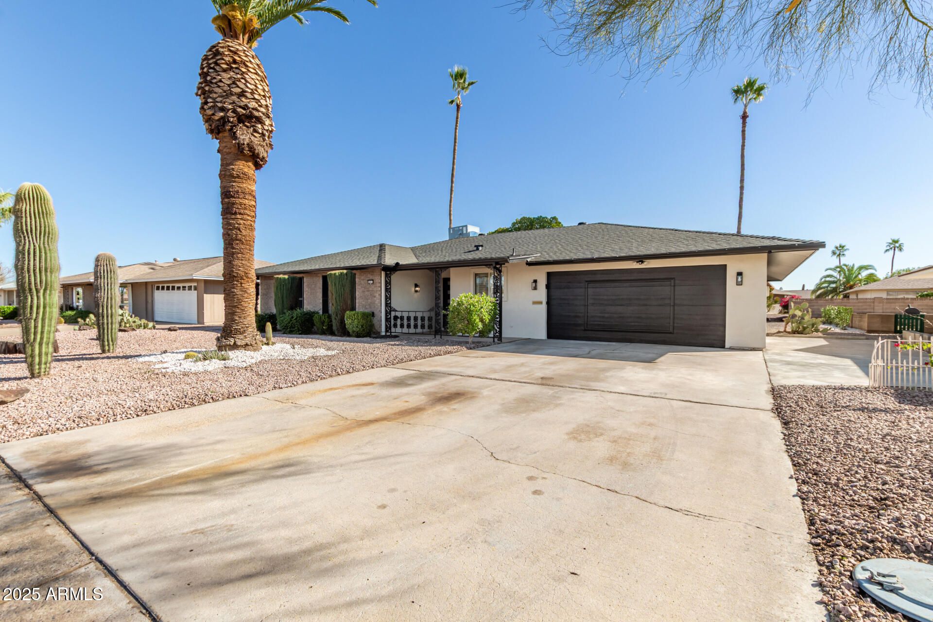 Beautifully remodeled 3-bedroom, 2-bath home in Sun City. Recent upgrades include: • Newer AC and kitchen (2022) whit stainless appliances. Washer, dryer and freezer are included • NEW ROOF and new foam stucco exterior. • New entry door and energy-efficient dual-pane windows • Fully updated bathrooms • New flooring and baseboards throughout • Popcorn ceilings removed and replaced with modern texture • Interior repainted with premium paint; exterior freshly painted • New ceiling fans and updated lighting • Spacious walk-in closets Epoxy garage flooring Step outside to a generous backyard featuring a large covered patio and easy-care turf, ideal for relaxing or entertaining year-round. This open floor plan home offers a 2-car garage plus additional front parking, ideal for guests. Conveniently located just minutes from Loop 101 and State Farm Stadium, providing easy access while maintaining a peaceful community setting. Enjoy the added benefit of a climate-controlled workshop and dedicated golf cart parking, perfect for an active Sun City lifestyle. The home has been completely remodeled with quality upgrades designed for comfort and low-maintenance living. Residents enjoy Sun City's renowned 55+ amenities, including 8 recreation centers, 11 golf courses, pickleball, bowling, fitness centers, clubs, and endless social.