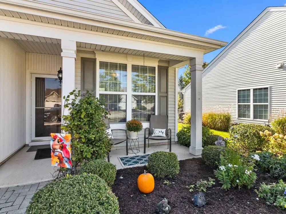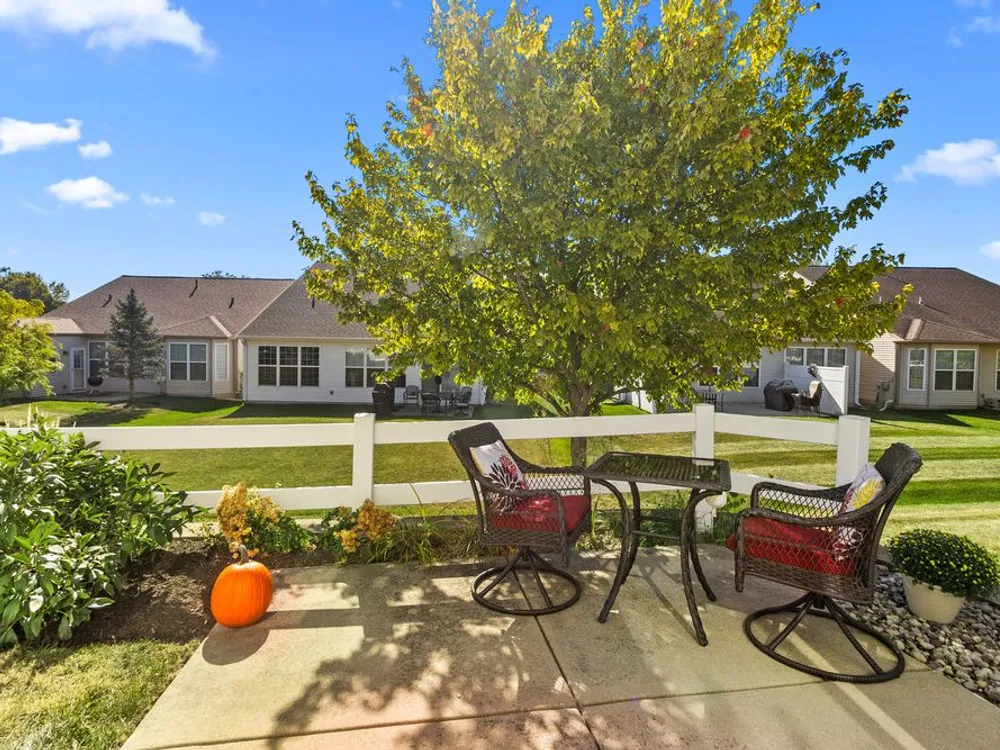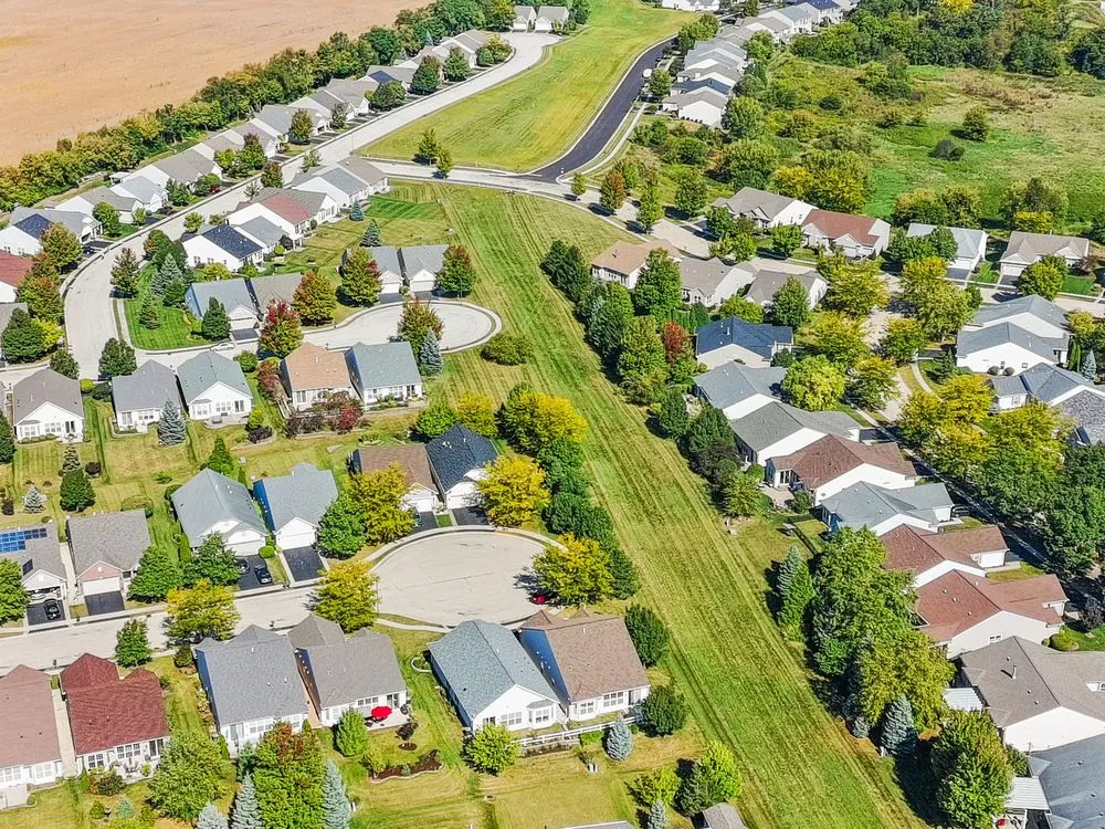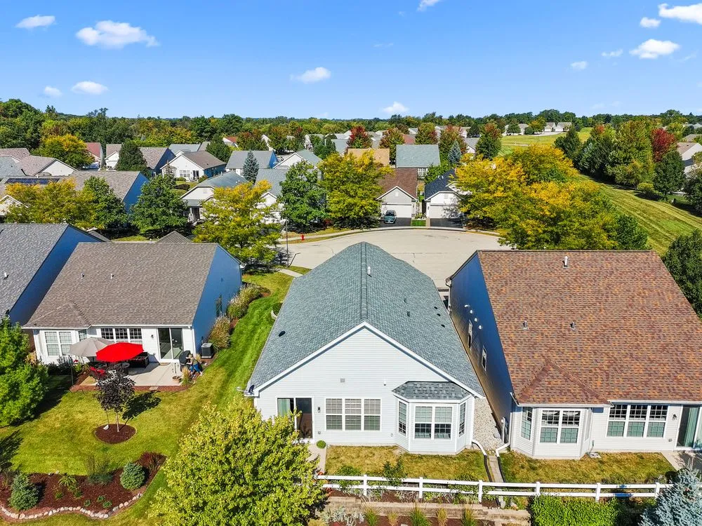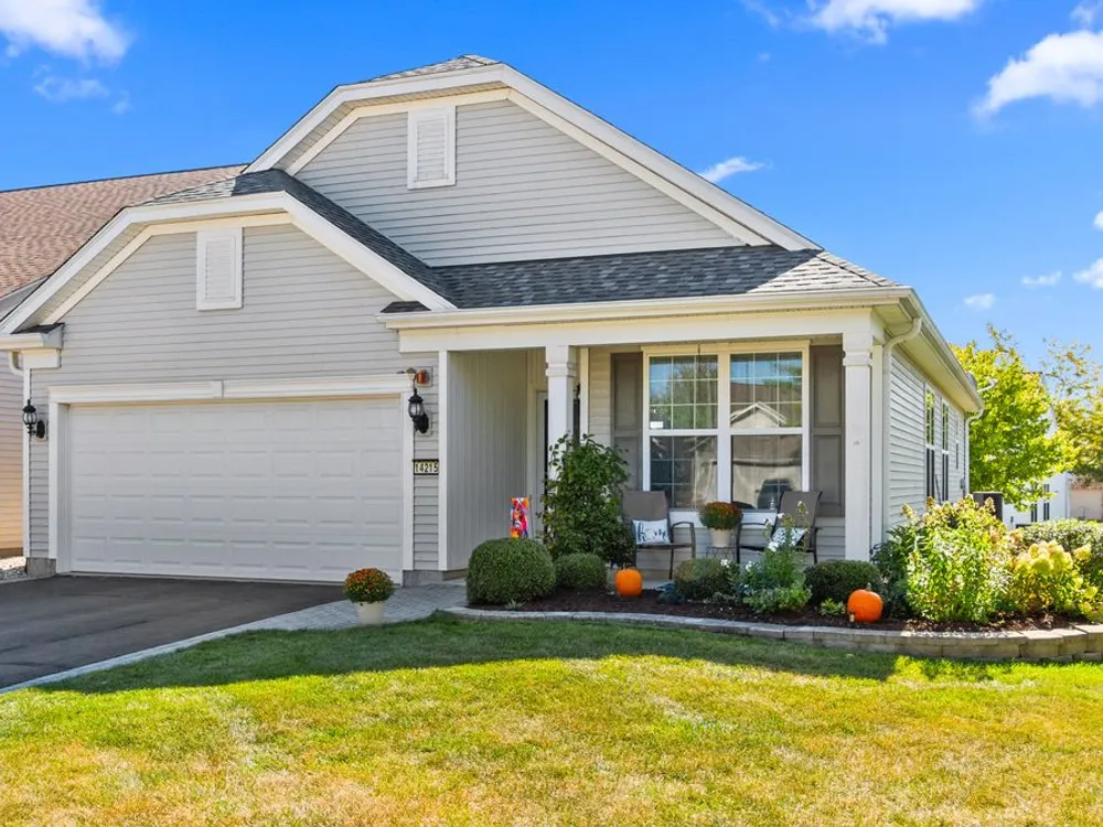 Welcome to this roomy Potomac nestled on a peaceful, quiet cul-de-sac location in the Midwest's premier 55+ community. This well-maintained home features 2 bedrooms, 2 full bathrooms, and den with transom & French door. This den provides flexibility & could also be used as an office, or craft/hobby room. The open concept living space in the combo living room/dining room, as well as a family room and eat in kitchen with island & stainless-steel appliances are great spaces for entertaining. The gleaming engineered wood floors are easy care. A new roof, replaced in October 2024 offers peace of mind, while the paver ribbons and paver walkway add charm and curb appeal. Other recent updates include can lights, new light fixtures, blinds and curtains in living and dining room, new elongated toilets, new microwave, new refrigerator, new tankless water heater and dishwasher. Other amenities: windows with wood trim sills, primary bedroom has extra storage in the custom window seat and built in linen closet, furnace is equipped with an April air humidifier. Garage includes cabinets for storage and pull-down stairs for easy access to the attic. Sit outside on the covered front porch or patio in the backyard surrounded by perennial flowers. Over 40 clubs, golf course, fishing lake, pickleball, tennis, and bocce ball. The walking and biking trails throughout this scenic community along with the outdoor concerts, make spending time outdoors a pleasure. Conveniently close to shopping, dining, medical facilities and interstate access. Don't miss out, schedule your private showing today!