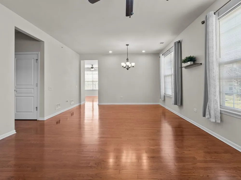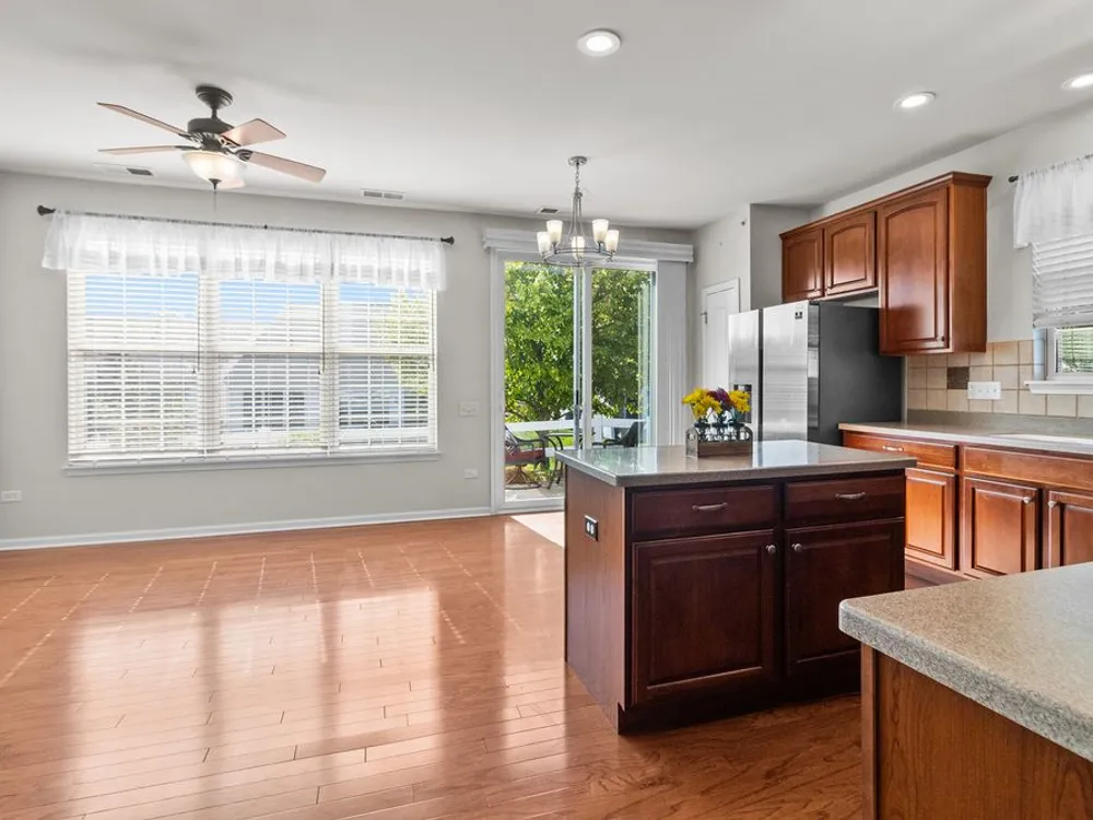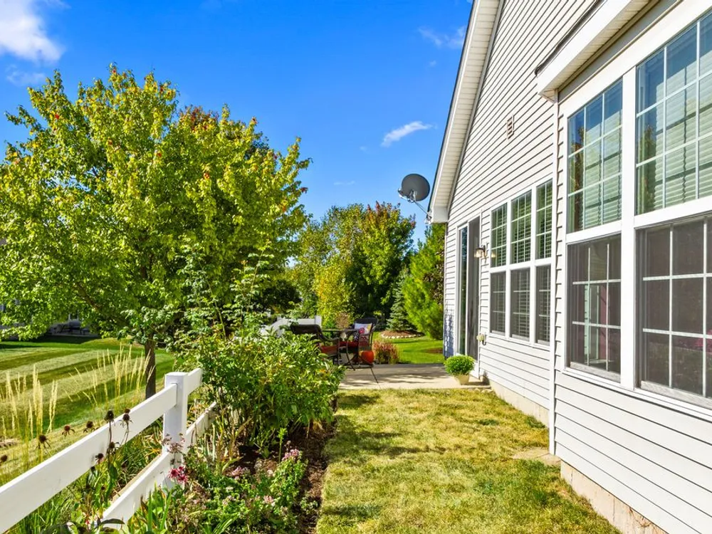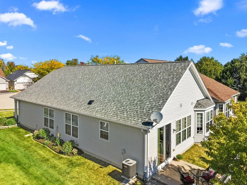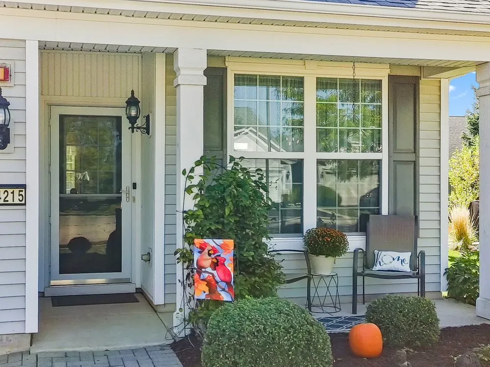 Welcome to this roomy Potomac nestled on a peaceful, quiet cul-de-sac location in the Midwest's premier 55+ community. This well-maintained home features 2 bedrooms, 2 full bathrooms, and den with transom & French door. This den provides flexibility & could also be used as an office, or craft/hobby room. The open concept living space in the combo living room/dining room, as well as a family room and eat in kitchen with island & stainless-steel appliances are great spaces for entertaining. The gleaming engineered wood floors are easy care. A new roof, replaced in October 2024 offers peace of mind, while the paver ribbons and paver walkway add charm and curb appeal. Other recent updates include can lights, new light fixtures, blinds and curtains in living and dining room, new elongated toilets, new microwave, new refrigerator, new tankless water heater and dishwasher. Other amenities: windows with wood trim sills, primary bedroom has extra storage in the custom window seat and built in linen closet, furnace is equipped with an April air humidifier. Garage includes cabinets for storage and pull-down stairs for easy access to the attic. Sit outside on the covered front porch or patio in the backyard surrounded by perennial flowers. Over 40 clubs, golf course, fishing lake, pickleball, tennis, and bocce ball. The walking and biking trails throughout this scenic community along with the outdoor concerts, make spending time outdoors a pleasure. Conveniently close to shopping, dining, medical facilities and interstate access. Don't miss out, schedule your private showing today!