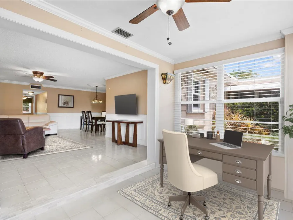 This beautiful villa-style condo, available furnished or unfurnished, offers immediate comfort and a relaxed lifestyle in a prime, sought-after location. This extremely large 1 bedroom, 2 bathroom unit provides convenient access to local amenities and entertainment.Enjoy ample space with oversized rooms and a delightful outdoor living area. The enclosed front bonus room/den offers great flexibility as an office and has a lot of beautiful natural light. Step into the beautifully renovated full and half bathrooms, featuring modern designs and high-quality finishes. You'll appreciate unique touches like a charming barn door and crown molding.