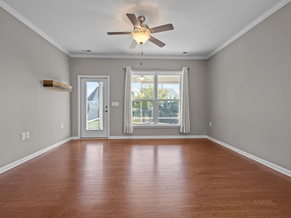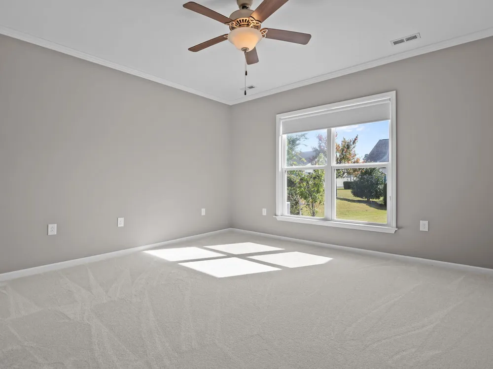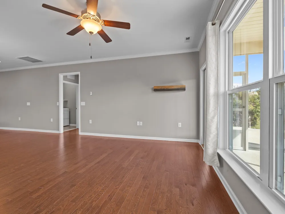 - Tub Shower, Ceiling Fan(s), Crown Molding, Granite Counters, High Ceilings, Kitchen Island, Open Floorplan, Master Downstairs, Walk-In Closet(s), Walk-In Shower