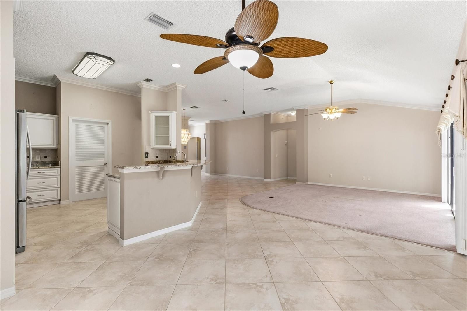 BOND PAID! New Roof 2020. New Water Heater 2023. LOCATION! LOCATION! LOCATION! This fantastic home located in The Villages FL has nice square footage so you can spread out! This home is located in The Village of Santiago. It offers 2044 sqft in the home plus a VERY LARGE Florida Room (Glass Windows) that has it's own Mini Split A/C - Heat. The Florida Room square footage is NOT in the property appraiser square footage of 2044. There are 3 Bedrooms, 2 Bathrooms & 2 Car Garage. The home is set up as a great entertaining area with open living area concept with the Living Room / Dining Room / Kitchen and Dinette all together. The Kitchen has stainless steel appliances, large amount of cabinets plus granite countertops. The Laundry Room is off of the kitchen leading to the garage. The laundry room has additional area that can hold a desk or other storage as desired. The Bedrooms are all large with their own walk-in closet. Windows in Primary Bedroom & 2nd Bedroom have been replaced in the last few years. The Primary Bathroom has 2 Sinks, Updated Shower and separate Toilet area. This home is located close to golf courses, swimming pools, polo field, shopping, restaurants and medical facilities. It located between Lake Sumter Landing and Spanish Springs Town Square. This home is ready for you to become a Villager and enjoy The Villages lifestyle! Bond Paid!
