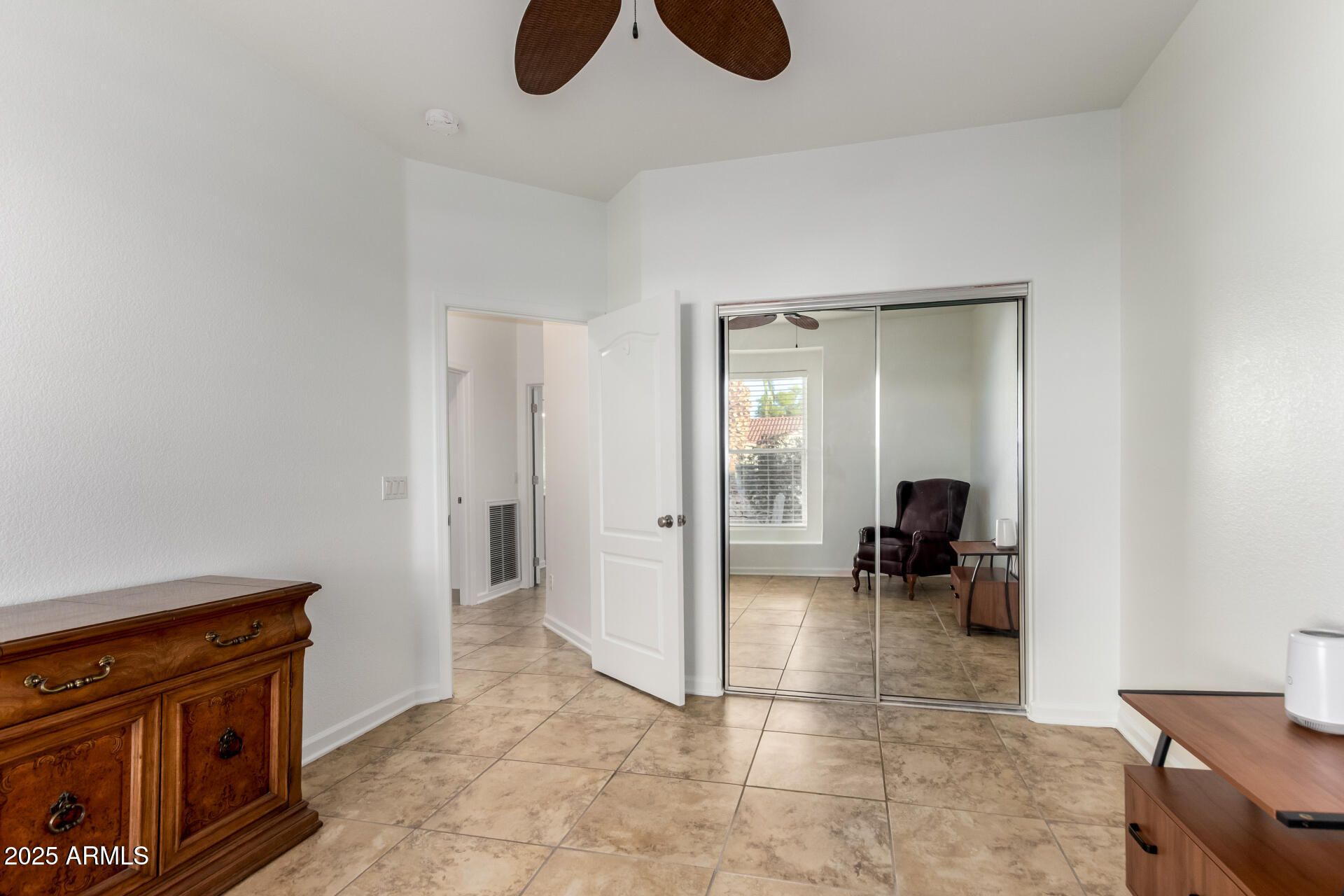 Welcome to Springfield, a sought-after 55+ gated community offering resort-style living! This inviting 2-bedroom plus den home features beautiful desert landscaping, a 2-car garage with built-in cabinets, and a welcoming front paver patio. Inside, discover a bright & inviting layout with fresh interior paint, ceiling fans and tile flooring throughout. The formal living room and open family/dining area offer ideal spaces for relaxing or entertaining. The kitchen features granite counters, SS appliances, and ample wood cabinetry. The primary suite provides comfort & convenience with dual-sinks, step-in tub, & walk-in closet. Enjoy quiet mornings or evening breezes on the covered patio with a tranquil fountain.. Residents enjoy resort-style amenities including pools, fitness center, library, golf, tennis & pickleball, offering a relaxed, well-balanced lifestyle.