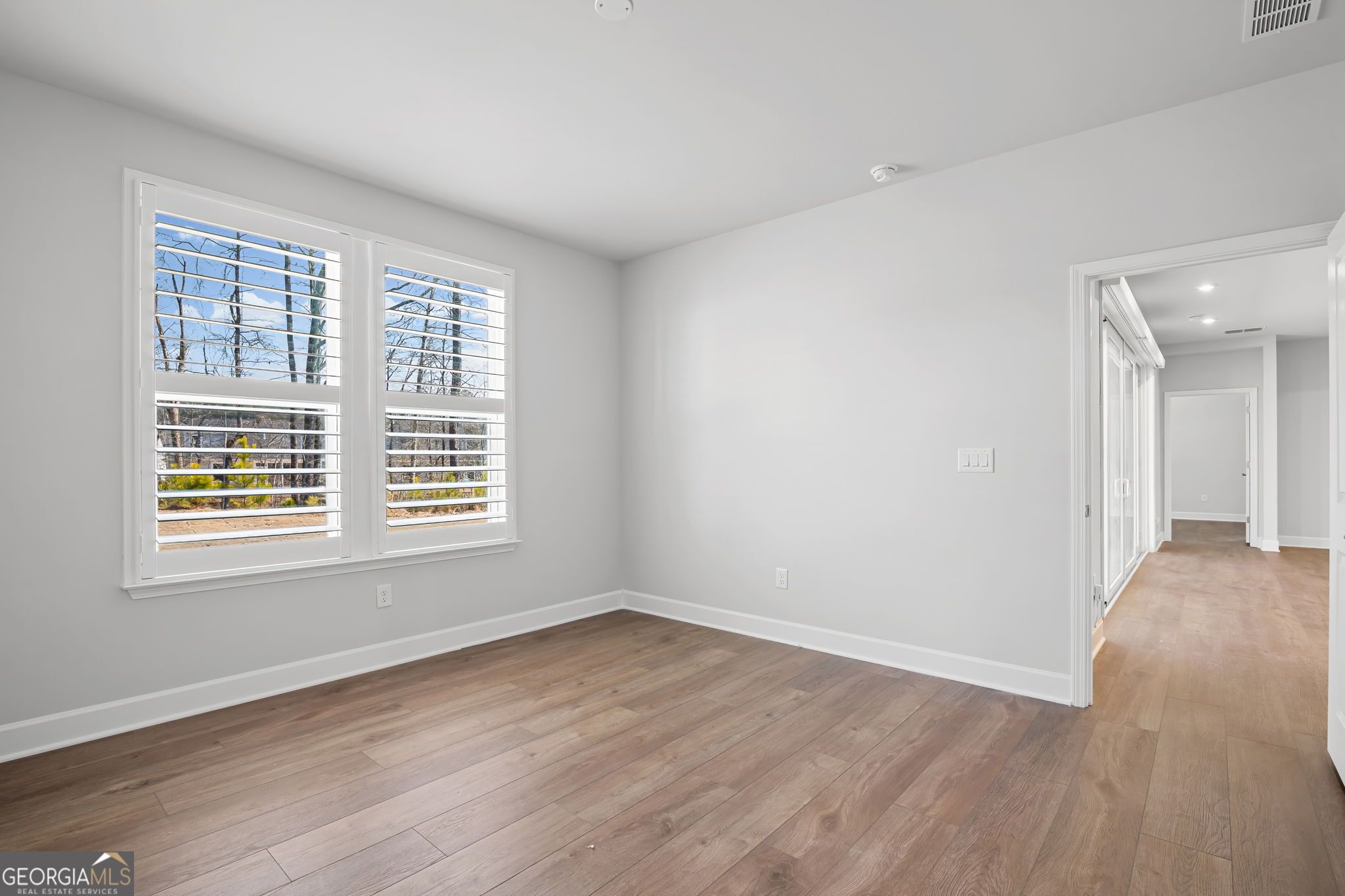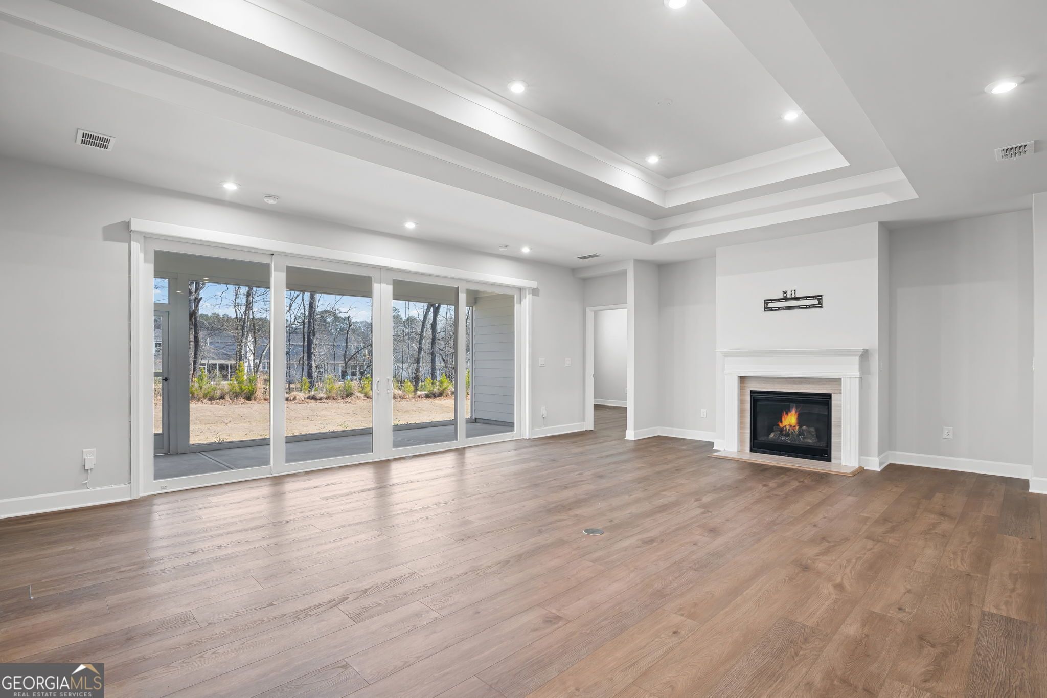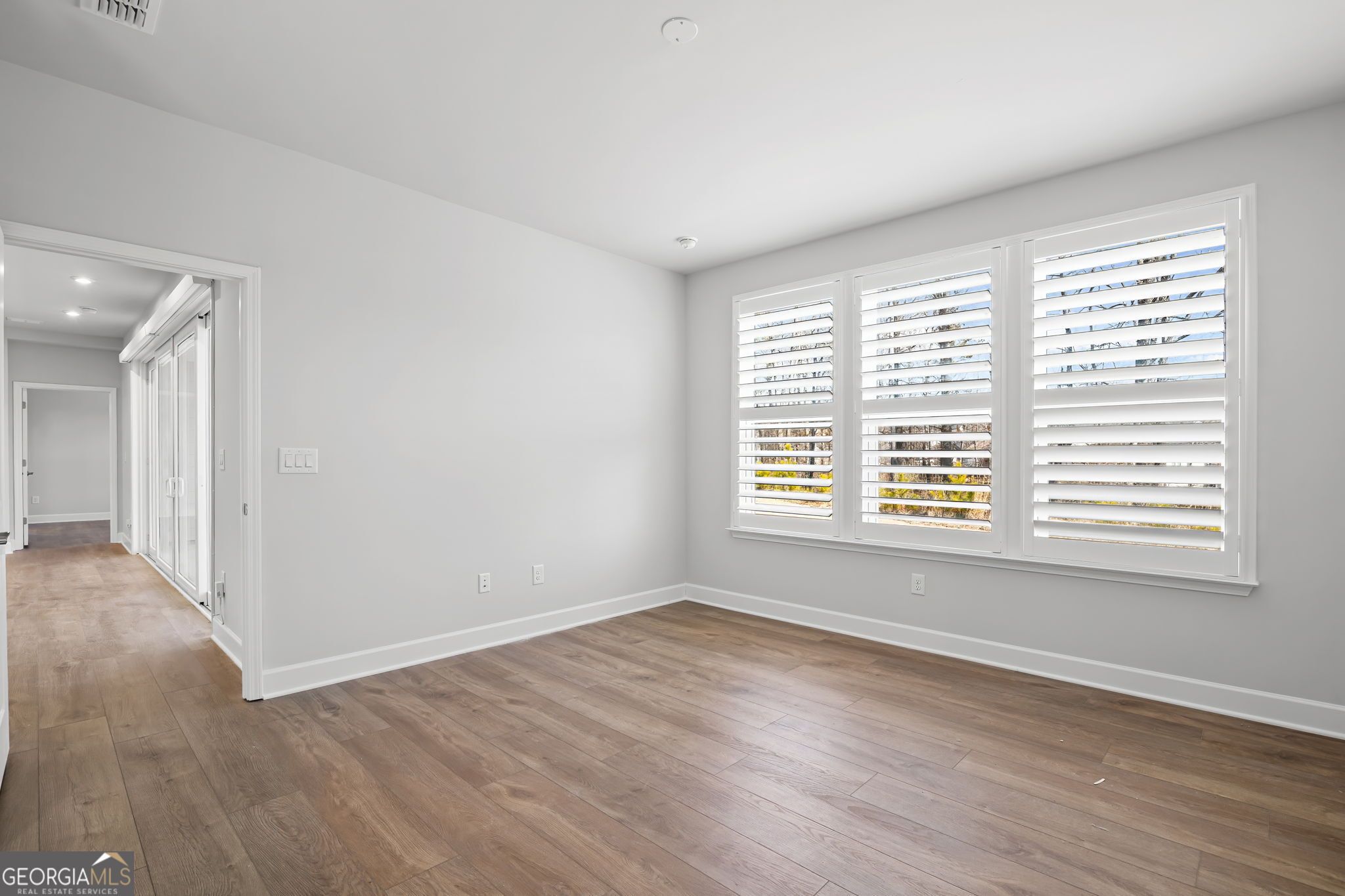 Welcome to Sun City Peachtree, Griffin's premier 55+ active adult community! This nearly new, beautifully upgraded home built in 2025 offers 2 bedrooms, 2.5 baths and approximately 2,152 sq ft of thoughtfully designed living space. Gently lived in for only a few months, this home shows like brand new and is truly move-in ready. The gourmet kitchen is the heart of the home, featuring stainless steel appliances, solid surface countertops, and an open design perfect for entertaining. Luxury LVT flooring flows throughout the main living areas with no carpet, creating a seamless and low maintenance lifestyle. The spacious family room offers a cozy gas-starter fireplace and sliding glass doors that open to the screened lanai, blending indoor and outdoor living beautifully. The private owner's suite includes double vanities, a large walk-in shower, and a generous walk-in closet. A dedicated officelex room provides the perfect space for hobbies or working from home. Plantation shutters throughout add timeless style and privacy. Enjoy a peaceful, private backyard and an extended garage with an additional 4 feet of depth, offering space for a golf cart or up to three vehicles. Relax on the screened lanai and take advantage of all the resort-style amenities Sun City Peachtree has to offer. Experience like-new construction without the wait in one of Griffin's most sought-after active adult communities. The Plan is the "STARDOM".
