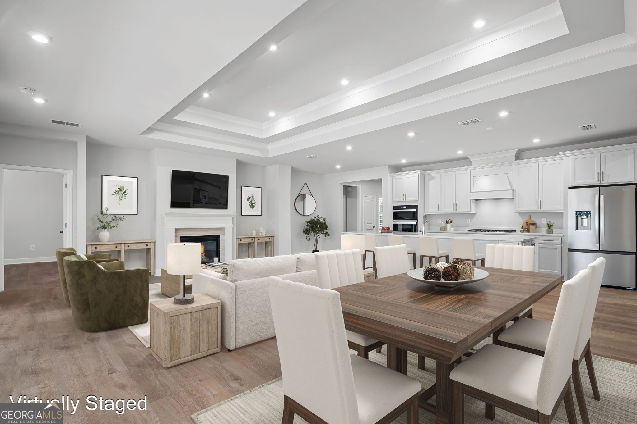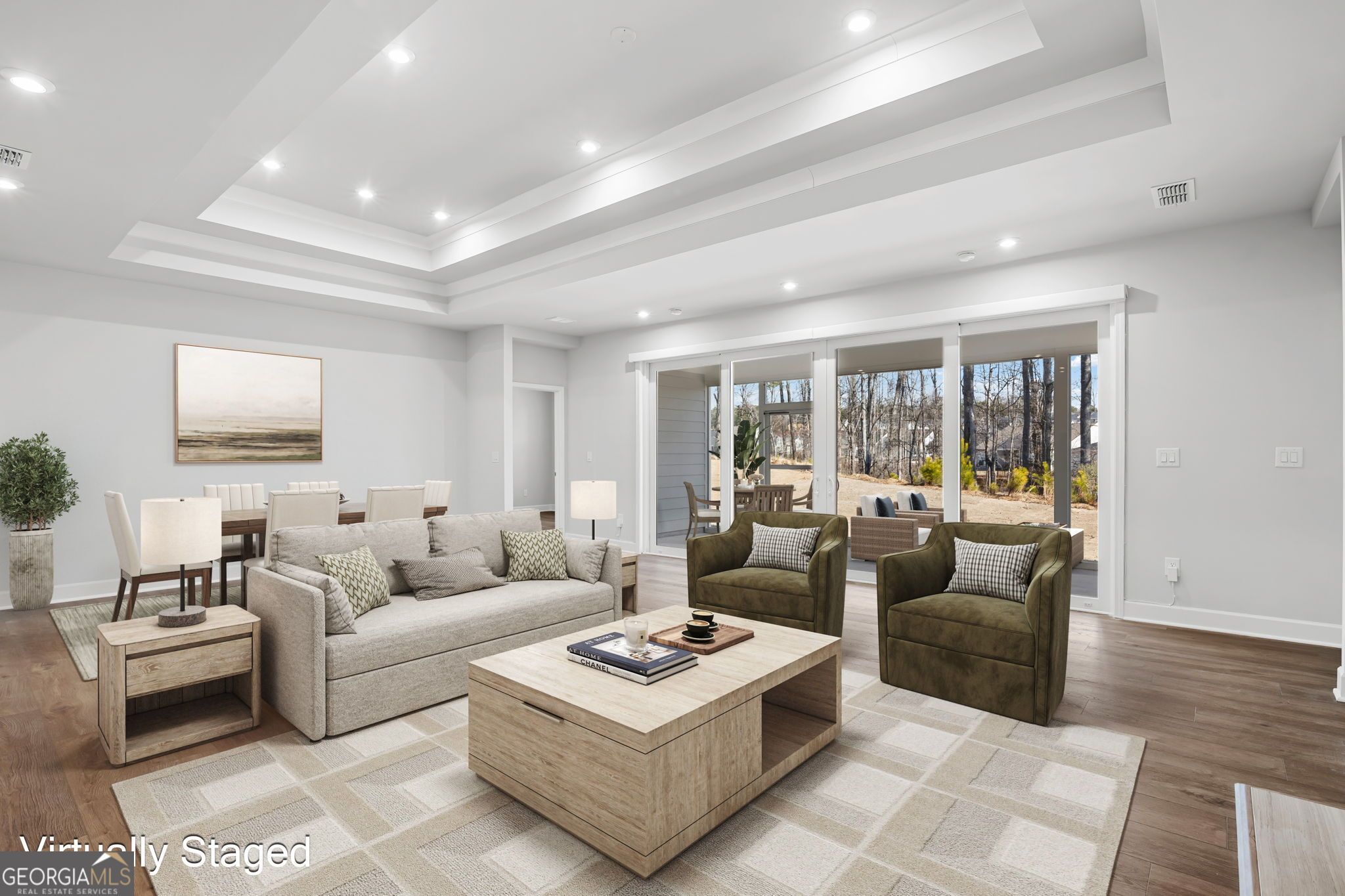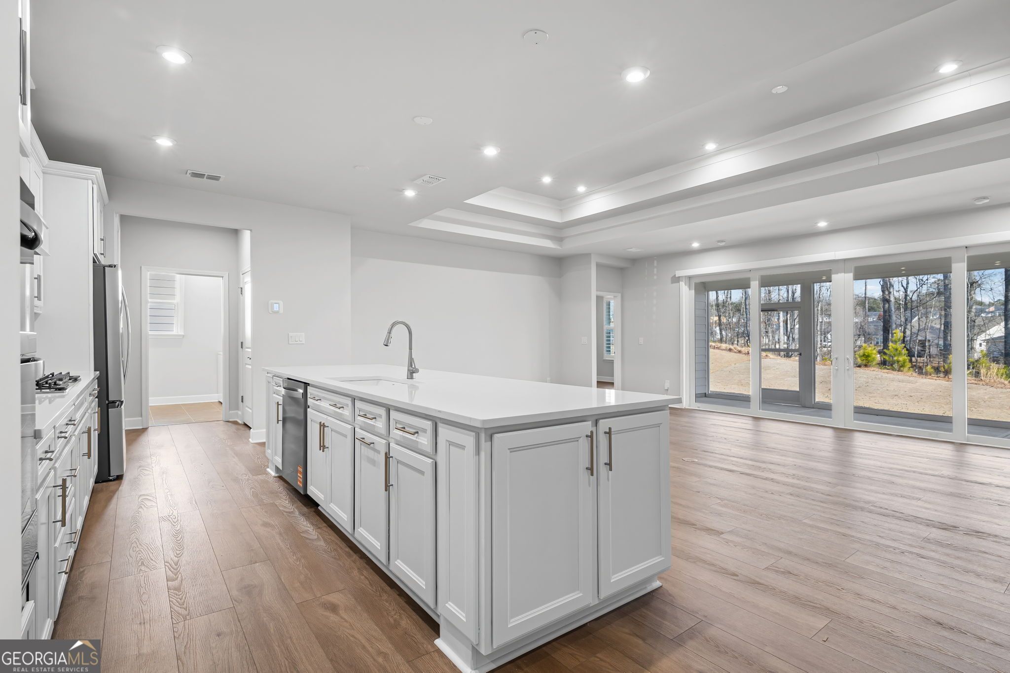 Welcome to Sun City Peachtree, Griffin's premier 55+ active adult community! This nearly new, beautifully upgraded home built in 2025 offers 2 bedrooms, 2.5 baths and approximately 2,152 sq ft of thoughtfully designed living space. Gently lived in for only a few months, this home shows like brand new and is truly move-in ready. The gourmet kitchen is the heart of the home, featuring stainless steel appliances, solid surface countertops, and an open design perfect for entertaining. Luxury LVT flooring flows throughout the main living areas with no carpet, creating a seamless and low maintenance lifestyle. The spacious family room offers a cozy gas-starter fireplace and sliding glass doors that open to the screened lanai, blending indoor and outdoor living beautifully. The private owner's suite includes double vanities, a large walk-in shower, and a generous walk-in closet. A dedicated officelex room provides the perfect space for hobbies or working from home. Plantation shutters throughout add timeless style and privacy. Enjoy a peaceful, private backyard and an extended garage with an additional 4 feet of depth, offering space for a golf cart or up to three vehicles. Relax on the screened lanai and take advantage of all the resort-style amenities Sun City Peachtree has to offer. Experience like-new construction without the wait in one of Griffin's most sought-after active adult communities. The Plan is the "STARDOM".