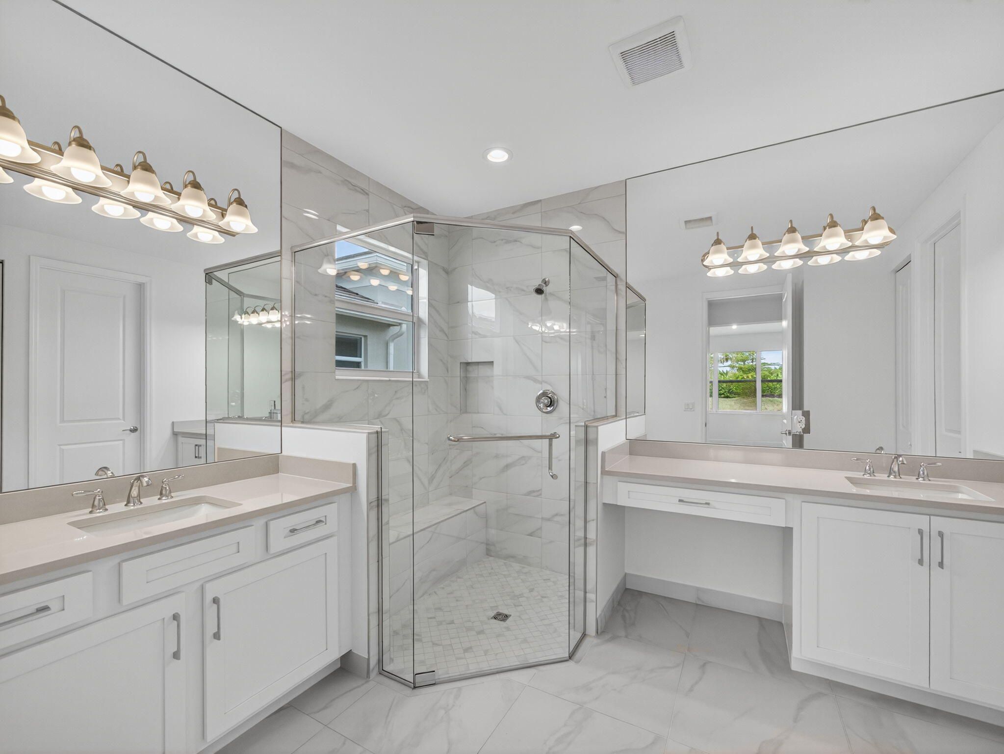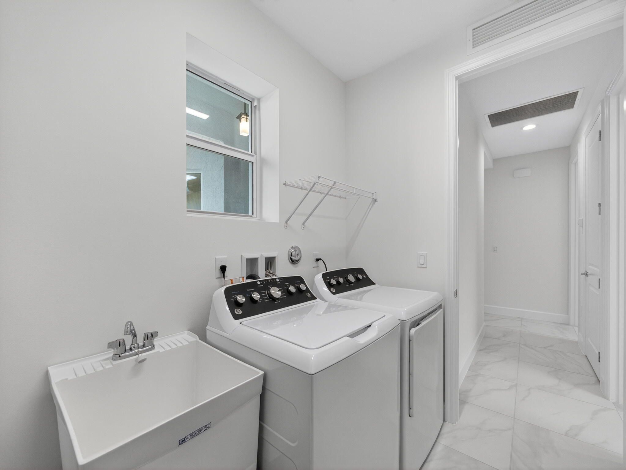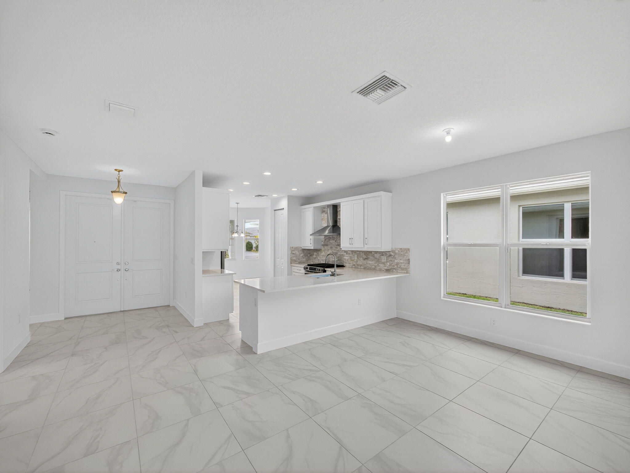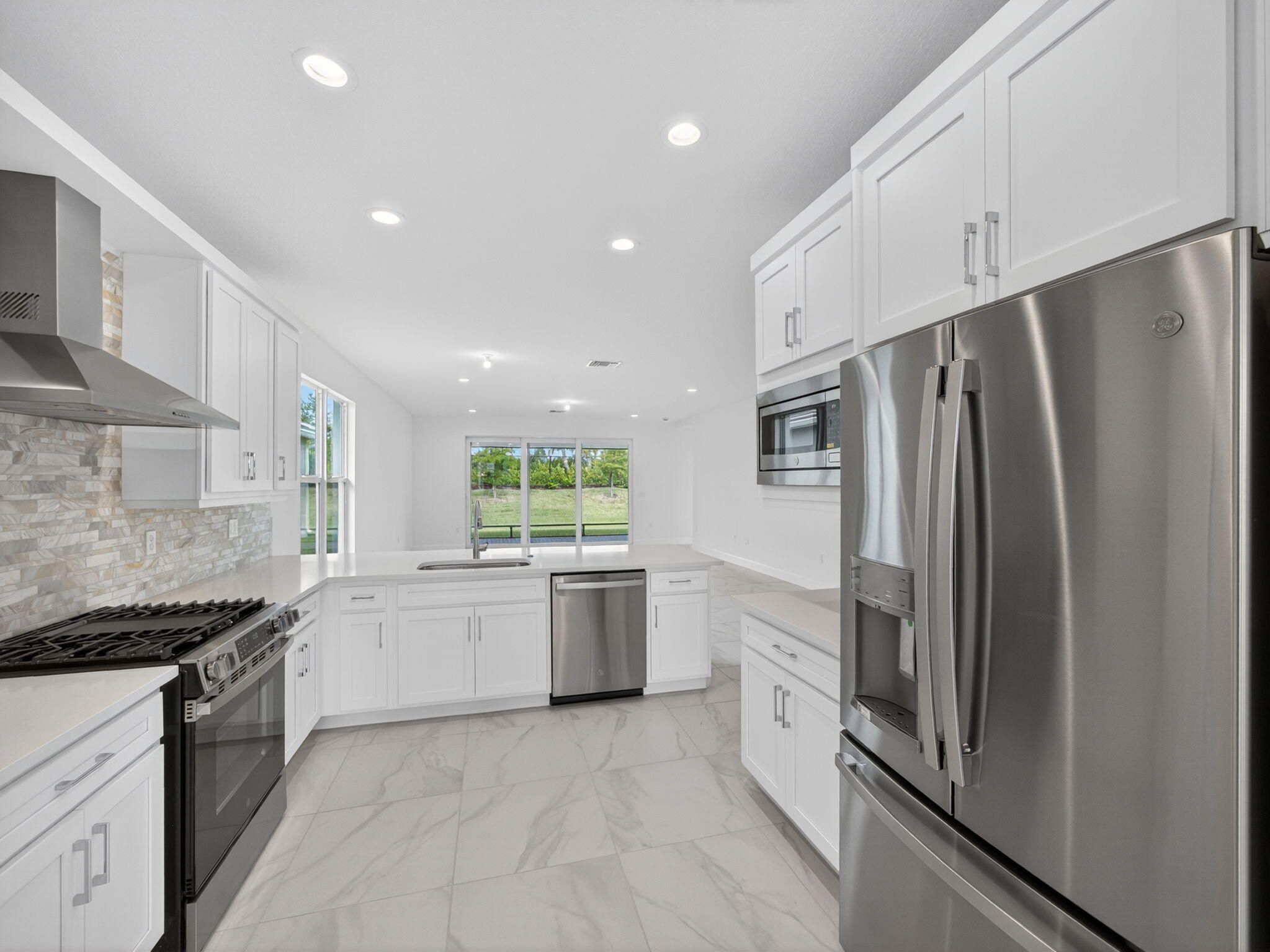 Valencia Grove at Riverland is where you'll find Port St. Lucie's best 55+ lifestyle with a million ways to have fun including a beautiful 34,000-square foot Clubhouse with resort-style amenities. This Lucia floorplan includes private landscaped views and an open floor plan with contemporary porcelain 24''x24'' matte tile flooring throughout all main living areas and den. All bedrooms include plush carpet. The home features high end finishes including impact glass windows, GE gas appliances, tile roof, and recessed LED lighting. The spacious kitchen includes quartz countertops with a designer decorative tile backsplash, painted white maple shaker style cabinets with soft close doors and drawers, and stainless-steel appliances including a chimney style hood.