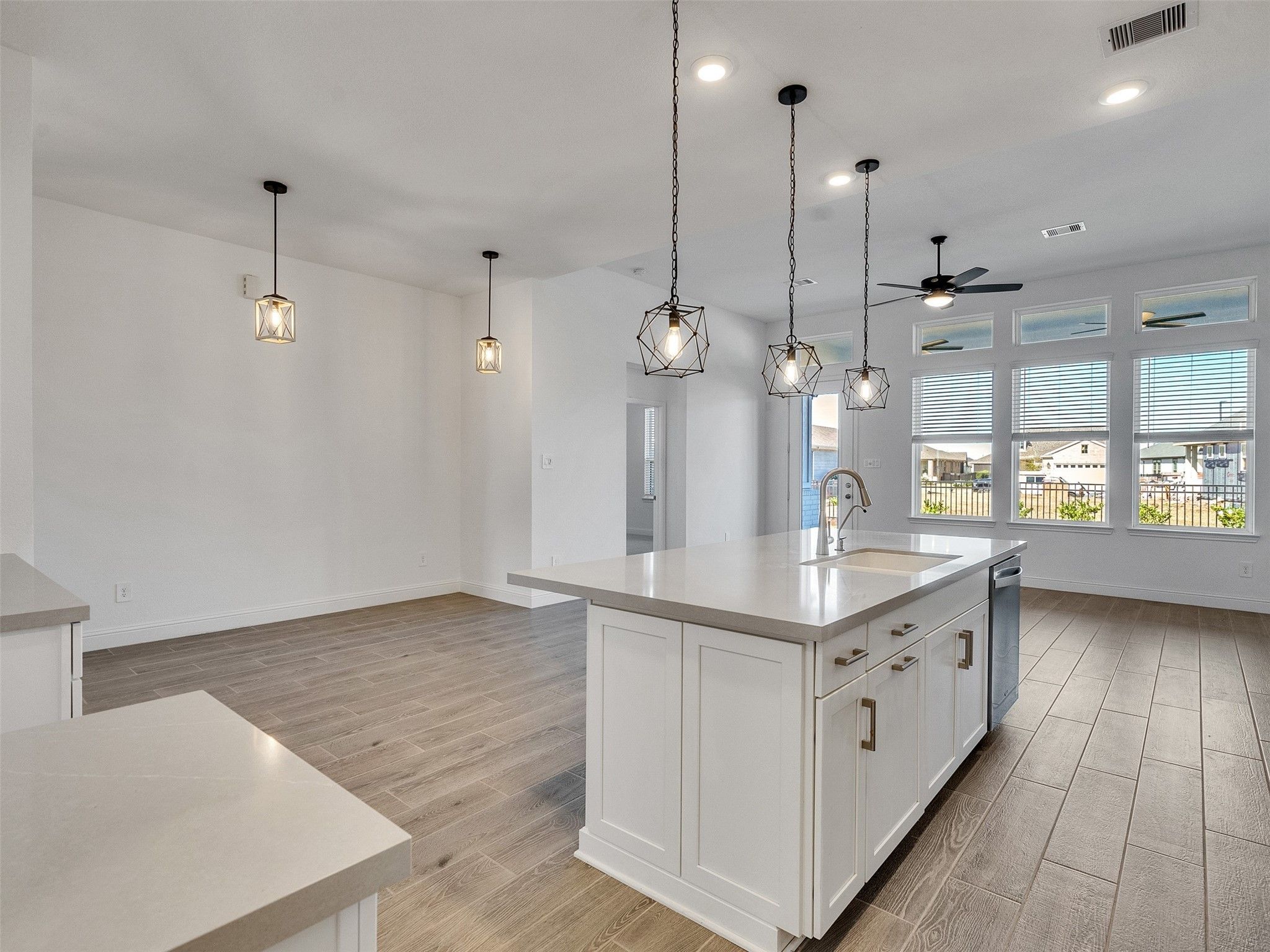 - Double Vanity, Kitchen Island, Kitchen/Family Room Combo, Quartz Countertops, Soaking Tub, Separate Shower, Vaulted Ceiling(s), Walk-In Pantry, Window Treatments, Ceiling Fan(s), Kitchen/Dining Combo, Programmable Thermostat