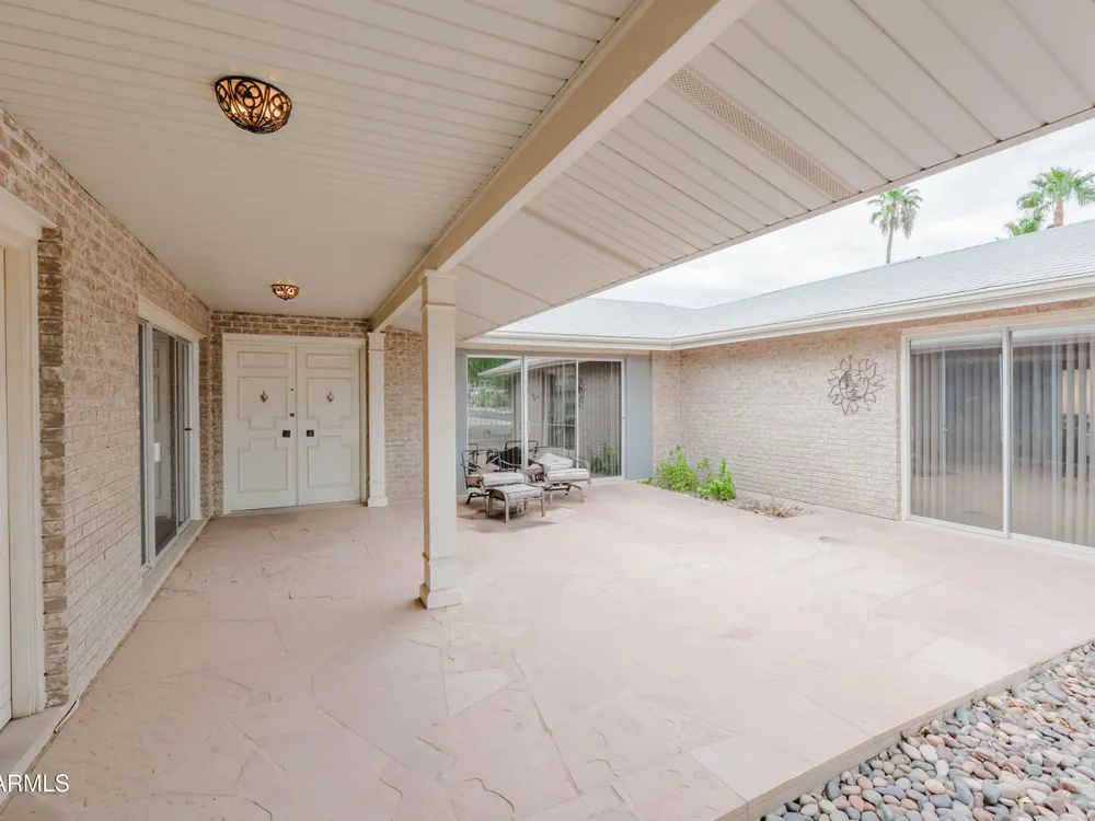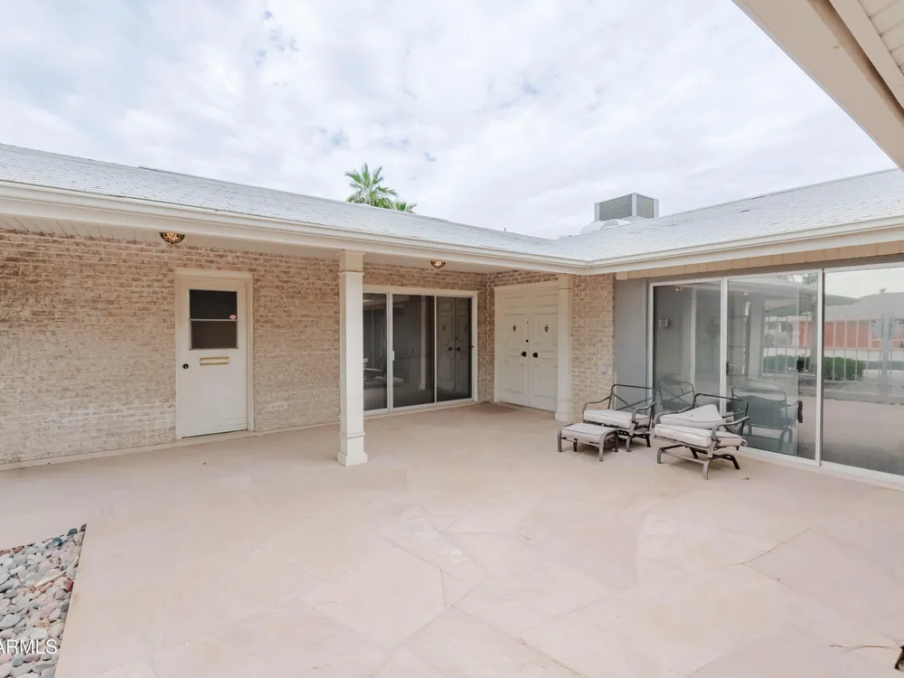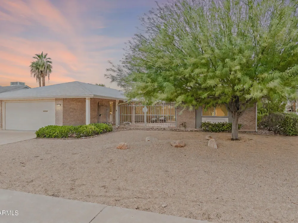 Welcome to one of the largest corner lot homes, complete with a charming front courtyard perfect for morning coffee or evening chats. Inside, you'll find a well-designed layout featuring 2 spacious bedrooms with en-suite bathrooms, plus a versatile den/office with built-in shelving—easily convertible into a 3rd bedroom. Both the primary suite and living area open to the courtyard, offering seamless indoor-outdoor living. Ideal for entertaining, the home includes 2 distinct living areas and a bright kitchen with domed lighting, complemented by fruit trees in the backyard for fresh juice mornings. Beyond the home, enjoy the perks of location: you're just steps from the golf course, close to Banner Boswell Medical Center, and have access to top-tier recreation centers featuring pools, fitnes facilities, hobby studios, woodworking shops, billiards, ballrooms, and countless clubs. This home offers more than just spaceit offers a lifestyle full of comfort, community, and potential. Come see it for yourself!