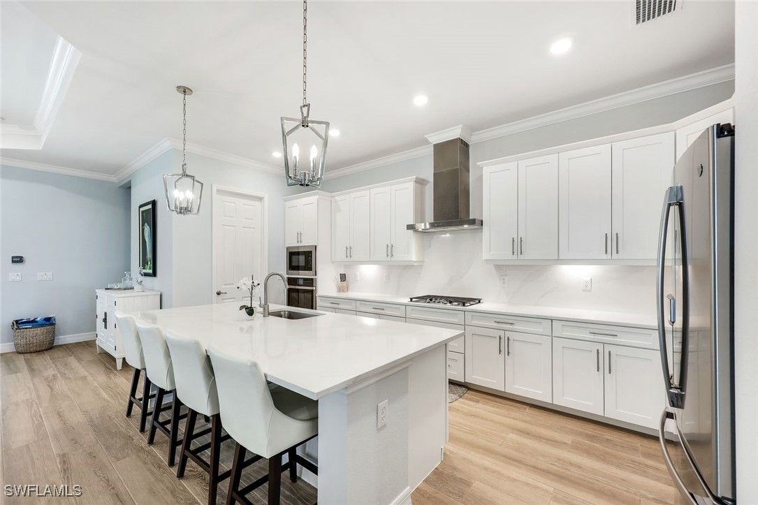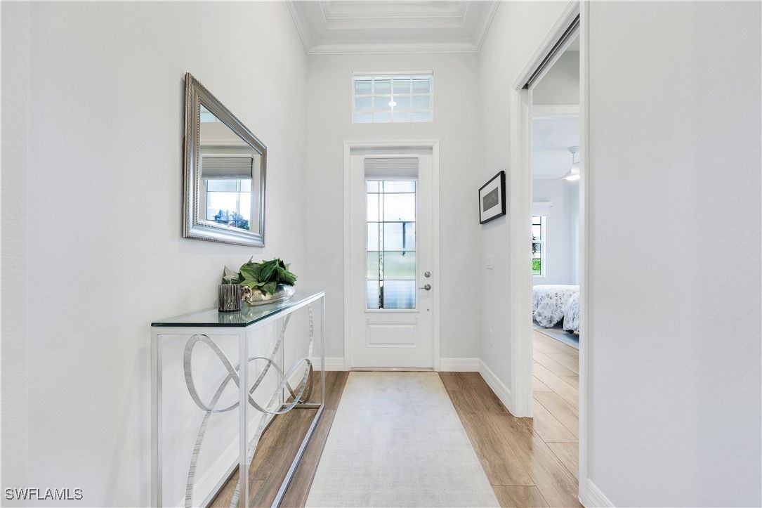 This welcoming 4-bedroom single-family pool home in Vista at WildBlue offers modern elegance, thoughtful upgrades, and the rare tranquility of a private preserve view. Designed for both comfort and style, the residence features wood-look tile flooring throughout and an open, contemporary layout that fills the home with natural light. Sliding doors seamlessly connect the main living area to the expansive lanai, where a custom pool and generous outdoor living space overlook the peaceful preserve—creating an ideal setting for entertaining or unwinding in total privacy. The gourmet kitchen serves as the heart of the home, boasting premium cabinetry, an oversized island perfect for gatherings, and a gas stove for elevated cooking. The luxurious primary suite enhances daily living with a spa-inspired bathroom and a beautifully designed custom closet offering exceptional organization. Additional enhancements include a whole-house generator, electric hurricane screens, impact-resistant windows and doors, upgraded lighting, smart-home features, enhanced insulation, and a pristine, climate-controlled epoxy-finished garage. Residents of WildBlue enjoy access to world-class amenities, including resort and lap pools, a full-service spa, state-of-the-art fitness and aerobics centers, tennis and pickleball, indoor and outdoor dining, boating, kayaking, miles of lake recreation, and 1,300 acres of surrounding preserve land. A perfect blend of luxury, privacy, and Southwest Florida living—this home embodies the WildBlue lifestyle at its finest.