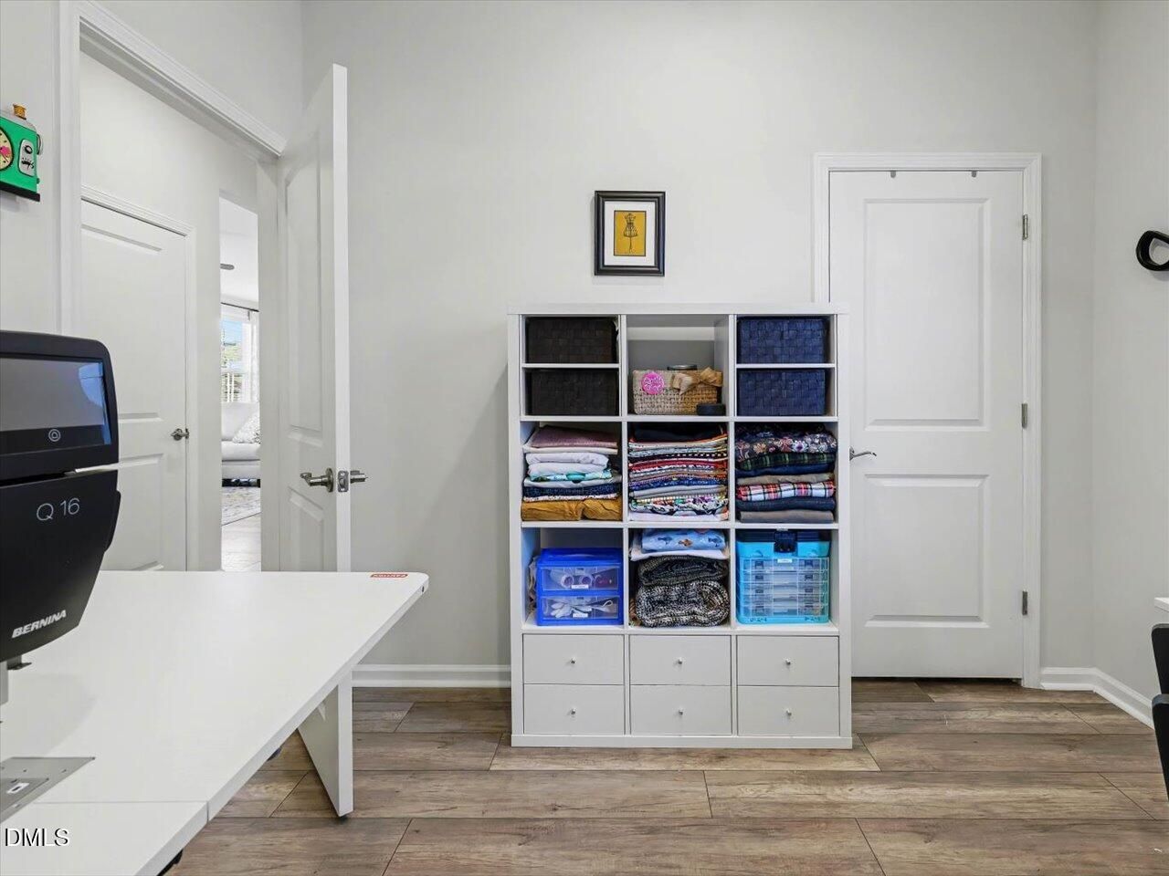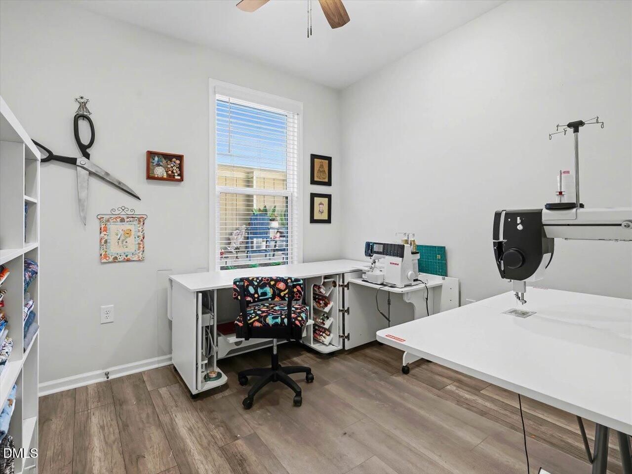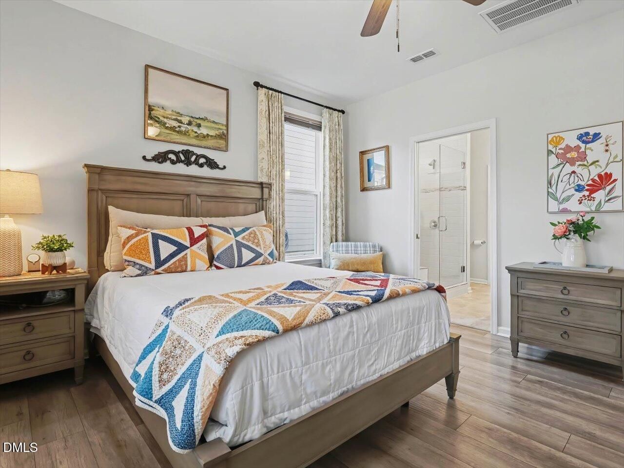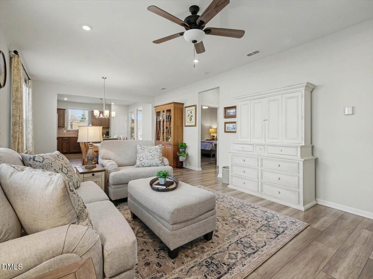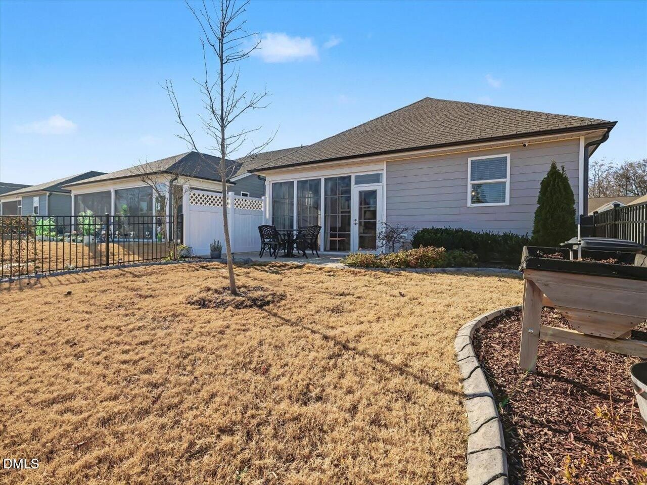 Ready for easy living that feels like you are on vacation all year long? Better than New with every design upgrade, Custom Cabinetry, Storage built ins, custom window treatments, fenced yard and more! Move in Ready home welcomes you with TALL doors & ceilings, open floor plan with family room and dining open to gourmet kitchen with beautiful warm brown linen cabinetry, stainless appliances, gas 5 burner range, oversized granite island, pantry, wide plank LVP flooring thru out. Office/Hobby room with Closet by Design built ins, guest bedroom, primary bedroom, both bedroom closets with Custom Built Shelving, 2 luxurious full baths plus laundry room all on one level living. Fantastic Four-Season Porch with EZ Breeze windows for use year-round. Enjoy the private fenced in back yard. Resort style amenities with clubhouse with indoor and outdoor pool, tennis, pickle ball, community garden, fitness, walking trails & VERY active social clubs! Cable & Internet included in HOA dues. Adult 55 Planned Community requires one owner to be at least 55 years of age. https://carolinagardens.clubexpress.com/Don't miss this beauty!