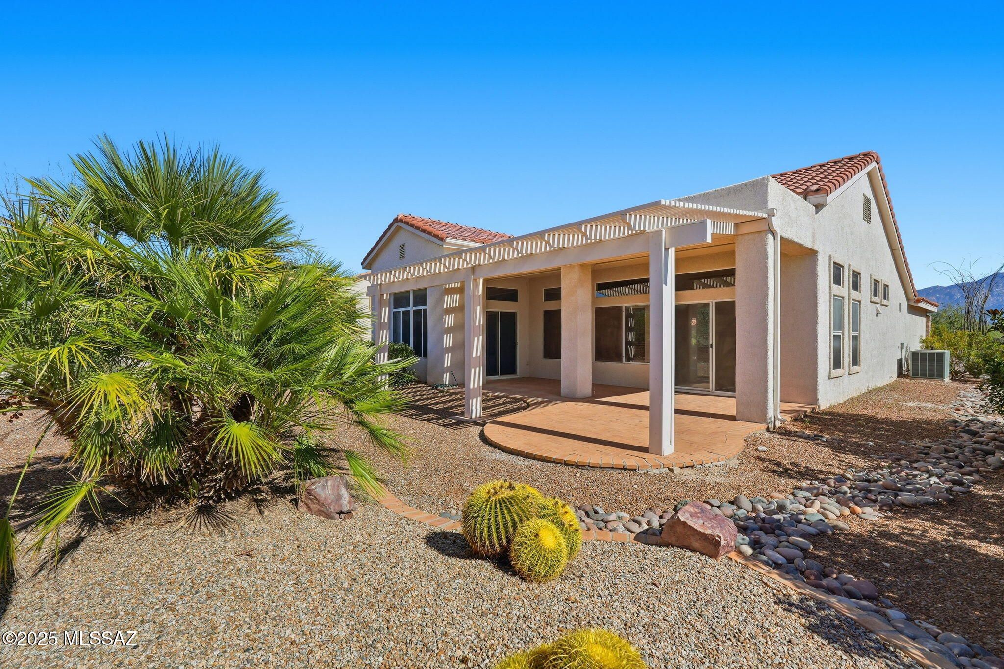 Welcome to this popular 2BD/2BA, 1,371 sq ft. Claridge model nestled in the sought-after Sun City Oro Valley 55+ active adult community. Step inside to an inviting open-concept floor plan that's perfect for entertaining or relaxing. The chef's kitchen flows seamlessly into the great room, creating a warm, welcoming space for gatherings. The spacious owner's suite offers private patio access, an ensuite bath with dual vanities, a walk-in shower, and a generous walk-in closet. The split floor plan ensures extra privacy for guests. Enjoy beautifully landscaped front and back yards, complete with an extended covered patio a perfect spot to unwind. Experience the best of desert living and all the amenities Sun City Oro Valley has to offer, including golf, pickleball, dining and more!