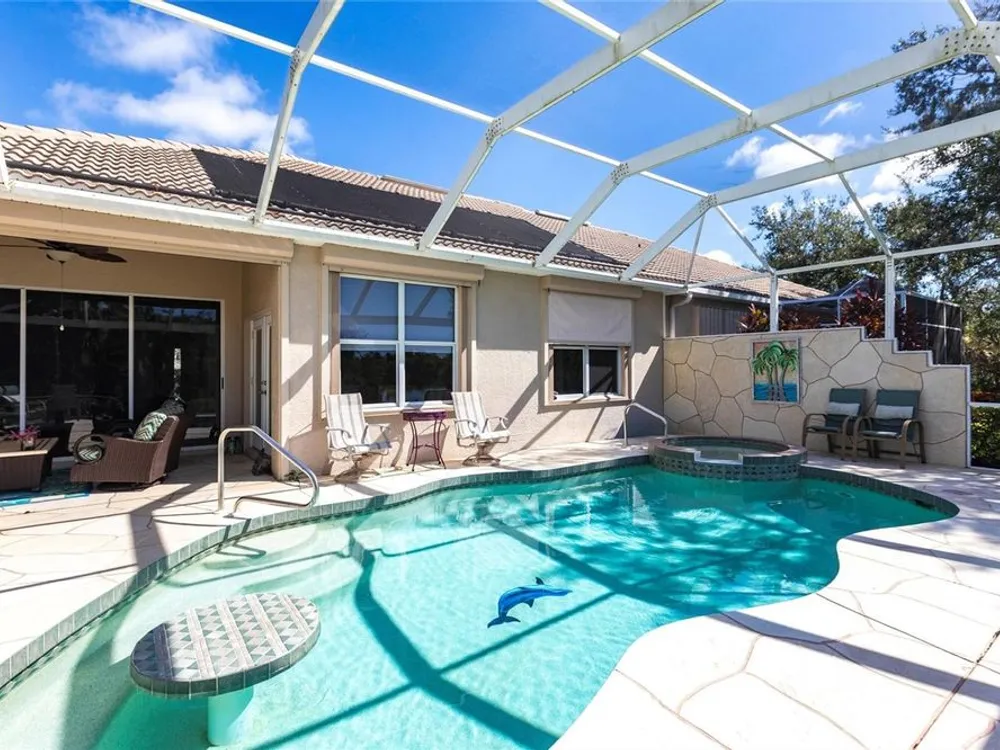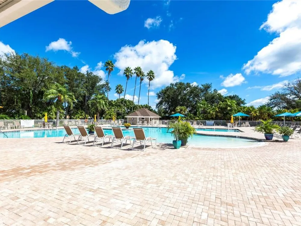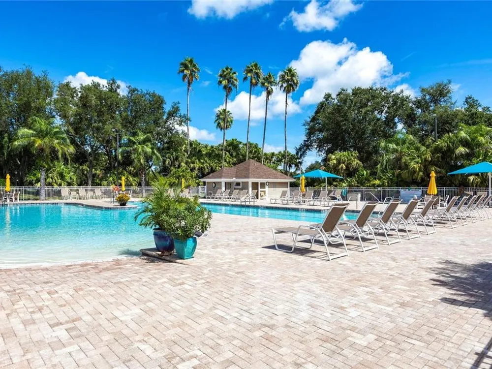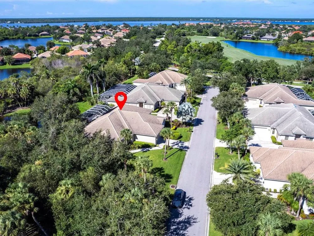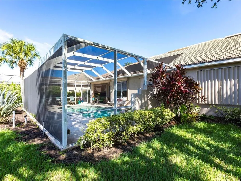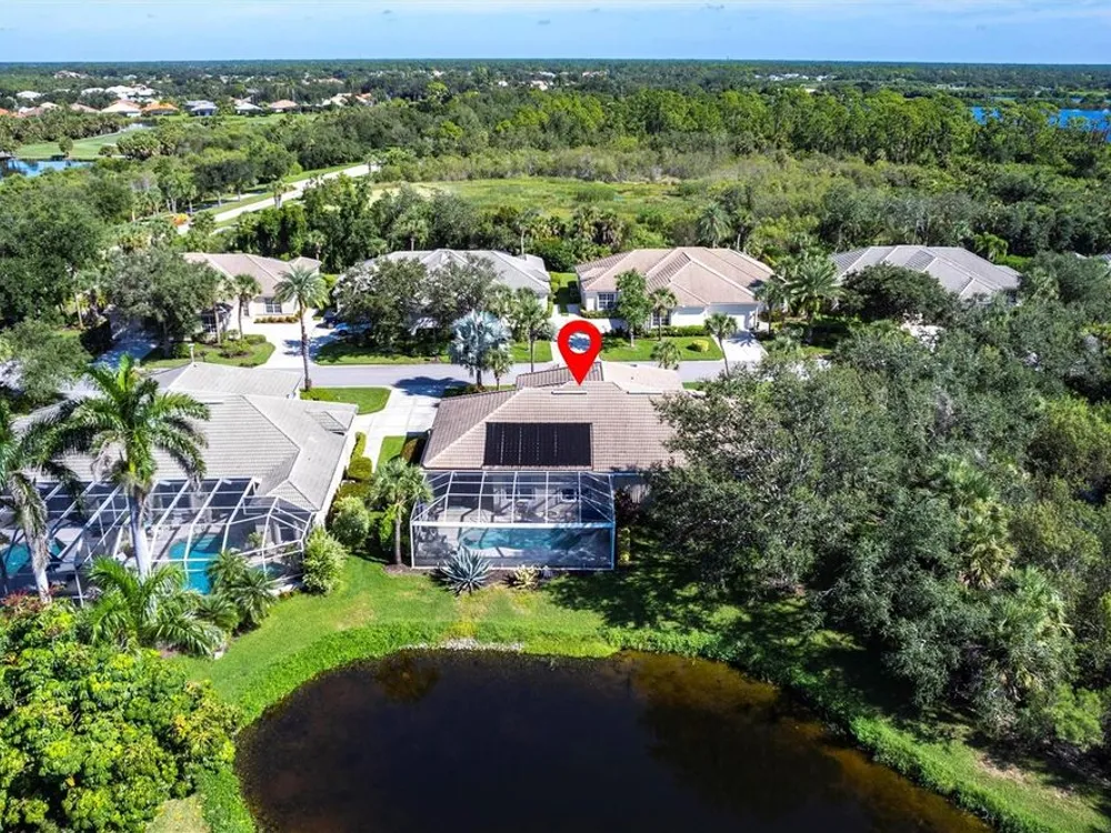 TURNKEY FURNISHED Lakefront Home with Private Pool! Welcome to this beautifully maintained home in the highly sought-after, deed-restricted golf community of Riverwood, complete with a transferable Beach Club membership on Manasota Beach. Ideally situated on a peaceful cul-de-sac, this right-side 1,576 sq. ft. villa offers serene lake views and features 3 bedrooms, 2 bathrooms, a 2-car garage, and a screened-in private pool and lanai—creating the perfect outdoor oasis for entertaining or relaxing in complete privacy. Lush tropical landscaping enhances the home’s curb appeal, while the low-maintenance design makes it ideal for year-round living or seasonal retreats. The open, split floor plan welcomes you with warm laminate flooring throughout the main living areas. High ceilings and sliding glass doors in the living room open to the lanai and pool area, while the dining area features French doors leading directly outside—providing seamless indoor-outdoor flow. The kitchen, the heart of the home, offers solid surface countertops, crisp white cabinetry, coordinating tile backsplash, full appliance package, and abundant storage. The open layout connects it to the living areas, with wood-look flooring and a tropical-inspired ceiling fan adding charm and character. The spacious Primary Suite boasts a generous walk-in closet and en-suite bath with a Roman shower. Two additional bedrooms with ample closet space share a full bathroom—one includes a Murphy bed and desk area, ideal for a home office or flex space. Step outside to your private screened lanai and sparkling pool with spa, overlooking a tranquil waterway. The outdoor area offers ample space for lounging or dining al fresco, surrounded by lush landscaping and peaceful views—the ultimate spot to soak up the Florida lifestyle. Additional features include a laundry room with stackable washer/dryer and utility sink, large two-car garage, generator, hurricane shutters, tile roof, and solar-heated pool. Riverwood is a gated golf community featuring a par-72 championship public course, updated sports campus with state-of-the-art fitness center, zero-entry resort pool, tiki bar, tennis and pickleball courts, and a wide range of fitness and social activities including bocce, croquet, and more. Enjoy scenic walks or bike rides through this pristine community. Separate fees apply for golf club and Manasota Key Beach Club memberships. **PLEASE ENJOY THE 3D INTERACTIVE VIRTUAL TOUR ASSOCIATED WITH THIS LISTING**