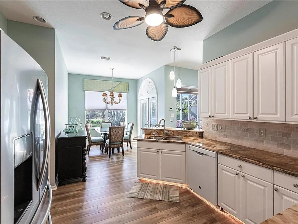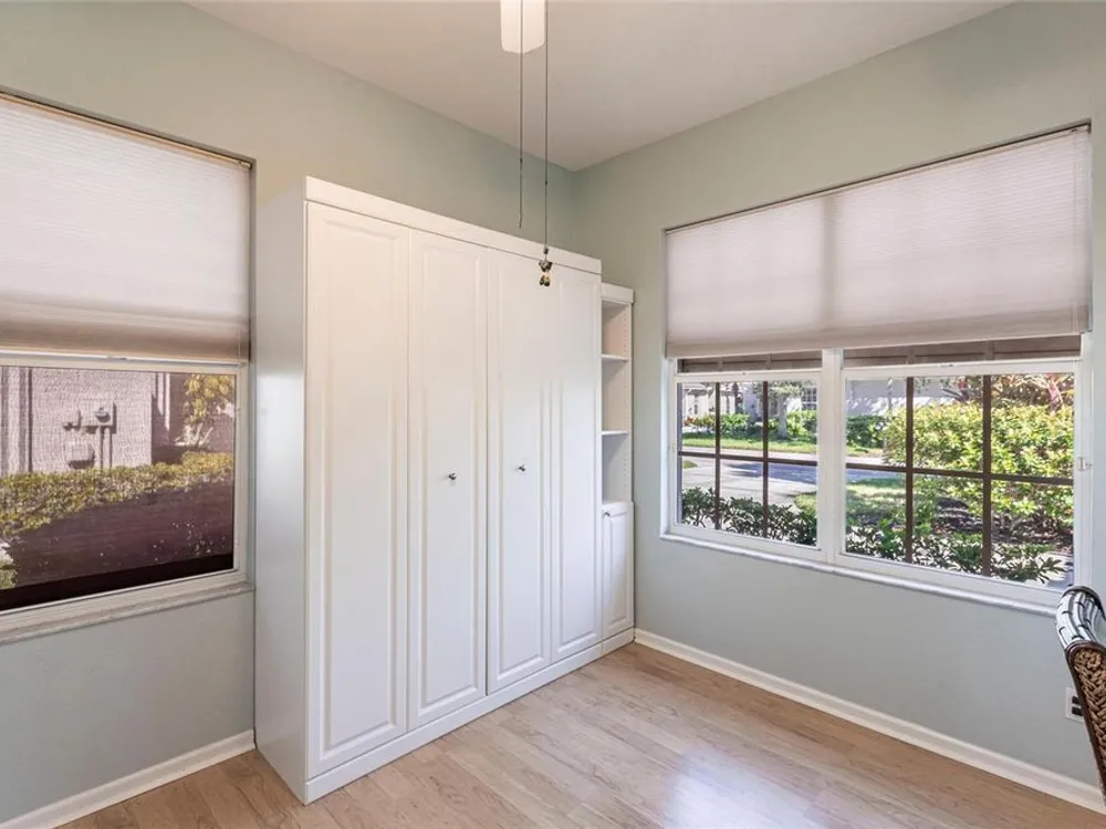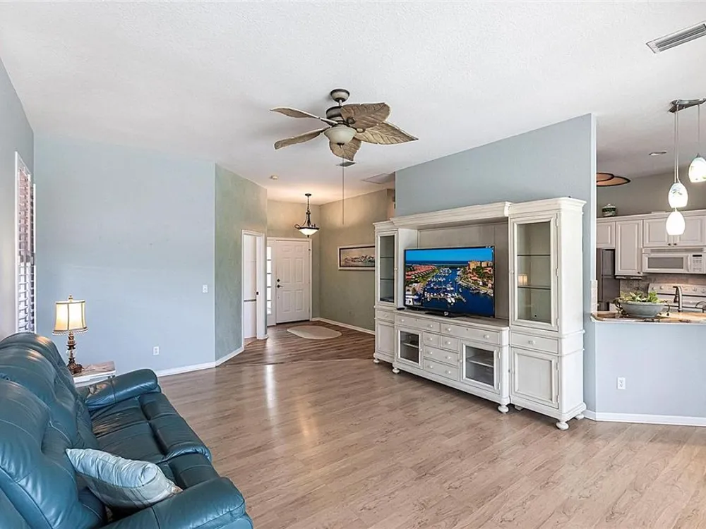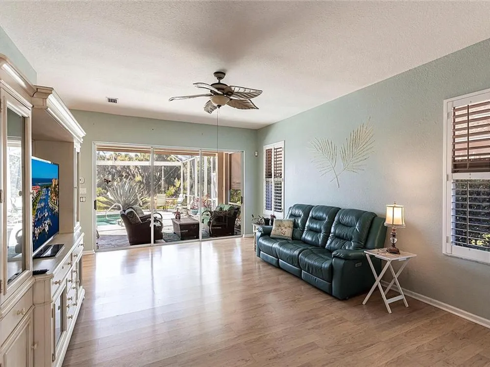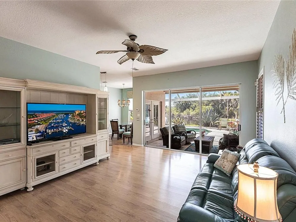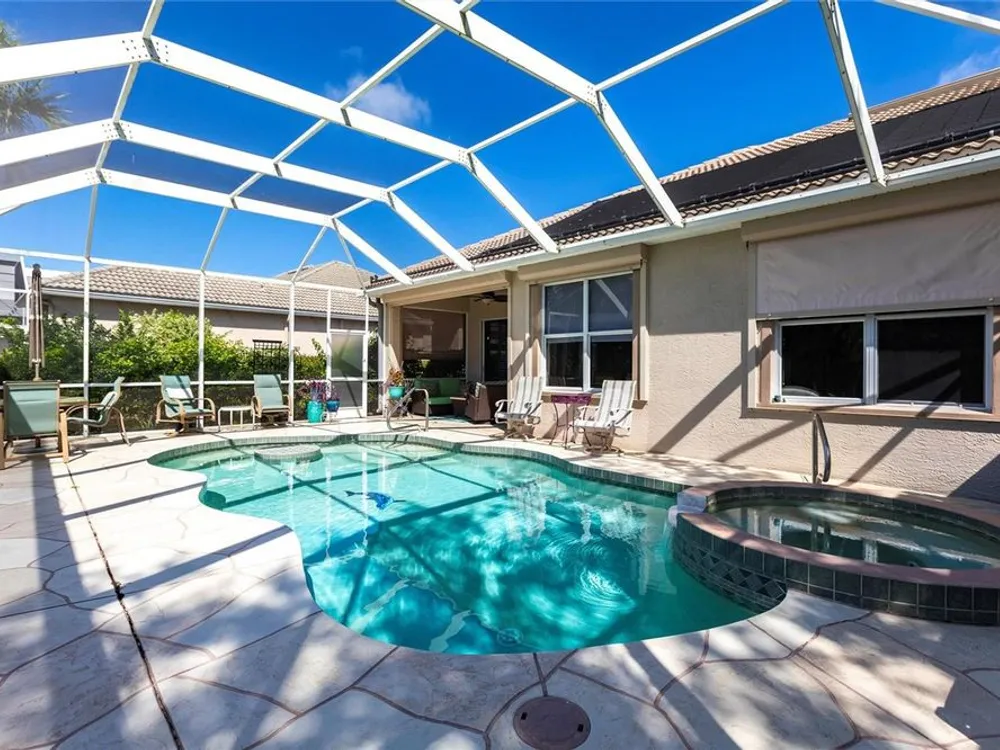 TURNKEY FURNISHED Lakefront Home with Private Pool! Welcome to this beautifully maintained home in the highly sought-after, deed-restricted golf community of Riverwood, complete with a transferable Beach Club membership on Manasota Beach. Ideally situated on a peaceful cul-de-sac, this right-side 1,576 sq. ft. villa offers serene lake views and features 3 bedrooms, 2 bathrooms, a 2-car garage, and a screened-in private pool and lanai—creating the perfect outdoor oasis for entertaining or relaxing in complete privacy. Lush tropical landscaping enhances the home’s curb appeal, while the low-maintenance design makes it ideal for year-round living or seasonal retreats. The open, split floor plan welcomes you with warm laminate flooring throughout the main living areas. High ceilings and sliding glass doors in the living room open to the lanai and pool area, while the dining area features French doors leading directly outside—providing seamless indoor-outdoor flow. The kitchen, the heart of the home, offers solid surface countertops, crisp white cabinetry, coordinating tile backsplash, full appliance package, and abundant storage. The open layout connects it to the living areas, with wood-look flooring and a tropical-inspired ceiling fan adding charm and character. The spacious Primary Suite boasts a generous walk-in closet and en-suite bath with a Roman shower. Two additional bedrooms with ample closet space share a full bathroom—one includes a Murphy bed and desk area, ideal for a home office or flex space. Step outside to your private screened lanai and sparkling pool with spa, overlooking a tranquil waterway. The outdoor area offers ample space for lounging or dining al fresco, surrounded by lush landscaping and peaceful views—the ultimate spot to soak up the Florida lifestyle. Additional features include a laundry room with stackable washer/dryer and utility sink, large two-car garage, generator, hurricane shutters, tile roof, and solar-heated pool. Riverwood is a gated golf community featuring a par-72 championship public course, updated sports campus with state-of-the-art fitness center, zero-entry resort pool, tiki bar, tennis and pickleball courts, and a wide range of fitness and social activities including bocce, croquet, and more. Enjoy scenic walks or bike rides through this pristine community. Separate fees apply for golf club and Manasota Key Beach Club memberships. **PLEASE ENJOY THE 3D INTERACTIVE VIRTUAL TOUR ASSOCIATED WITH THIS LISTING**