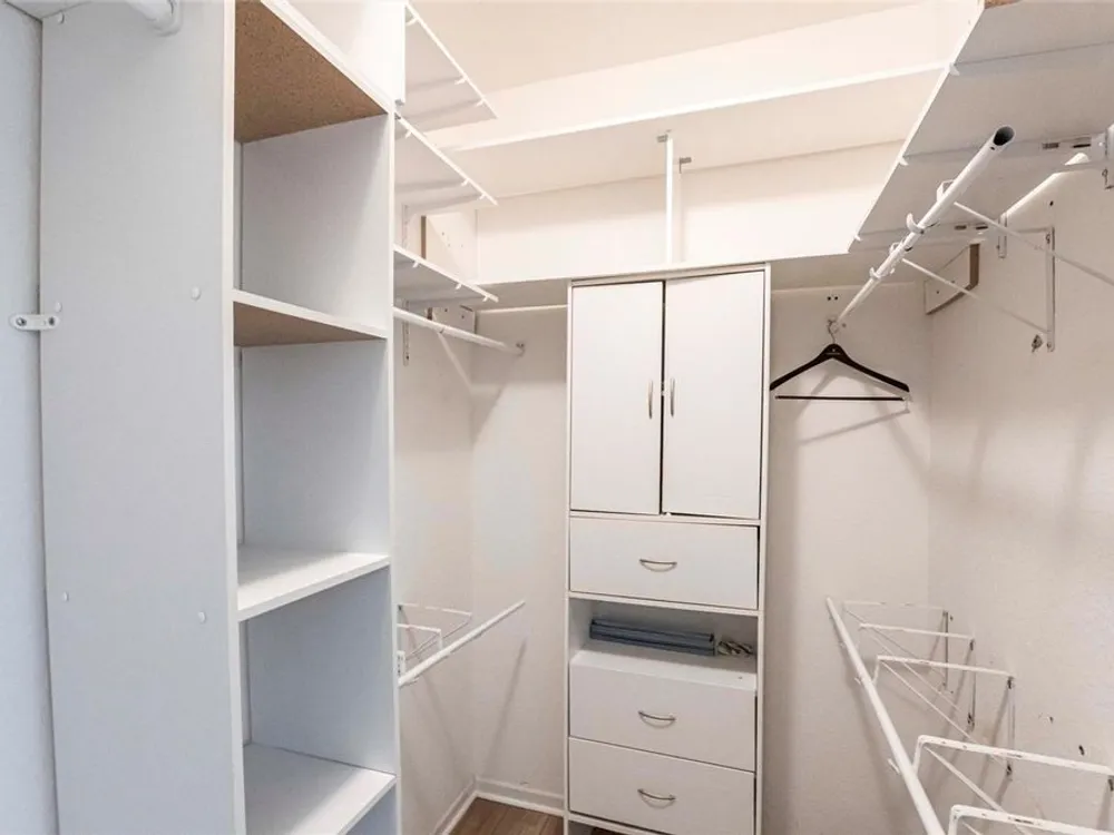 - Ceiling Fan(s), High Ceilings, Open Floorplan, Main Level Primary, Split Bedrooms, Stone Counters, Walk-In Closet(s), Window Treatments