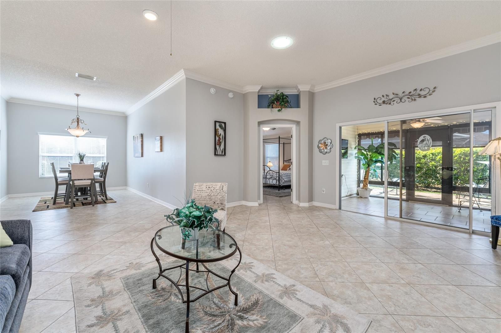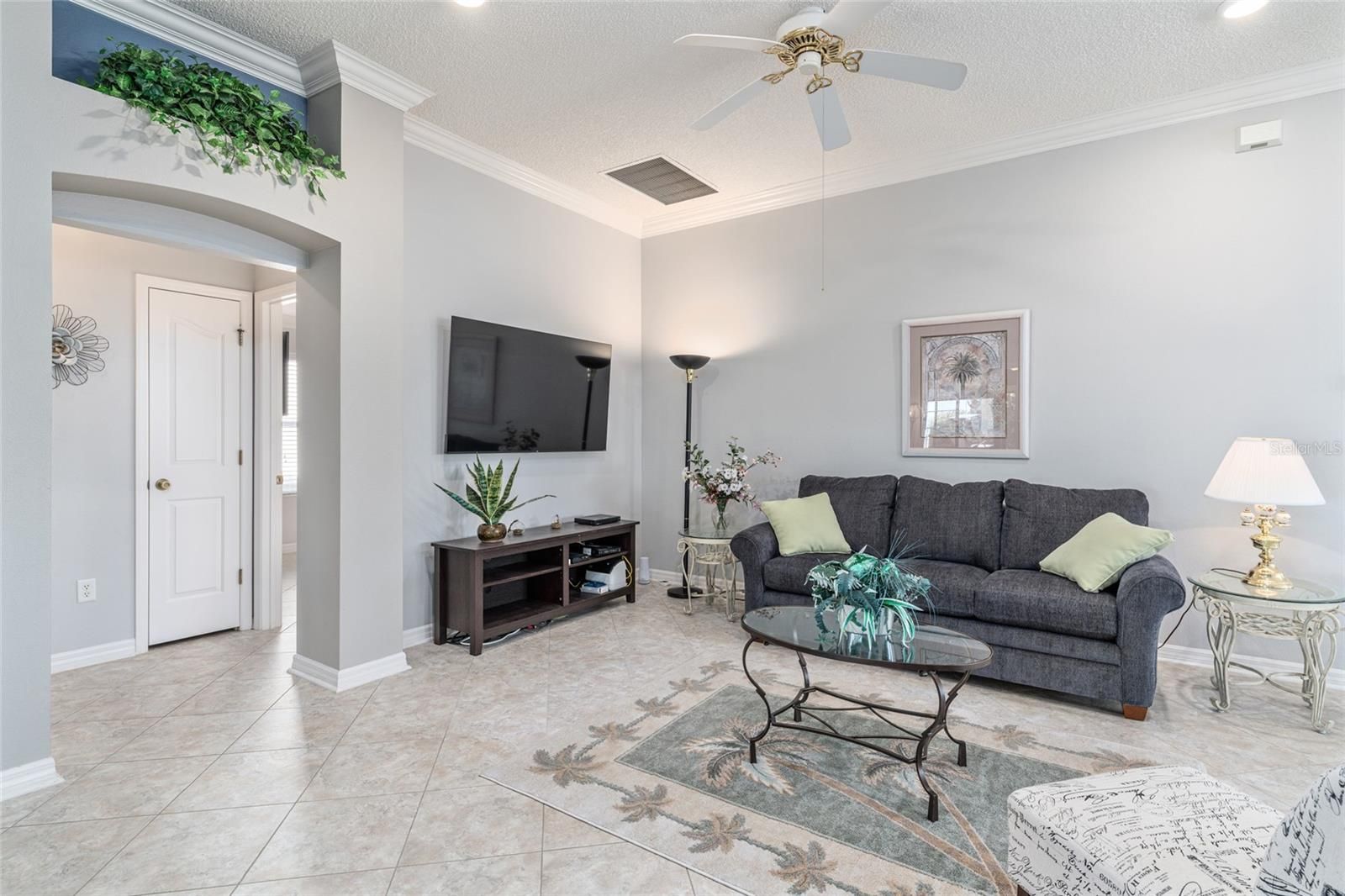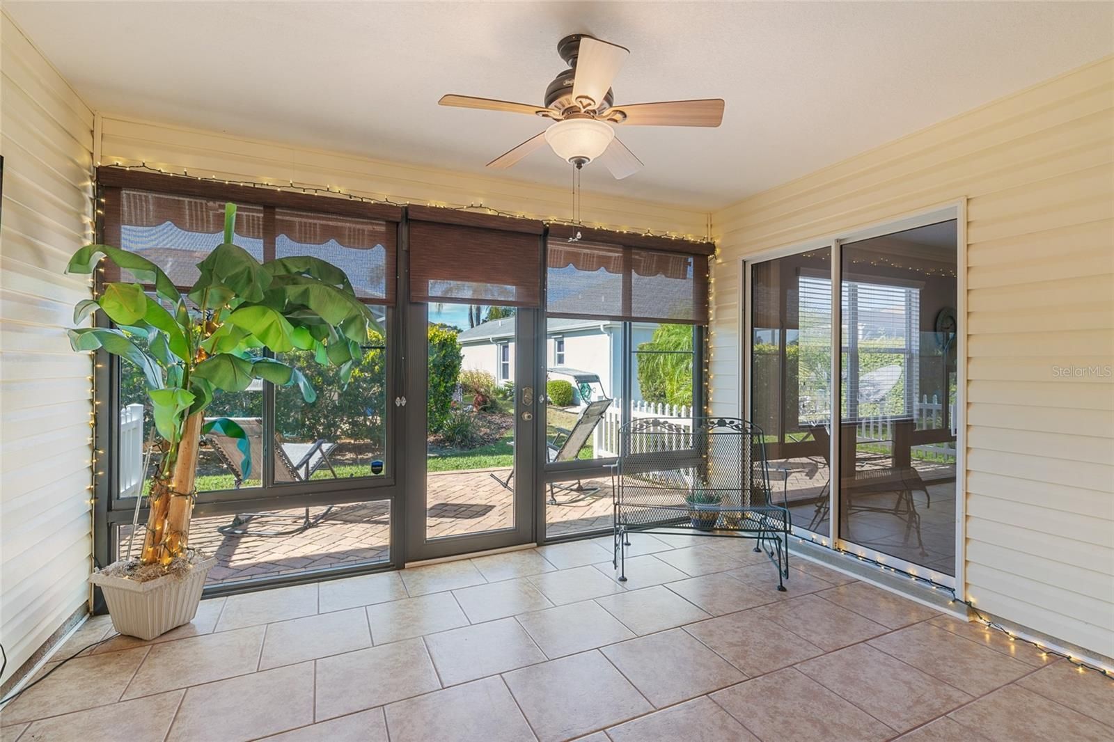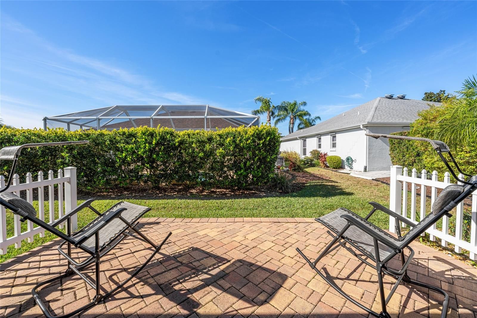 BOND PAID! • LOWER TAXES in Sumter County! • OPEN CONCEPT, SPLIT BEDROOM floor plan • Imagine living the renowned VILLAGES LIFESTYLE in this meticulously maintained & beautifully upgraded CYPRESS Designer (formerly LAFAYETTE, 2001) w/ 3 BR/ 2 BA/ 2 Car Garage & 1,892 sf LA in the VILLAGE of SANTIAGO! Located near Spanish Springs Town Square w/ FREE nightly entertainment, the Savannah Center, the Sharon L Morse Performing Arts Center, and a plethora of golf & recreation choices, FUN opportunities will be at your fingertips plus everyday conveniences along the US 441/27 COMMERCIAL CORRIDOR. Tucked away on a CORNER LOT, CURB APPEAL shines w/ painted driveway/walkways, mature landscaping w/ concrete hardscaping & rock-filled beds, and large palm trees for the Florida vibe. The newer ARCHITECTURAL SHINGLE ROOF (2025) features Designer shingles w/ a transferable lifetime warranty. Enjoy the COVERED FRONT PORCH framed by a white picket fence—the perfect spot for morning coffee! The leaded glass front door w/ matching sidelight + storm door welcomes your entry. Inside, VAULTED CEILINGS highlight the main living area, while CROWN MOLDING, a neutral paint palette, and diagonal-set LUXURY VINYL TILE flooring flow throughout the home. The KITCHEN offers two arched entryways, recessed ceiling lighting, an abundance of OAK CABINETRY w/ built-in pantry, roll outs, & over-cabinet lighting, black GRANITE counters, tile backsplash, newer SS APPLIANCES, including a GAS stove & a French door refrigerator, and breakfast bar seating. The BREAKFAST NOOK features a large bay window, extra granite counter workspace, and a WINE REFRIGERATOR. The DINING ROOM features a lovely chandelier and a large south facing window which allows NATURAL LIGHT. The spacious 21’ x 17’ LIVING ROOM features recessed ceiling lighting, two arched entryways w/ columns & decorative plant shelves leading to the GUEST WING & PRIMARY SUITE, and sliding glass doors to the ENCLOSED LANAI (Category II Sunroom). The GUEST WING includes two bedrooms w/ BATHROOM #2 in between. Bathroom #2 has a TUB/SHOWER combo w/ sliding glass doors, comfort height toilet, & single sink/vanity w/ SOLID SURFACE COUNTER. Moving to the PRIMARY SUITE, this substantially sized room is uniquely designed w/ two separate CLOSETS - one off the bedroom + a walk-in off the bath. The ENSUITE BATHROOM offers a large L- shaped vanity w/ SOLID SURFACE COUNTERTOPS & DUAL SINKS, private water closet w/ pocket door access, comfort height toilet, & a TILED WALK-IN SHOWER w/ frameless, sliding glass doors, raindrop shower head, built-in seat ledge, and a shower niche. The 13’ X 10’ ENCLOSED LANAI has WeatherLite glass windows, running-bond pattern tile flooring, pull-down solar shades, TV hook-ups, and HVAC vents/return flow for year-round comfort (not included in LA square footage). The pavered REAR PATIO has a manual retractable awning for shade and the neighbor's hedge provides partial rear privacy. Add’l perks: 3 SOLAR TUBES, HVAC (2024) w/ AprilAire filter, gas heat & transferable extended warranty, HWH (2022), transferable TERMITE BOND (2023). INTERIOR LAUNDRY is located just off of the foyer behind a louvered door & gives access to the garage, which features a painted floor, lifestyle garage screen w/ walk through center section, ample storage cabinets, & irrigation system controls. Partial turnkey package & golf cart available separately. Don’t let this gem slip away - CALL TODAY for your private showing!